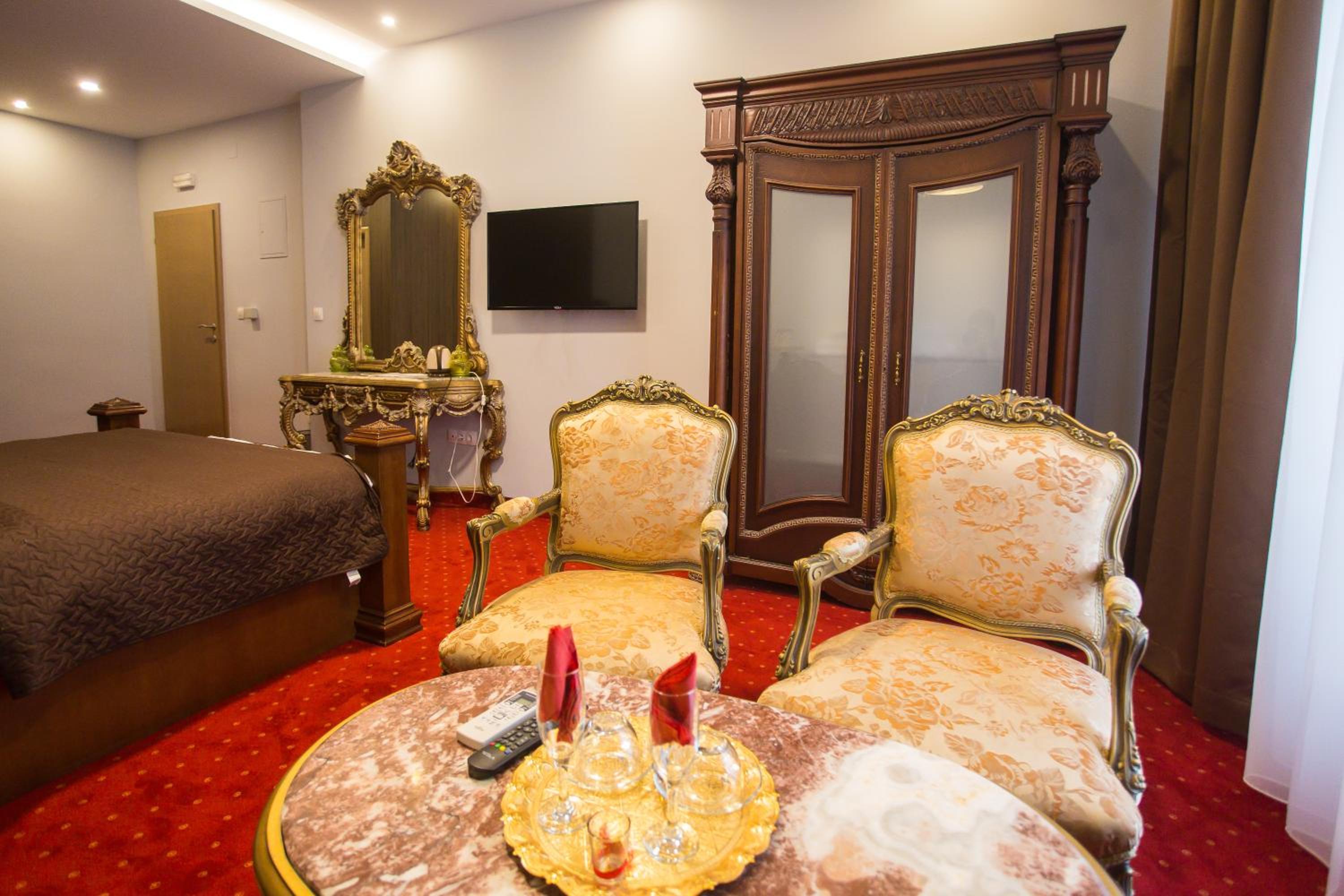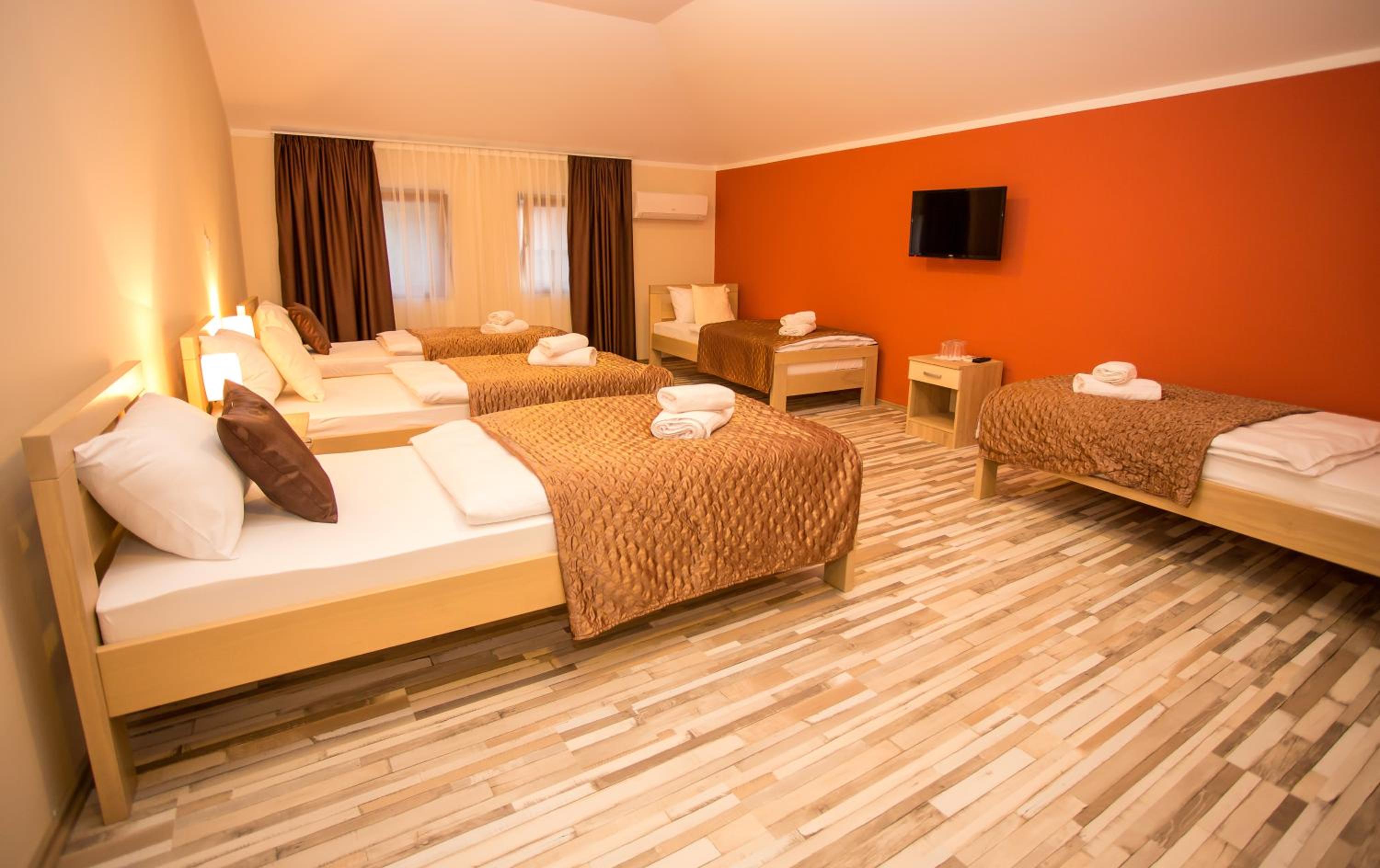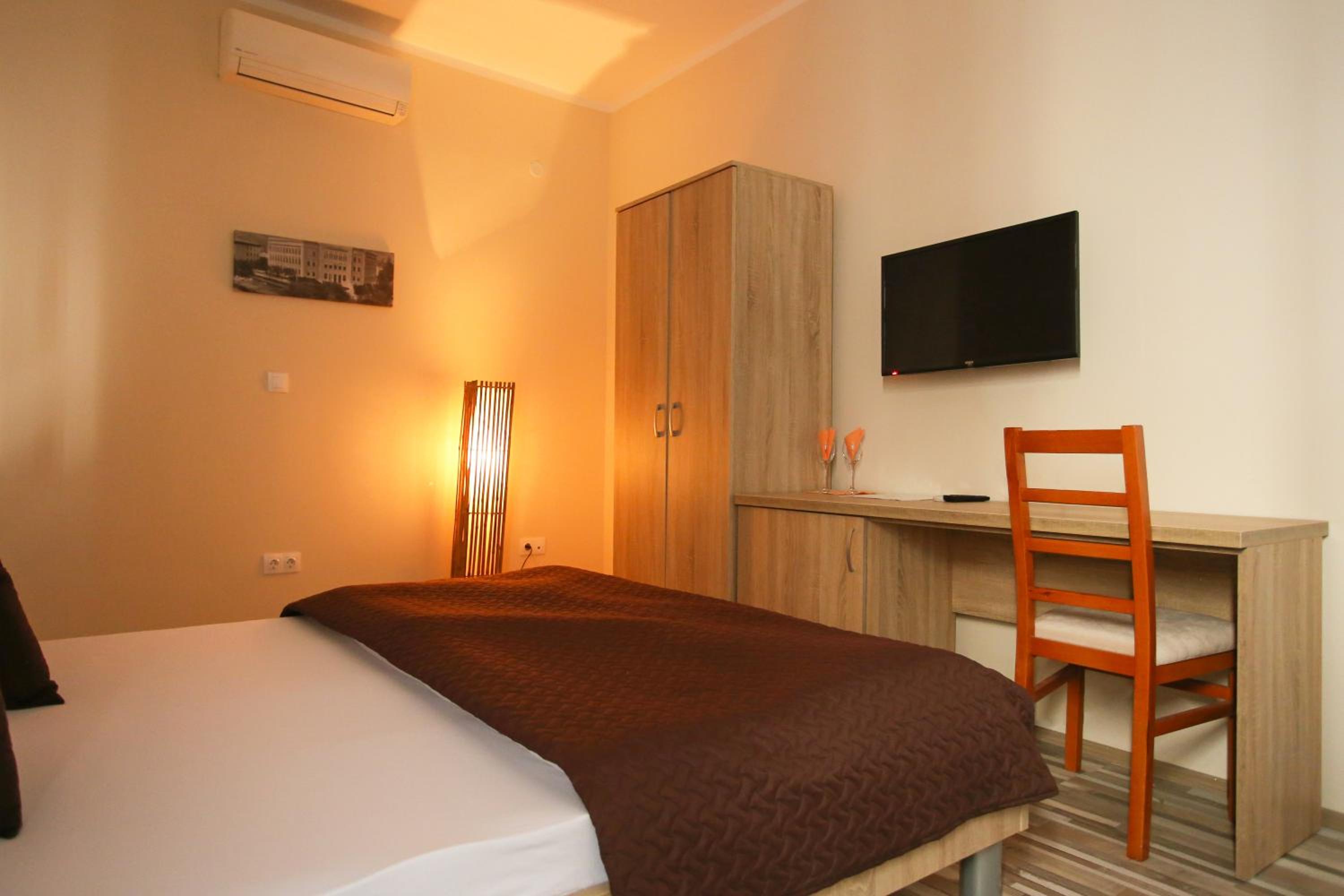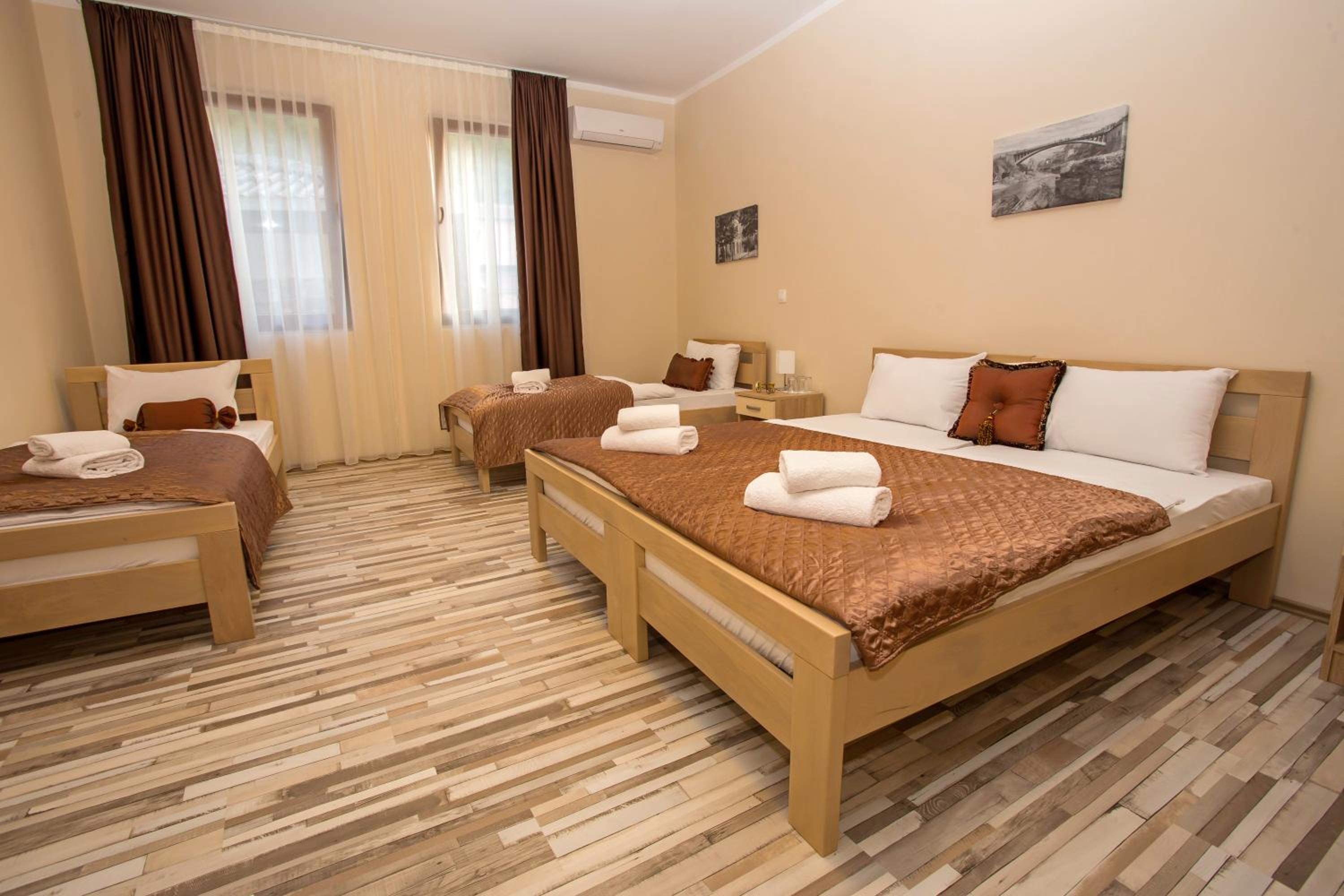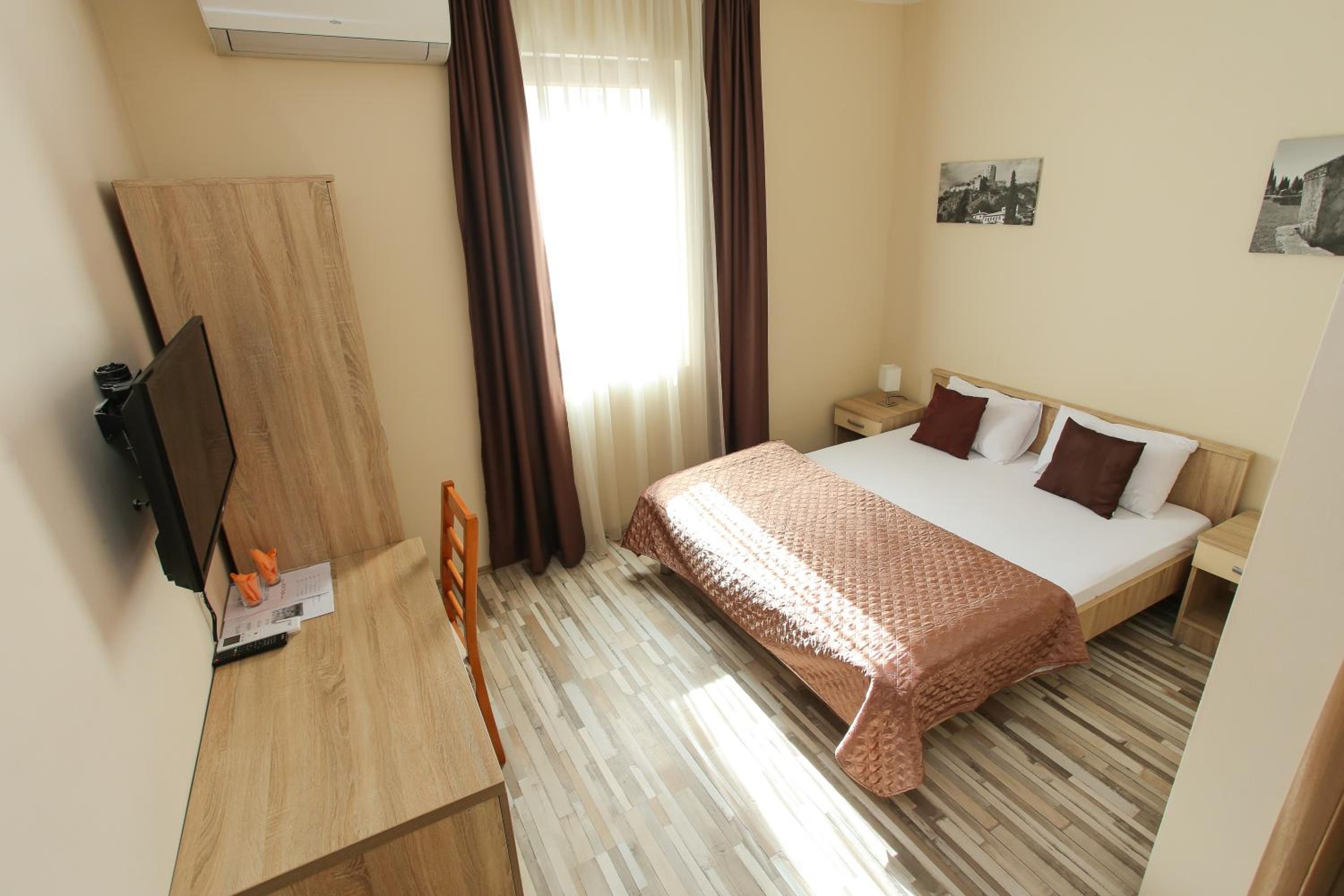 Hotel Hana in Mostar offers elegant rooms with modern amenities such as air conditioning, flat-screen TVs, and complimentary toiletries. Each room is designed for your comfort, complete with slippers for a cozy stay.