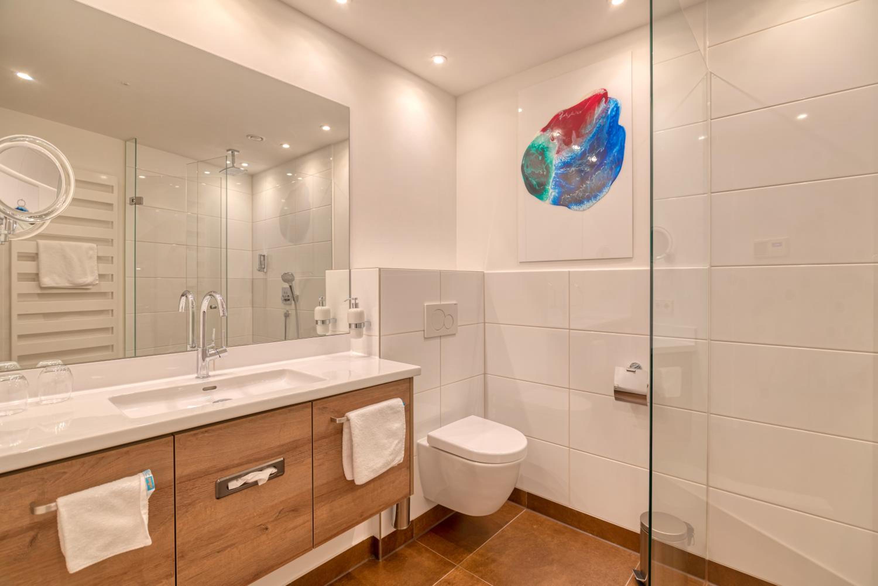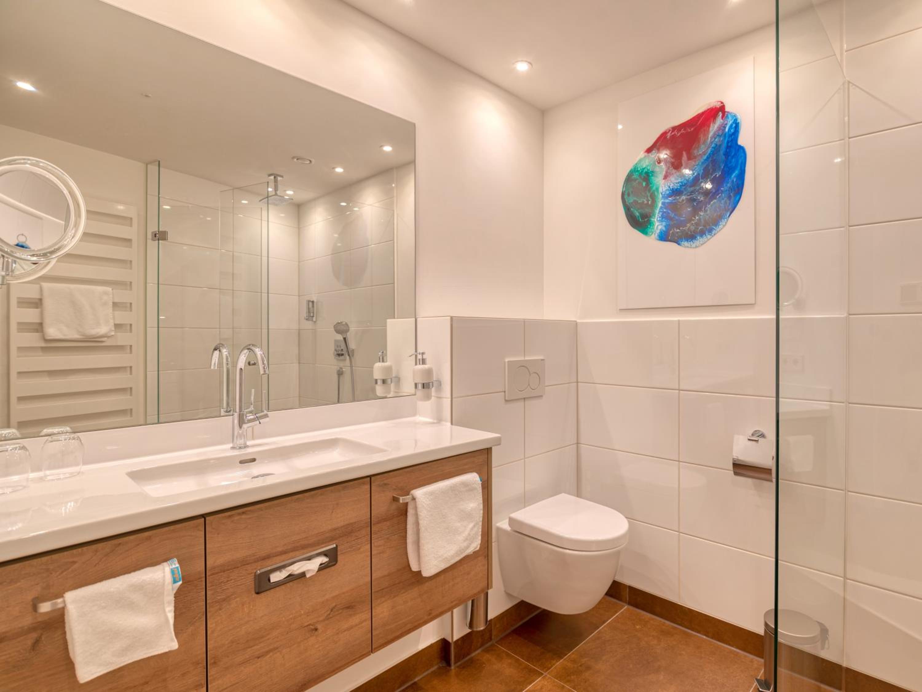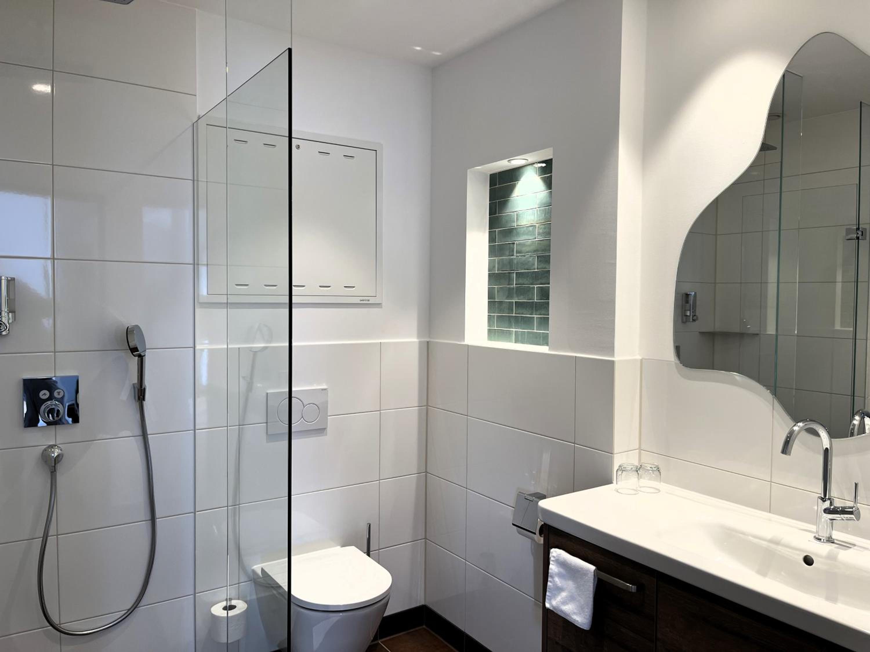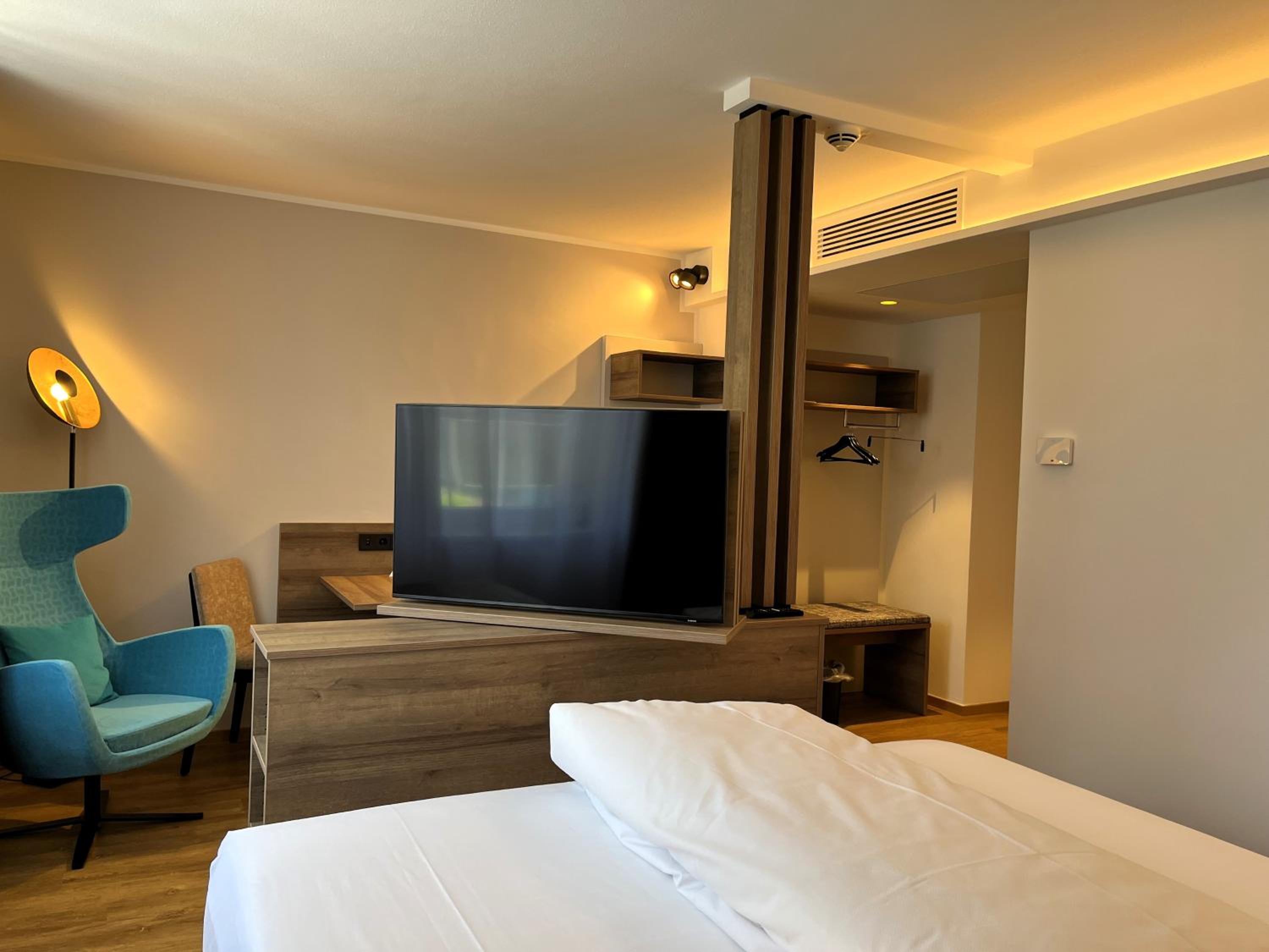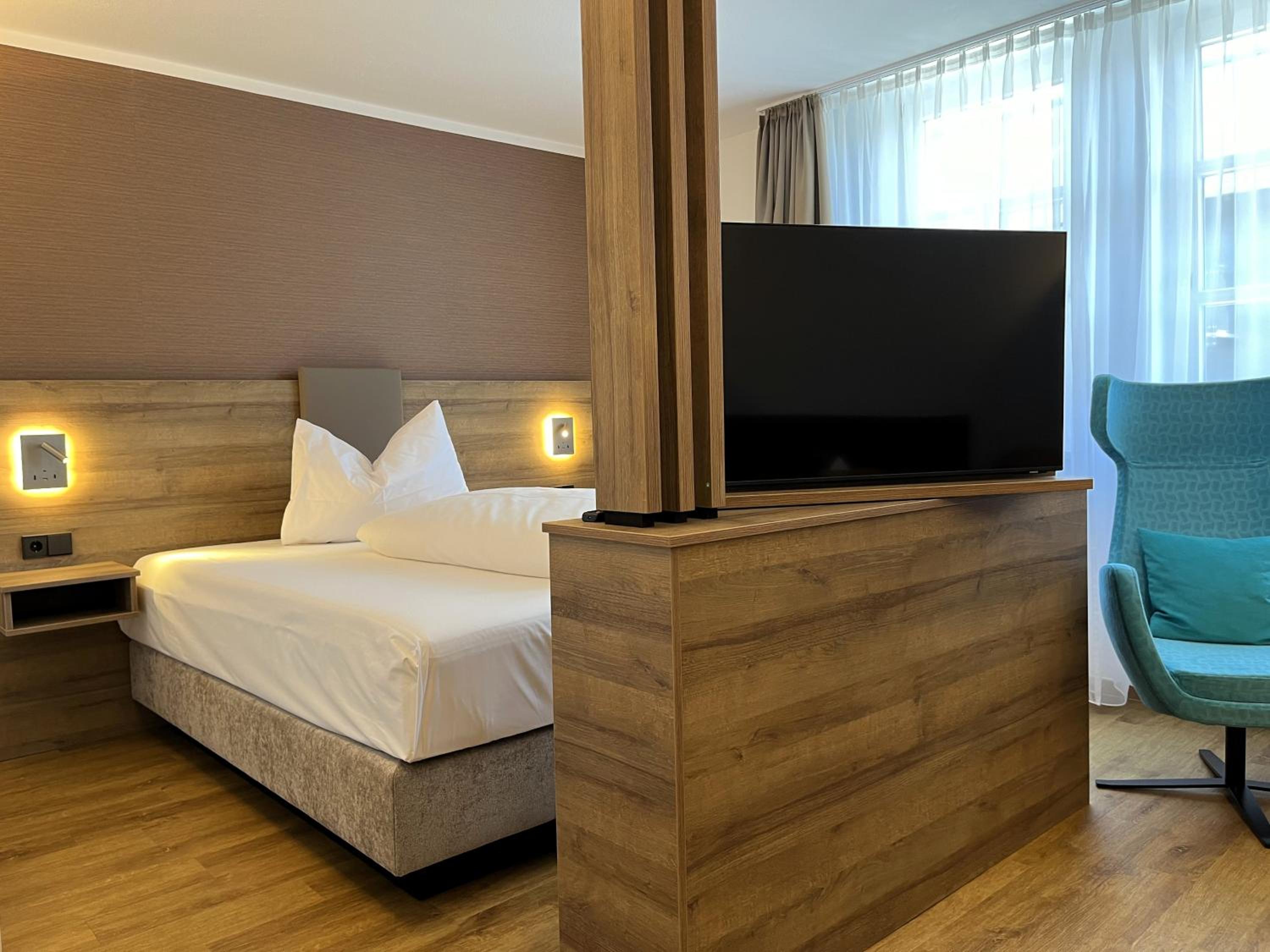 Sehr schönes und großes Zimmer. Grosses Bad, nett empfangen . Das Frühstück war prima, große helle Räume. Tolle Terrasse im Sommer.