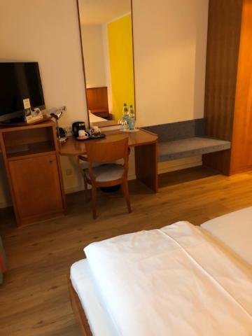 Het is een prima hotel met goede service. Parkeren kan voor de deur en/of op een grotere parkeerplaats van het hotel 50 meter verder. Het ontbijt was prima in orde met alles er op en er aan wat erbij hoort te zitten. Toegang hotel ook goed geregeld met een kluisje buiten waarin als je in wilt checken je met de voor verkregen pincode je sleutel op kunt halen. Het personeel is vriendelijk en behulpzaam. Bedden waren prima in orde en de badkamer was ook netjes. Het is niet allemaal van hoge klasse maar past goed bij de *** die aangegeven wordt. Openslaande deur naar de tuin met zitje.