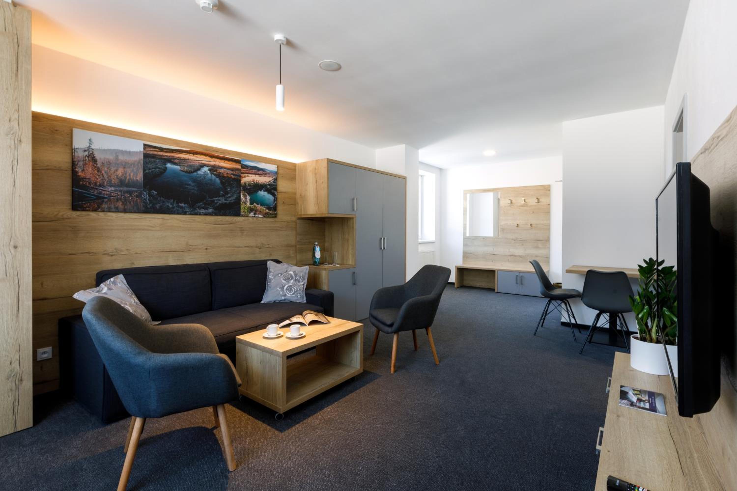 Discover the exquisite Sporthotel Olympia in Stachy, offering a 4-star experience with a terrace, a restaurant, and a bar. Enjoy the convenience of a kids' club, 24-hour front desk, and free WiFi throughout the property. Unwind at the snack bar with your favorite drink.