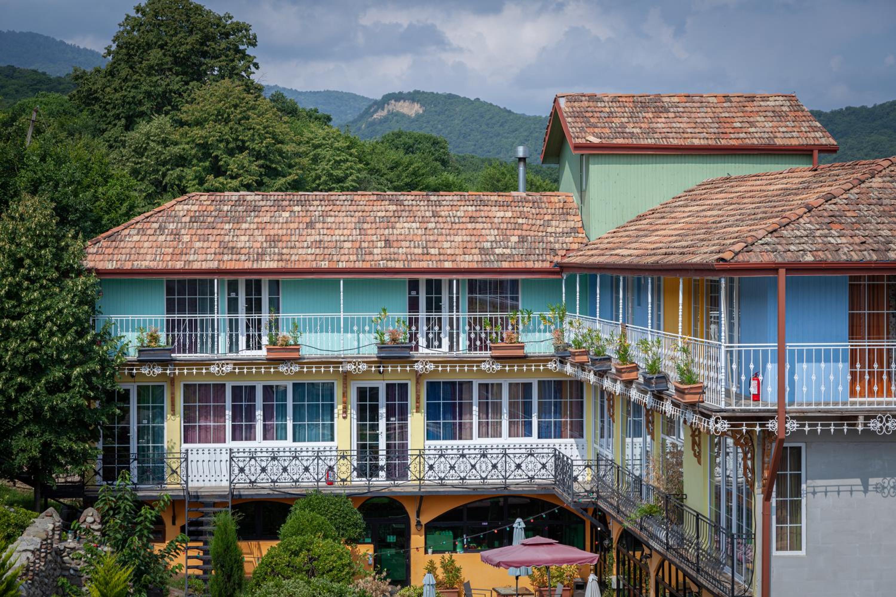 Śniadania bardzo zróżnicowane i smaczne, pokoje przestronne, z pięknym widokiem na Kaukaz.