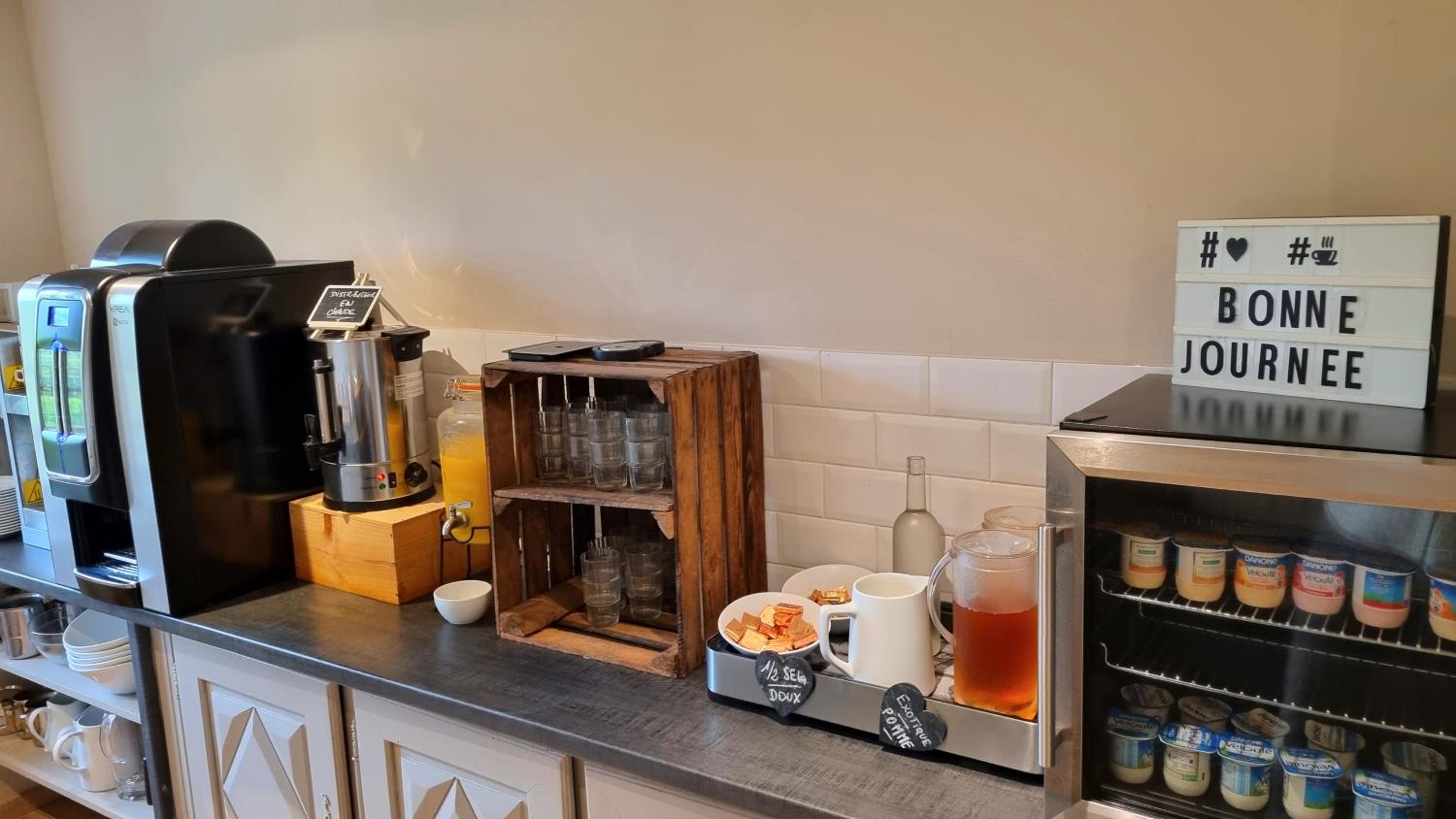 L'accueil malgré la morne saison, la machine à capuccino en libre service, la localisation, la chambre spacieuse