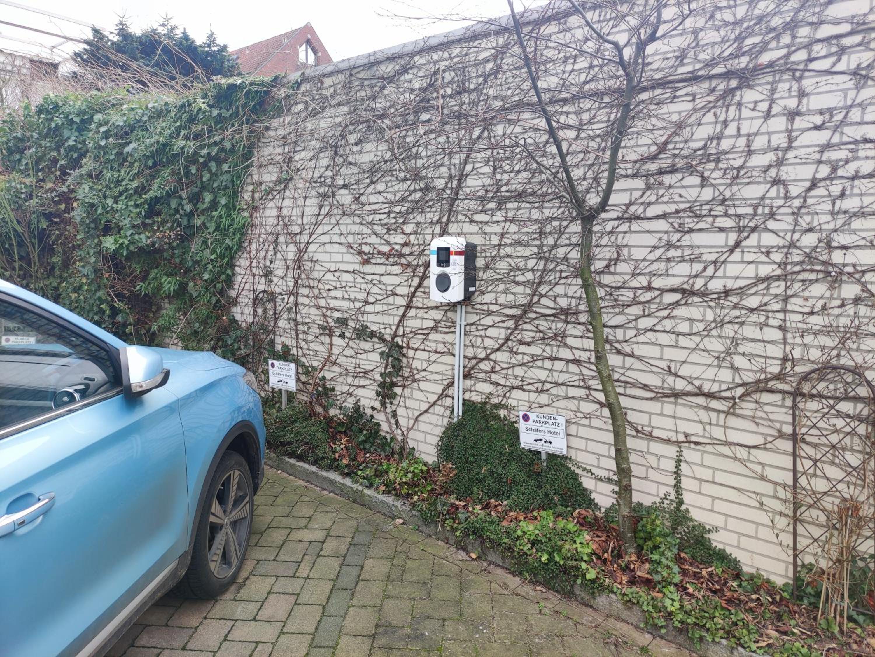 Gute Parkmöglichkeiten, Ladestation e-Auto (11kWh) unproblematisch über Kreditkarte.