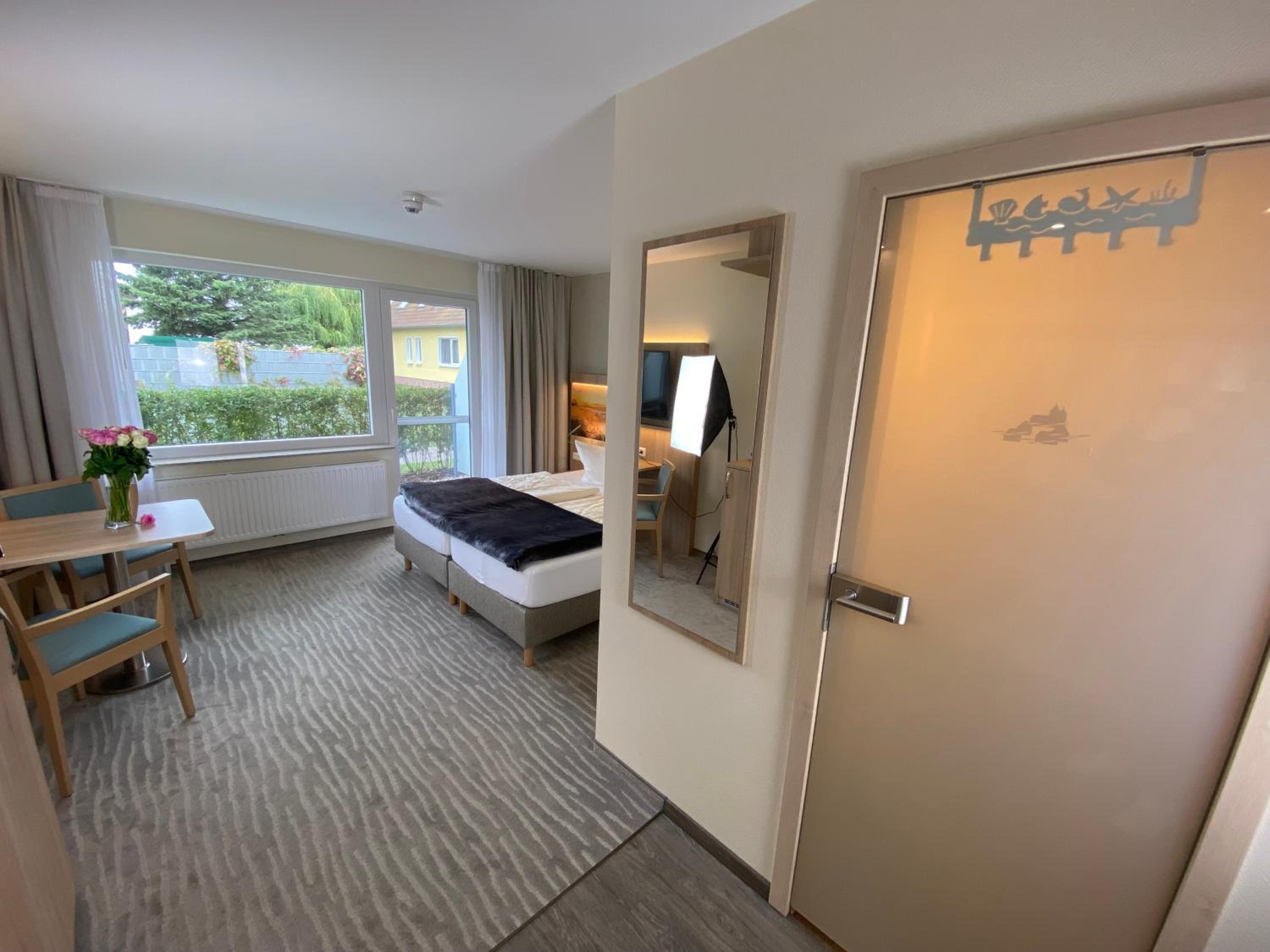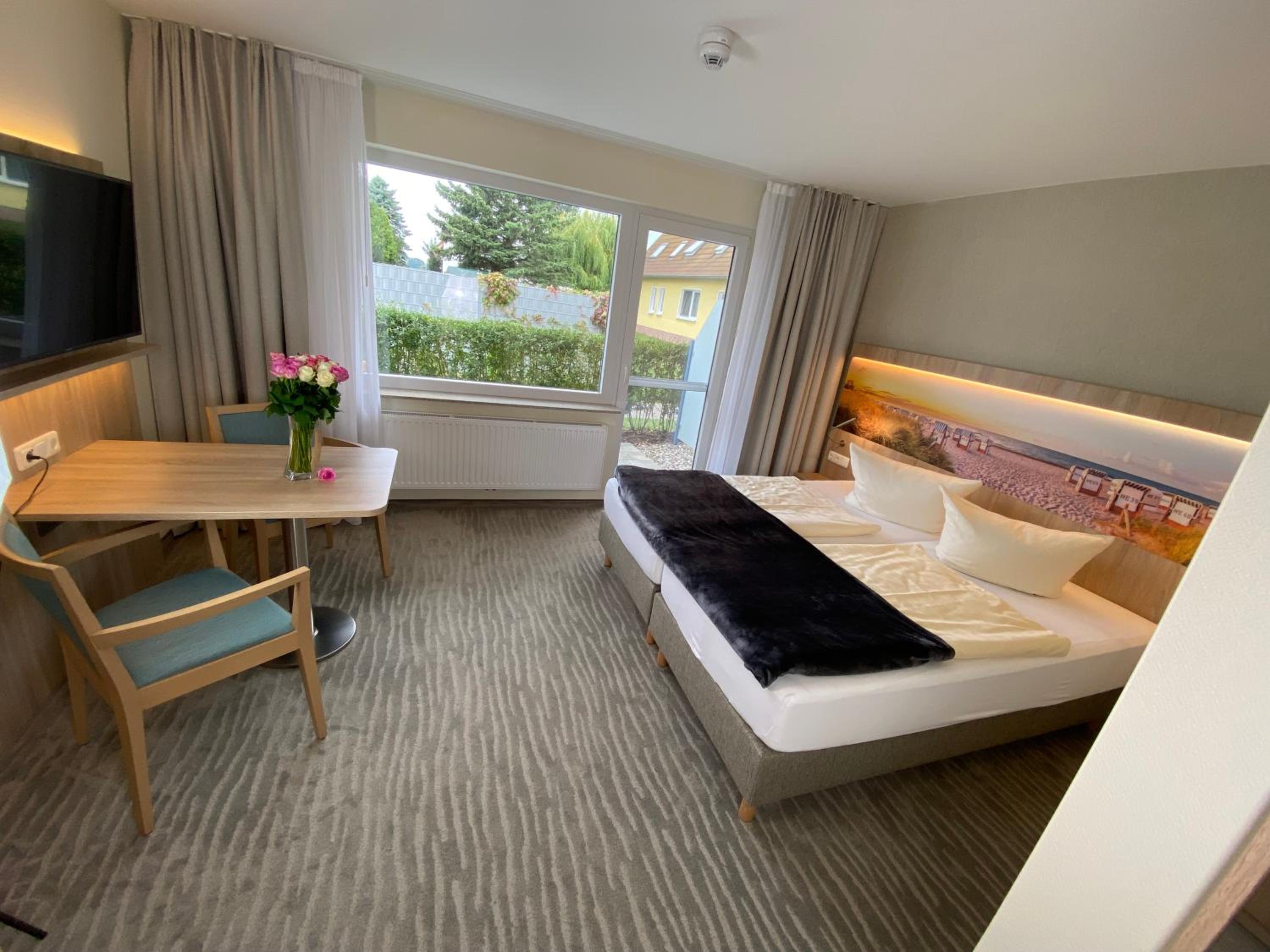 Tolles Hotel mit sehr schönem Ausblick aufs Achterwasser. Tolle Räumlichkeiten für Frühstück und Restaurant. Wir haben dort auch zu Abend gegessen und das Essen war einfach nur fantastisch. Wirklich selten so gut in einem Hotelrestaurant gegessen. Das Personal ist absolut hervorragend und extra hoch zu bewerten, durch die Bank extrem freundlich und zuvorkommend. Das Zimmer war sehr geräumig mit einem großen Tisch und zwei Stühlen. Alles war sauber und so, wie man es sich vorstellt.