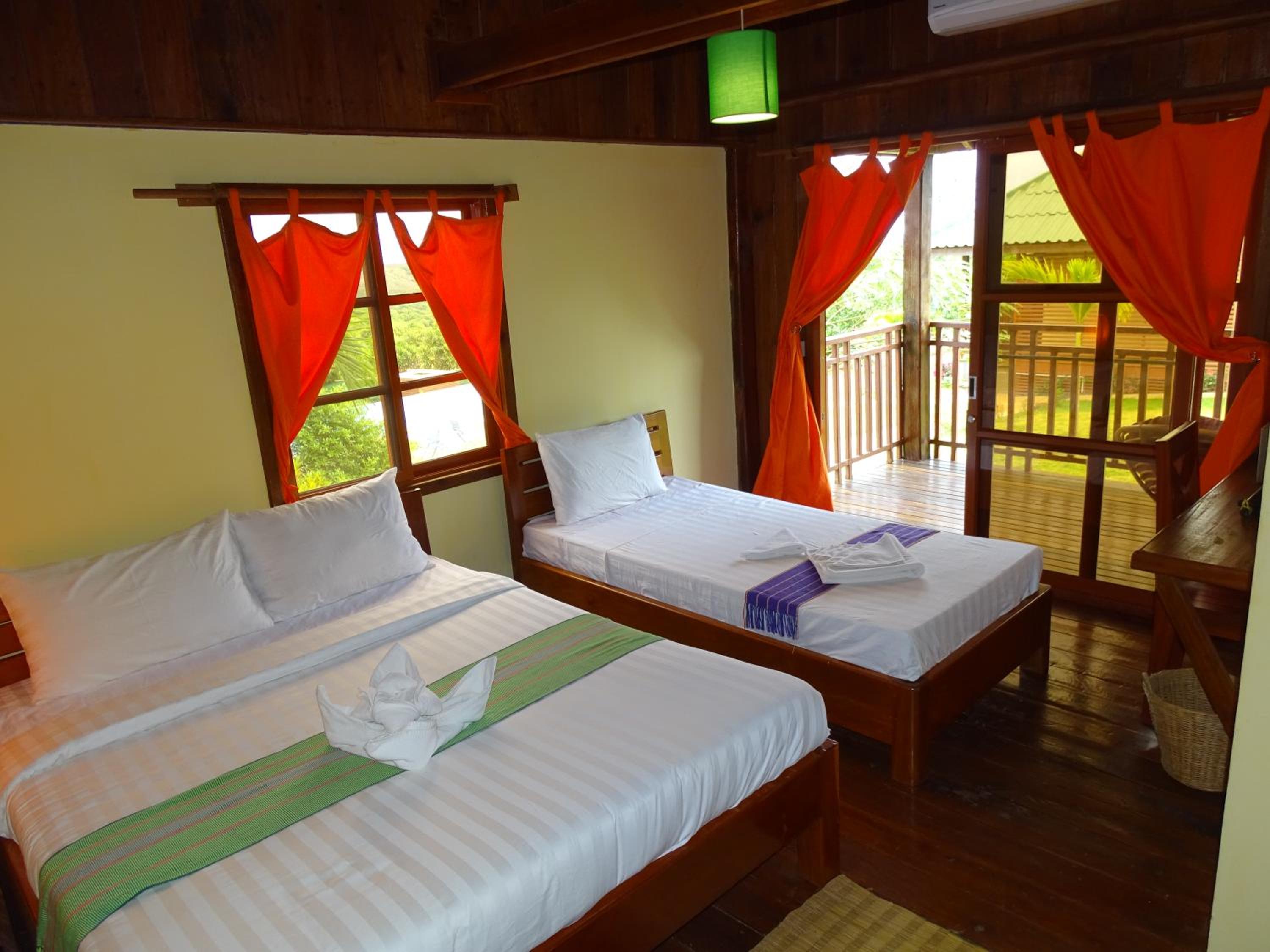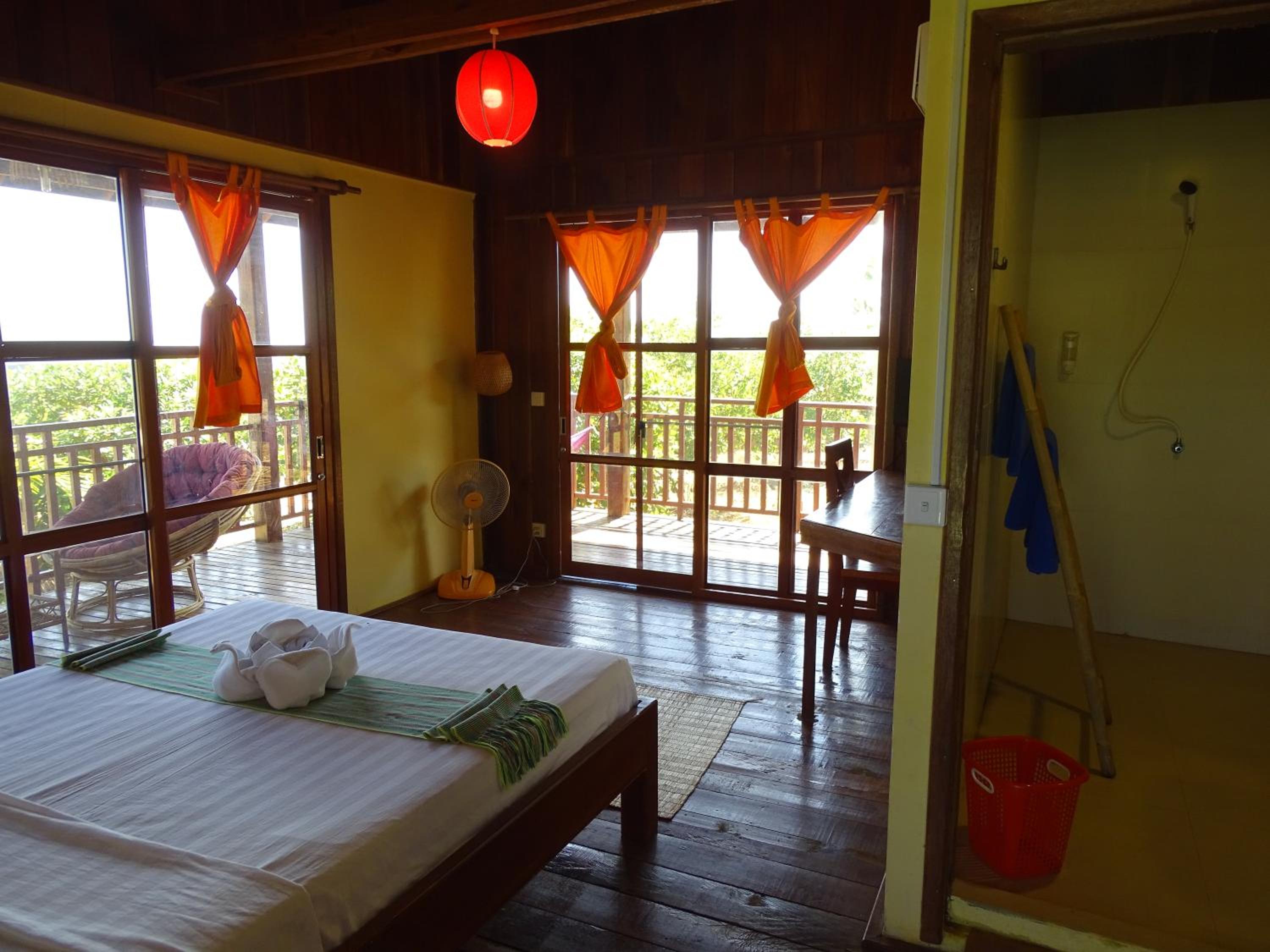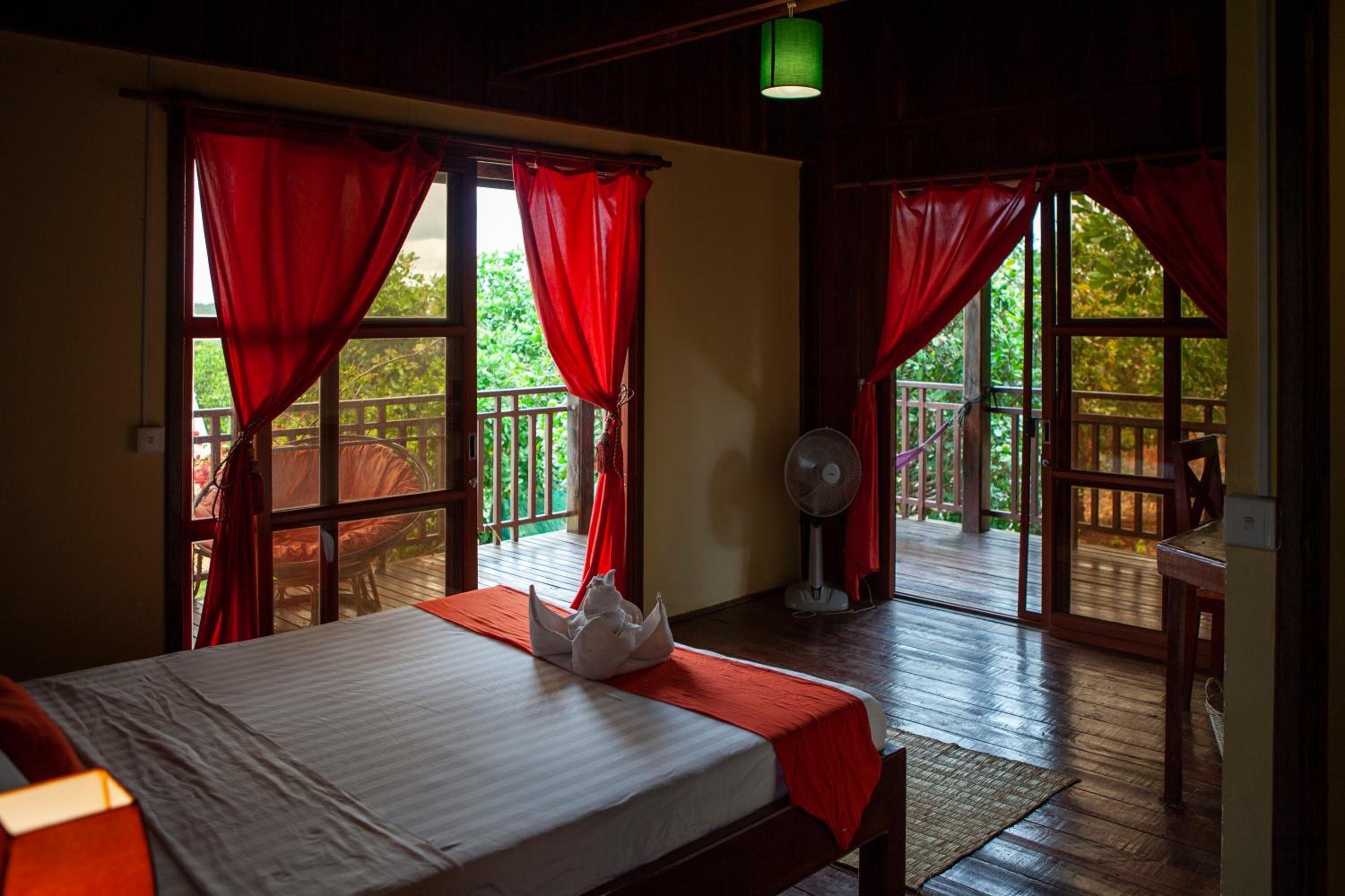 Owners were really caring, they made a piece of art with some towels and flowers for our wedding anniversary. We came with the flu and they gave us some ginger, lemon and honey tea which were just perfect for our sore throats. View was wonderful, you could see the hills of forest around on the terrace, was beautiful especially during sunset time. Easy to rent a motorbike and they can order a TukTuk for you and arrange tours and other activities. Nice swimming pool. There’s is a pool table at the restaurant and you can ask to eat in your room and it was good meals very convenient! Finally, the place is remote around 8 min from the city so it is very quiet and relaxing away feels like hidden from the world kind of feeling ;)