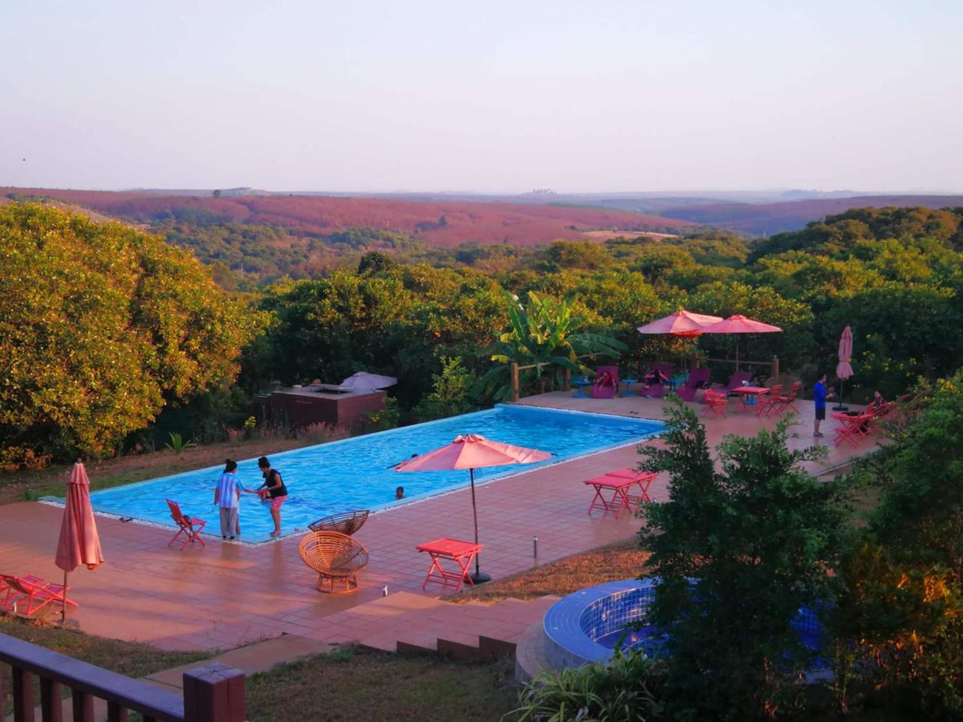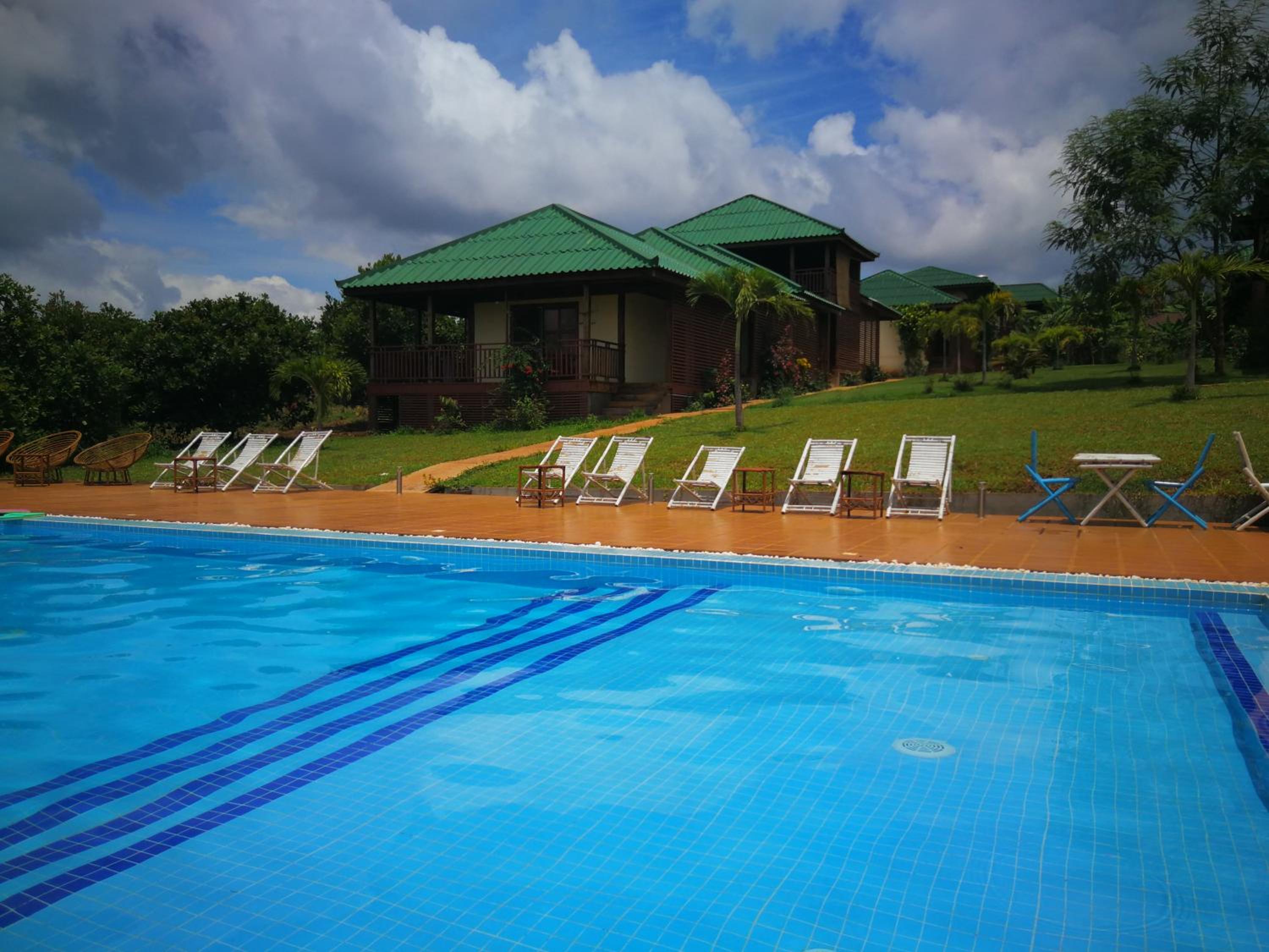 Experience ultimate relaxation at Ratanakiri Paradise Hotel & Restaurant with an outdoor swimming pool, hot tub, and lush garden for a peaceful retreat.