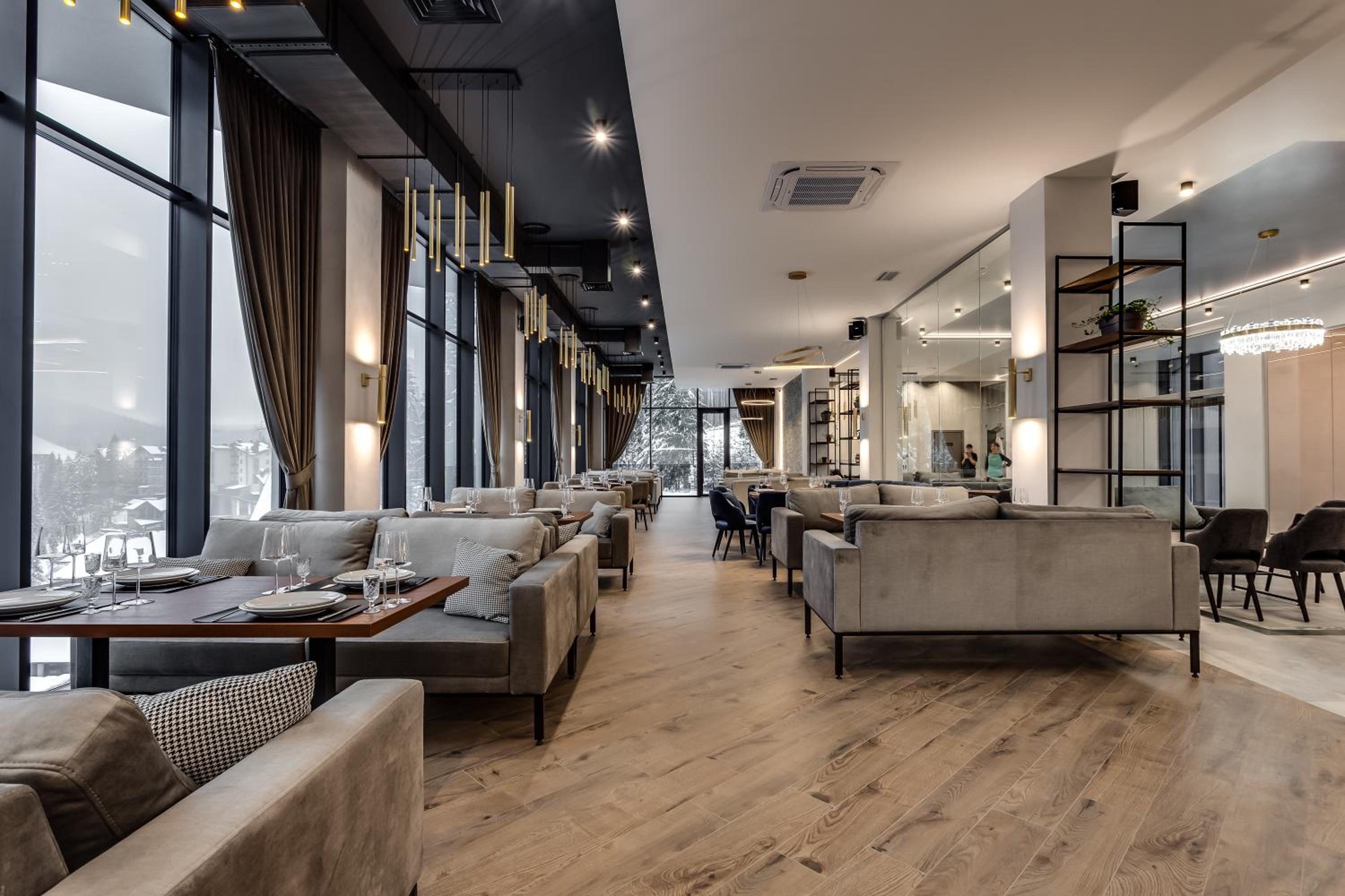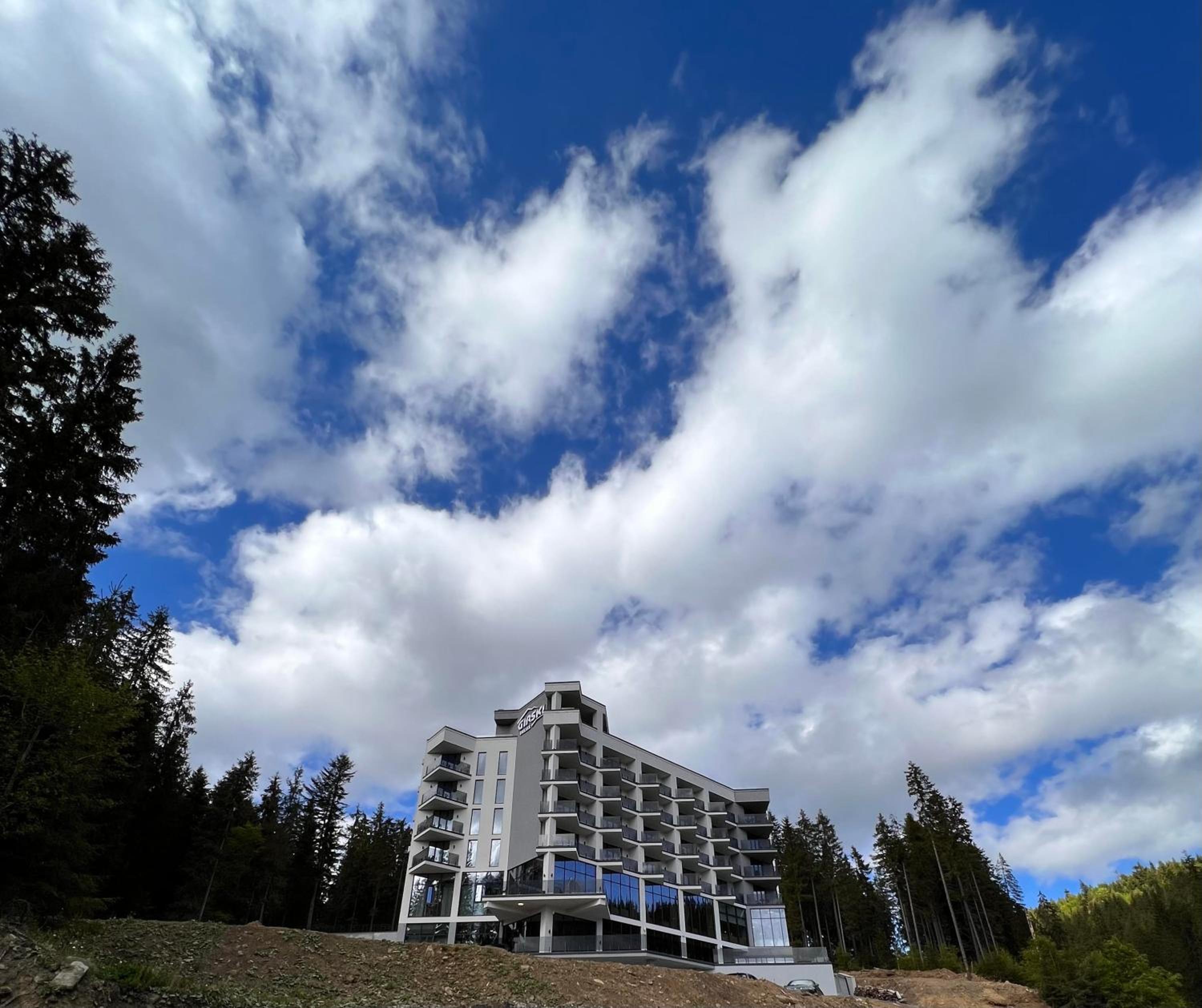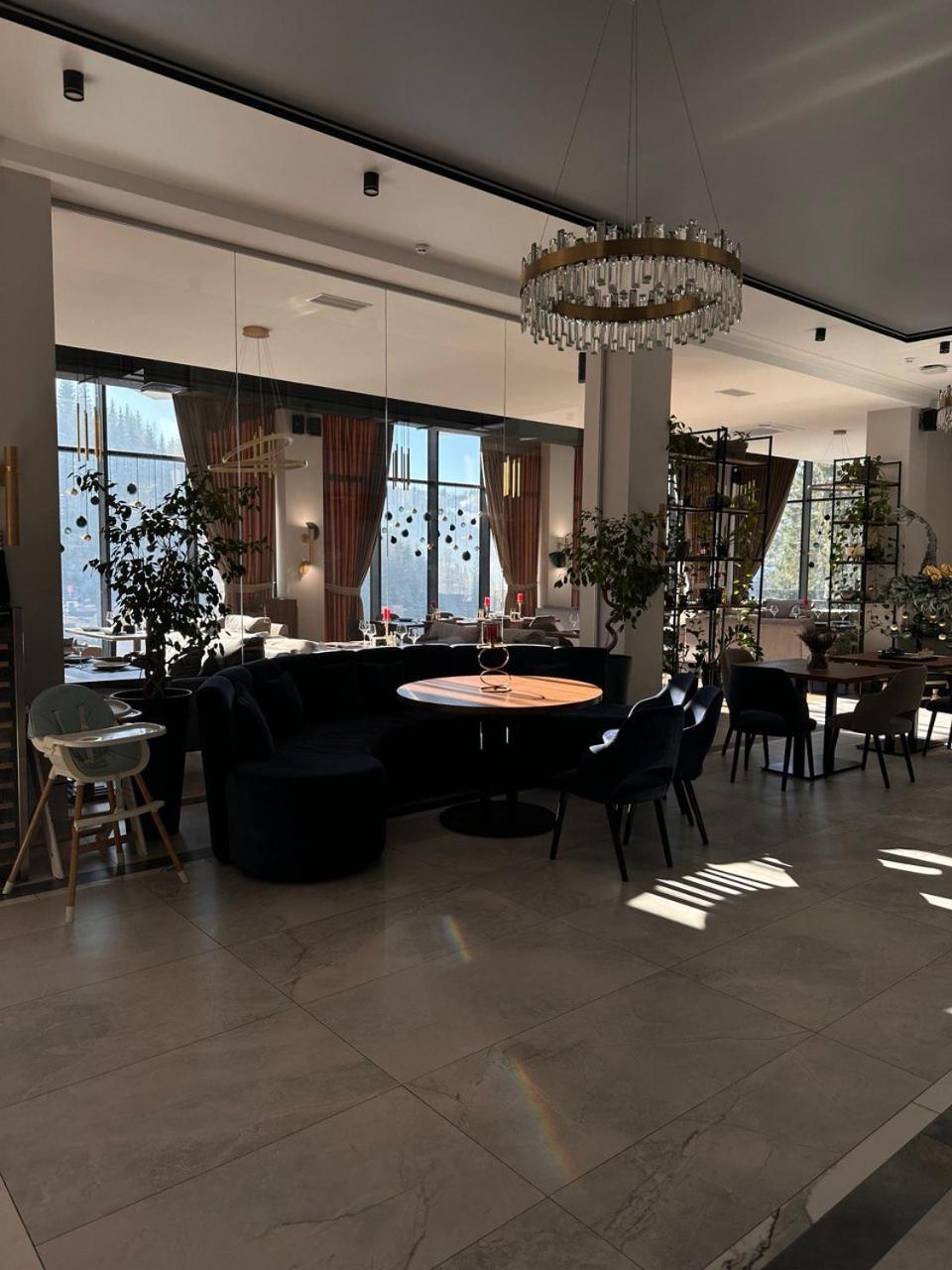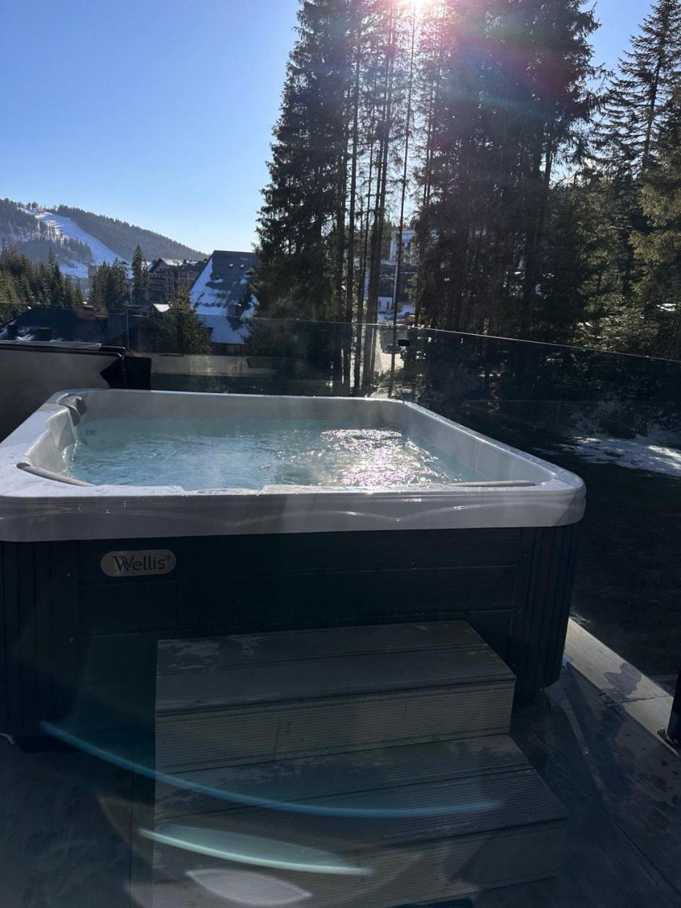 GirskiDelux in Bukovel offers a lavish experience with an outdoor and indoor pool, sauna, hot tub, and hammam. The spa center and karaoke add to the indulgence.
