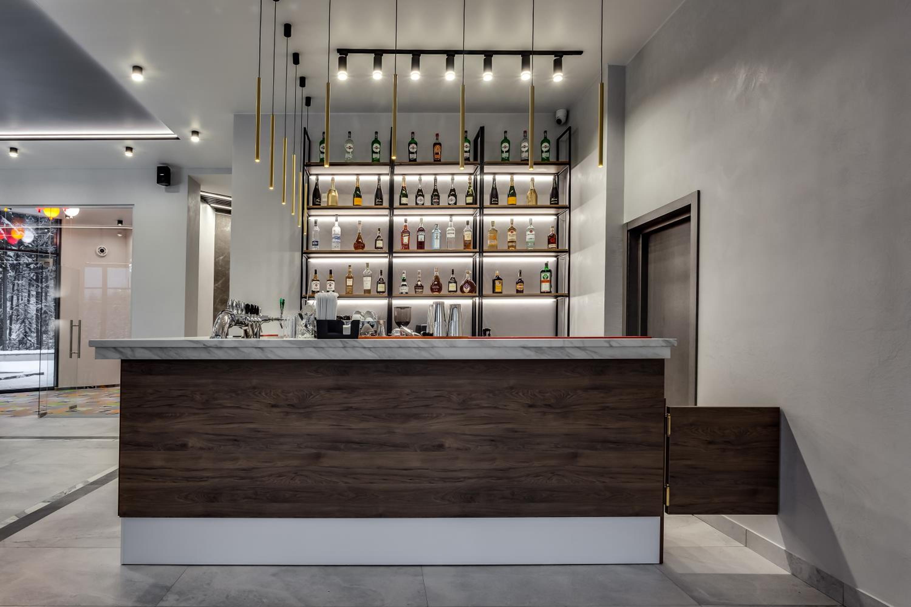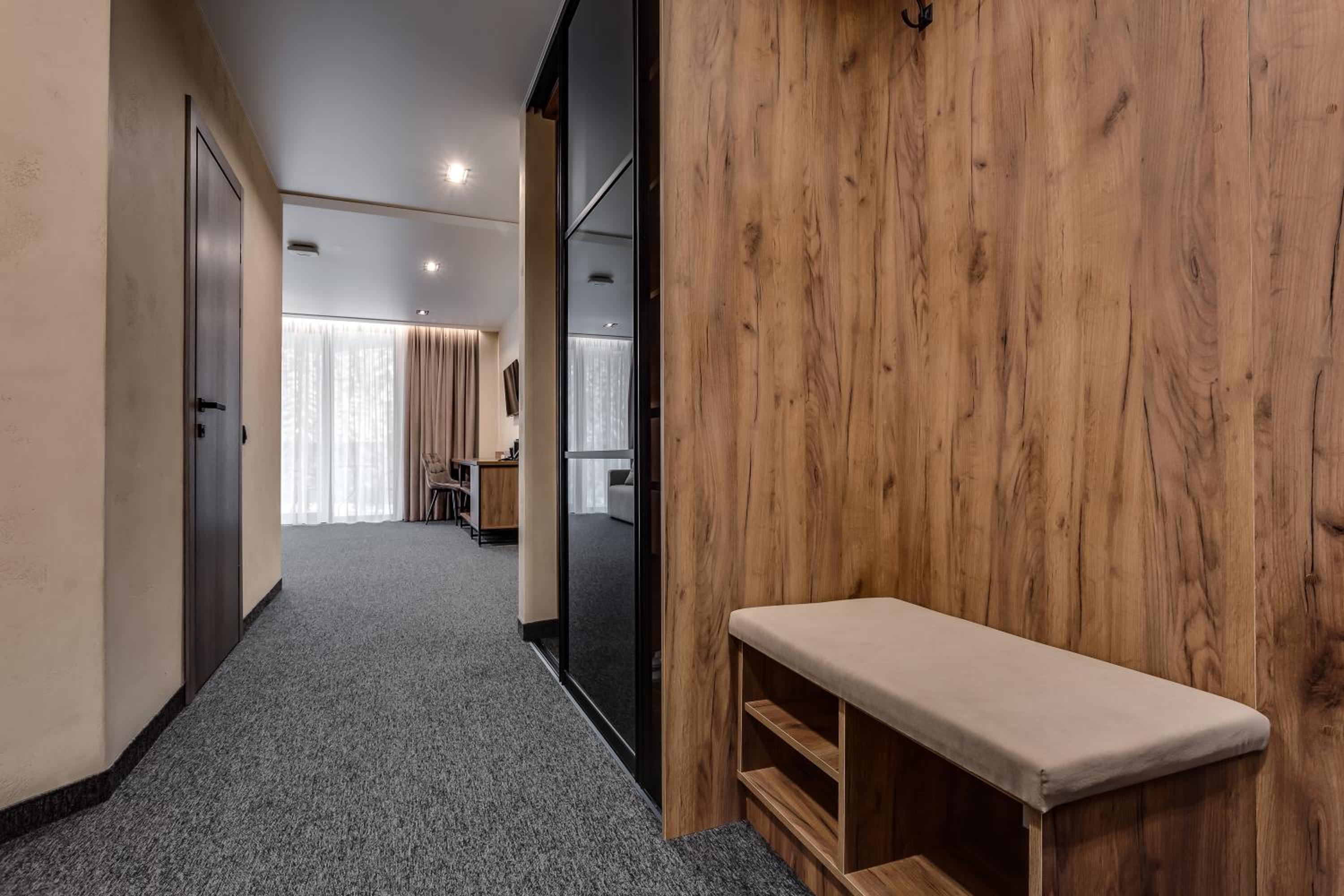 Рядом лес с зоной прогулок, хороший выбор блюд на завтраке, включен индивидуальный трансфер до трасс и обратно со снаряжением, тмхо и уютно