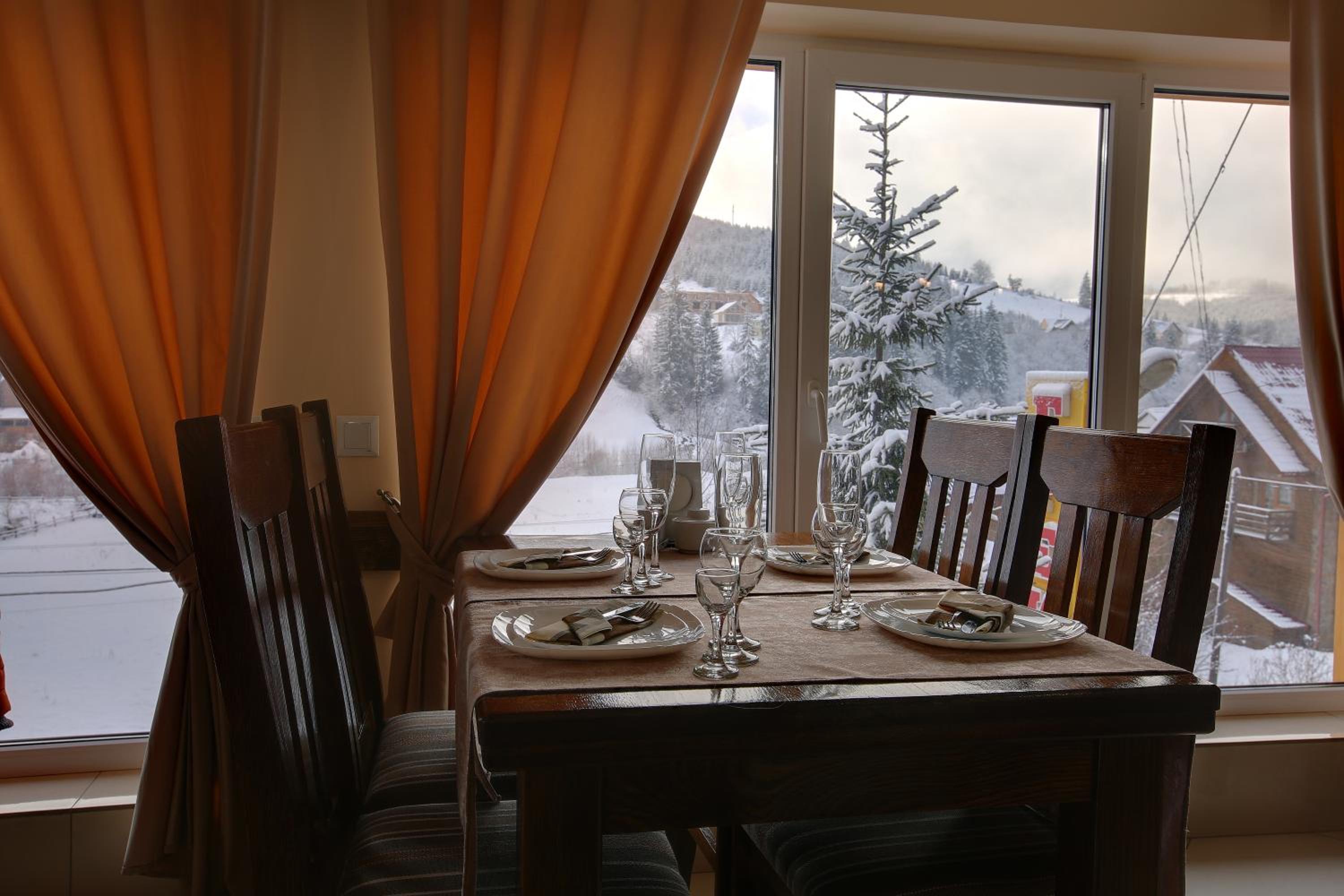 Готель загалом приємний: чисті номери, зручне ліжко з хорошим матрацом, смачні та різноманітні сніданки. Персонал привітний, господарі уважні — завжди можна звернутися. Розташування зручне, до Буковеля близько 15 хвилин пішки. В басейні тепла й чиста вода, а краєвиди з вікна справді вражають.