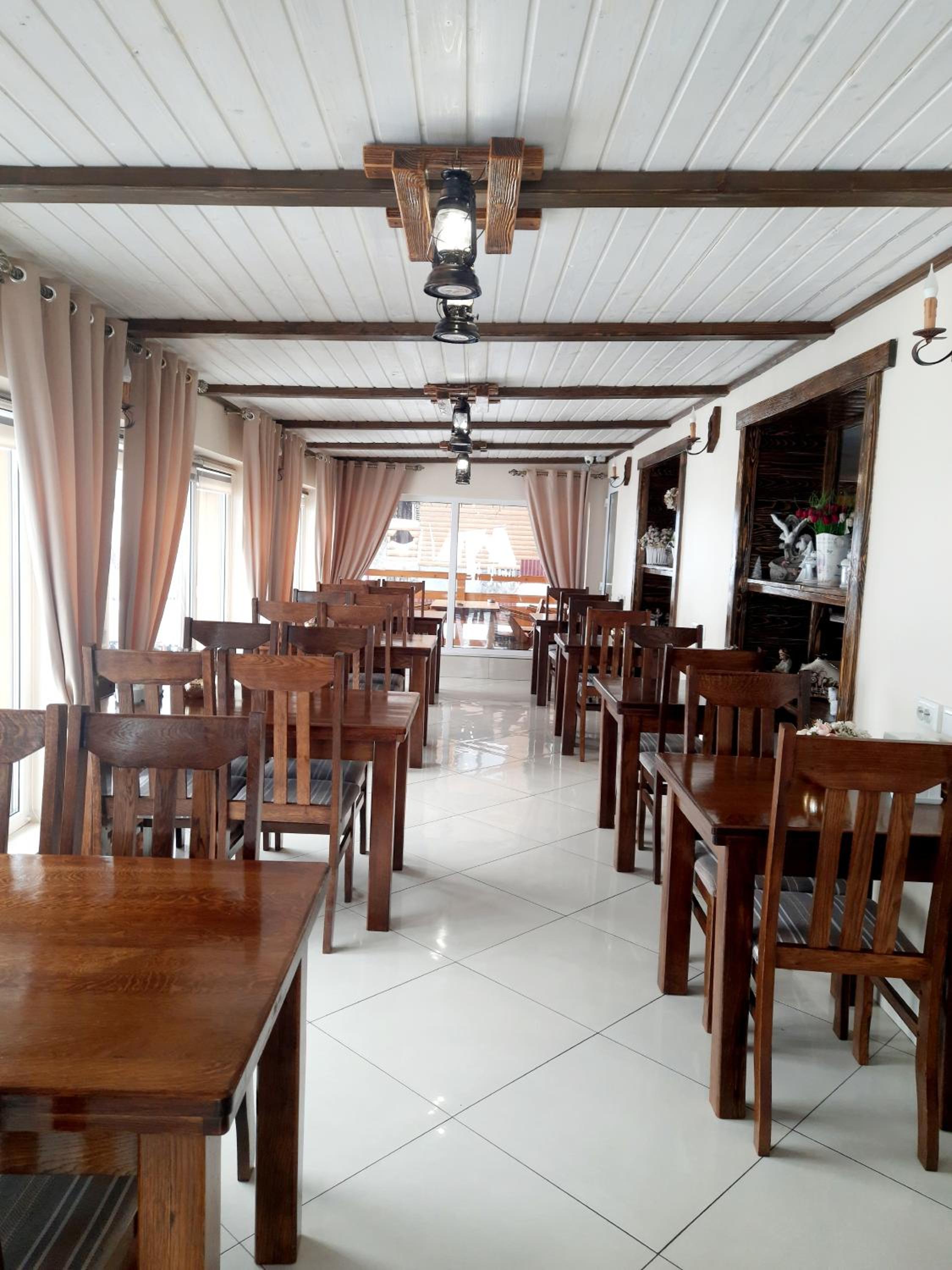 The teritorry of the hotel has many tables and benches for eating outside, has a barbeque are, so you can bring your own meat and buy the wood from the host to make barbeque.