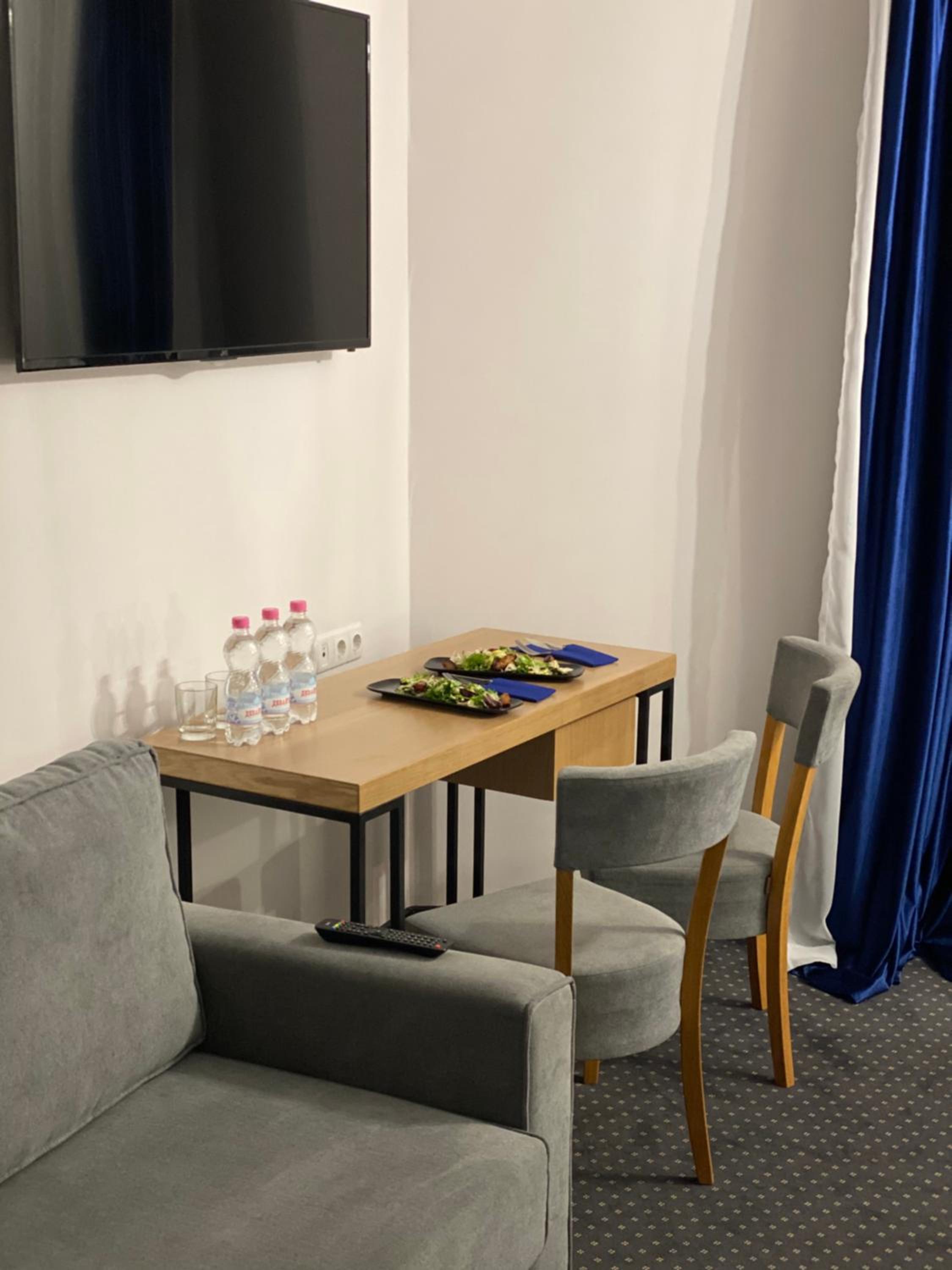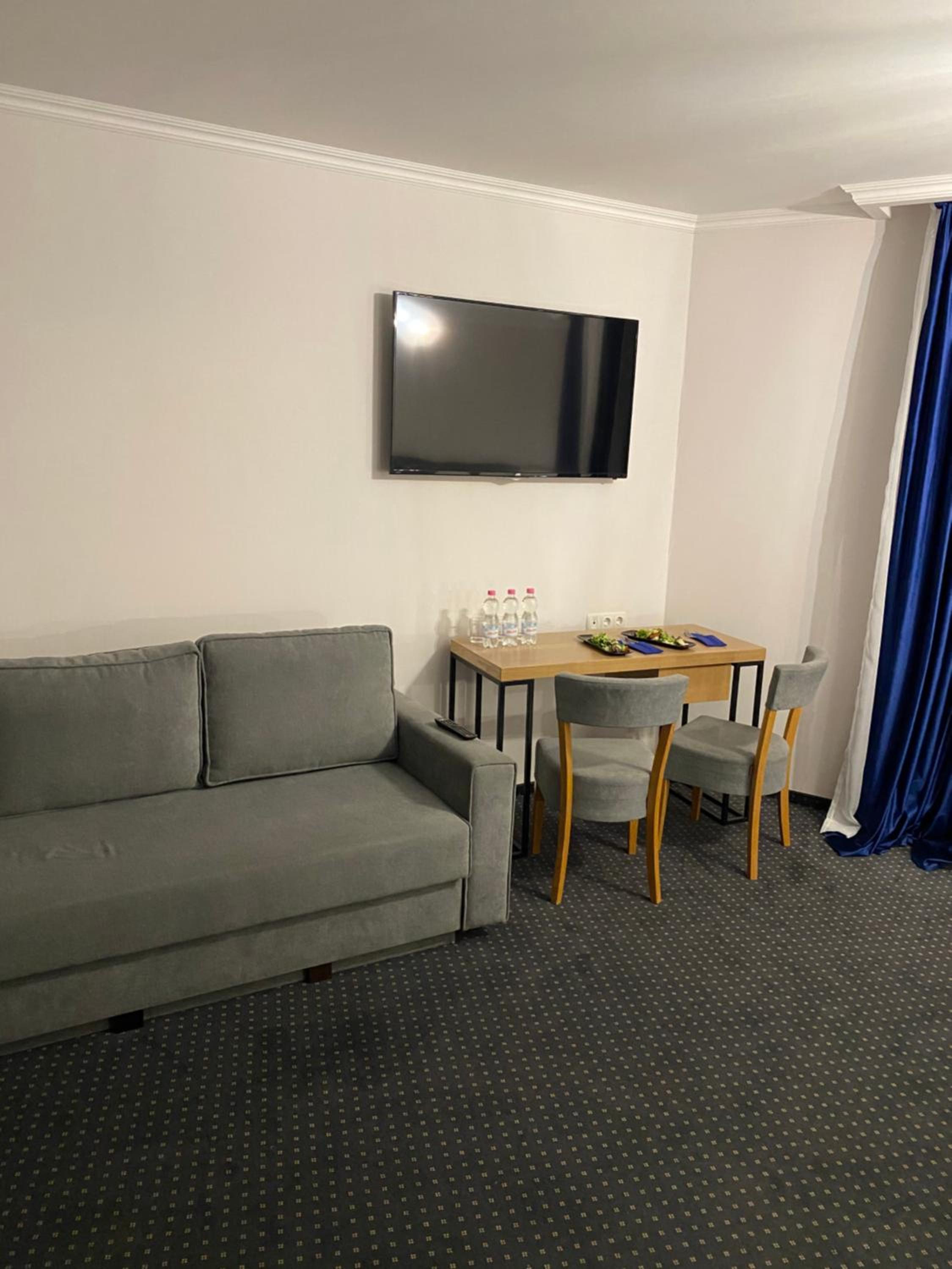 В номері немає холодильника, чайника, елементарних приборів , які за таку ціну могли б там бути. Ванна пуста, немає де покласти навіть косметички, плойки (зберігали на підлозі). Рушники вже запрані, сірого відтінку. Немає базових мініатюр - гель, шампунь, хоча я думала що це вже стандартний набір кожної ванної кімнати в готелі.