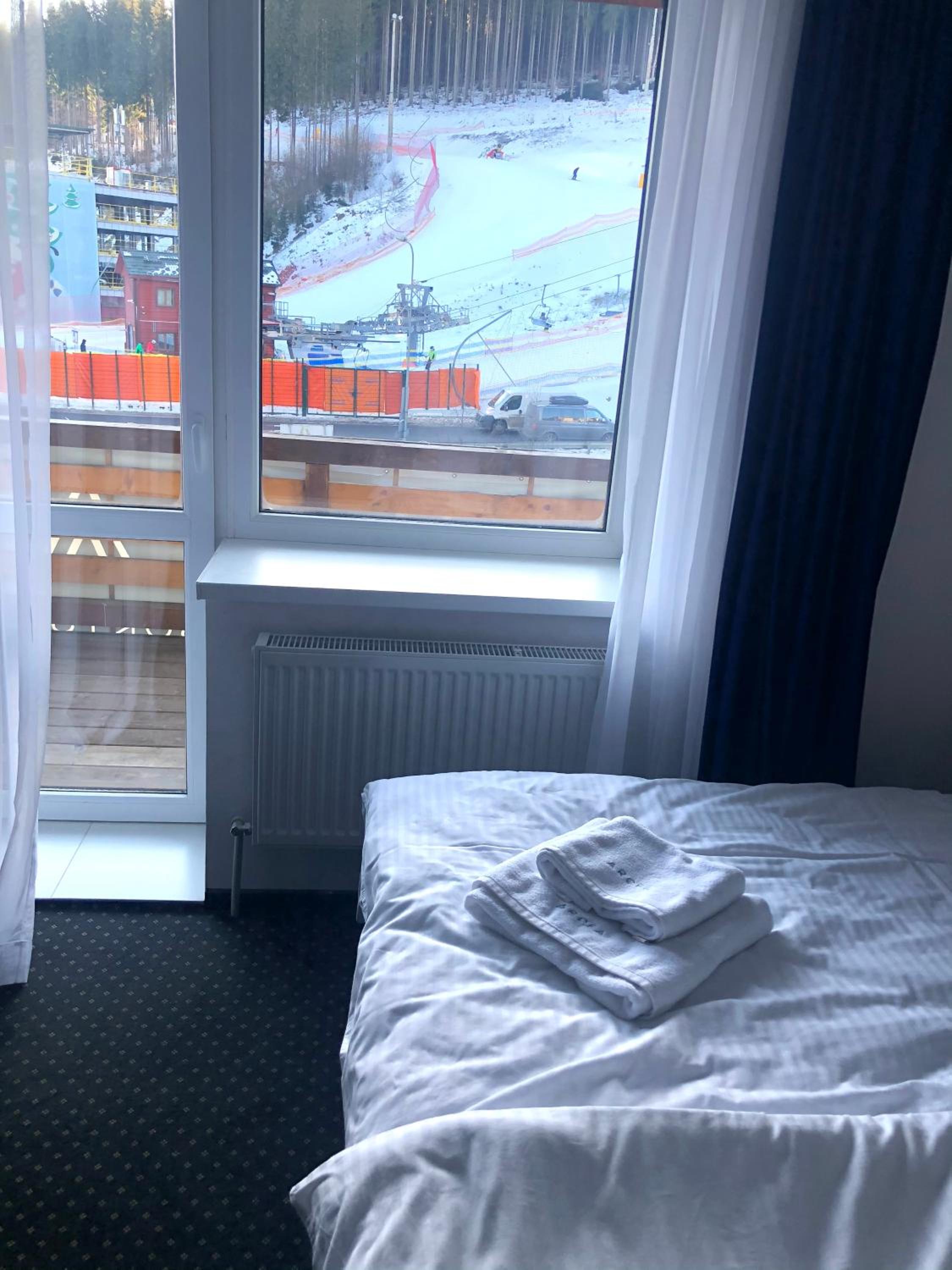 Місце розміщення готелю хороше, великий + лижна кімната. Також досить чистий номер.