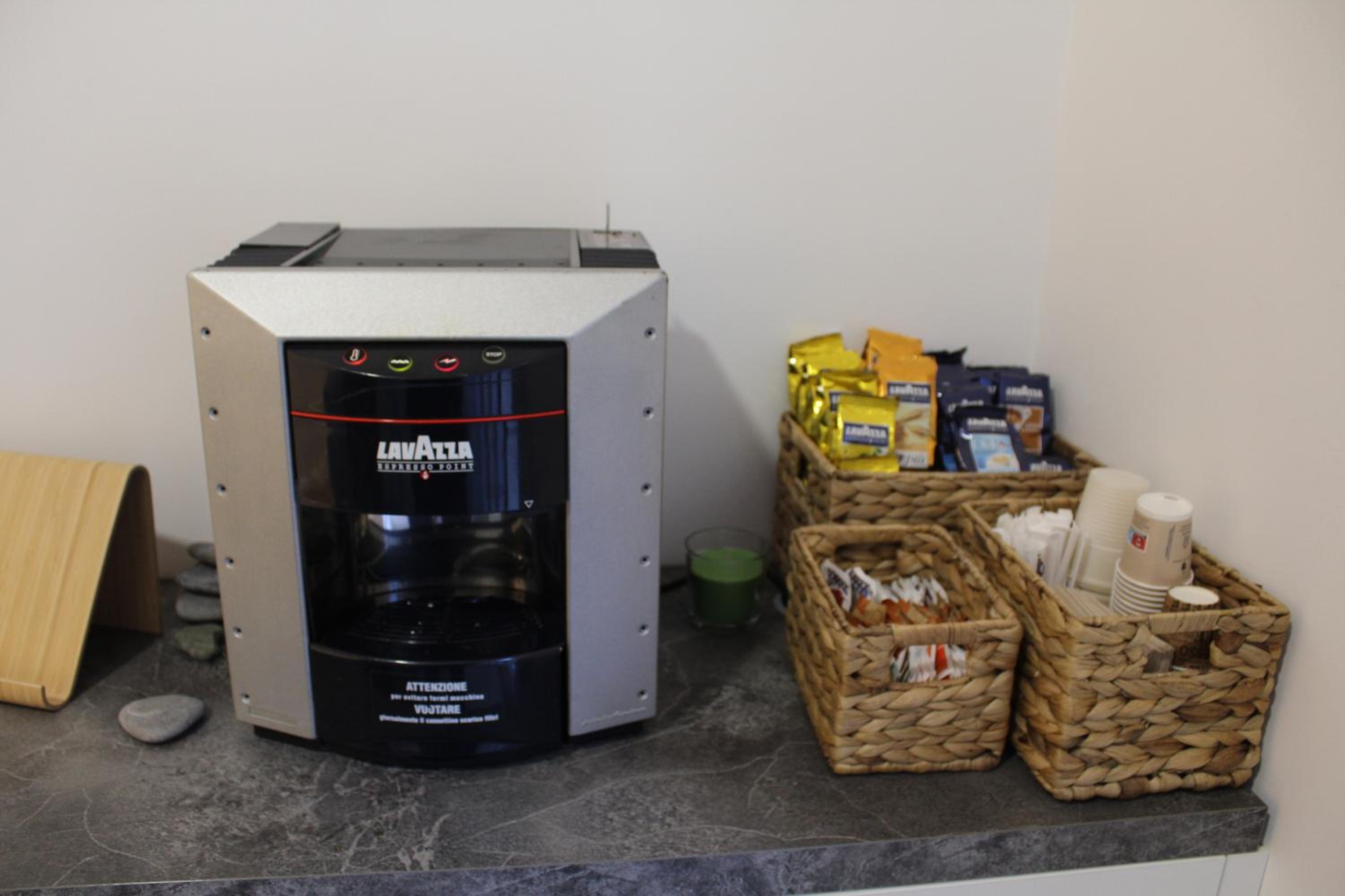 Il terrazzo con sedie e tavolini è stato un bel plus, perfetto per rilassarsi. C’era anche una macchinetta per fare caffè e tè, davvero graditissima.