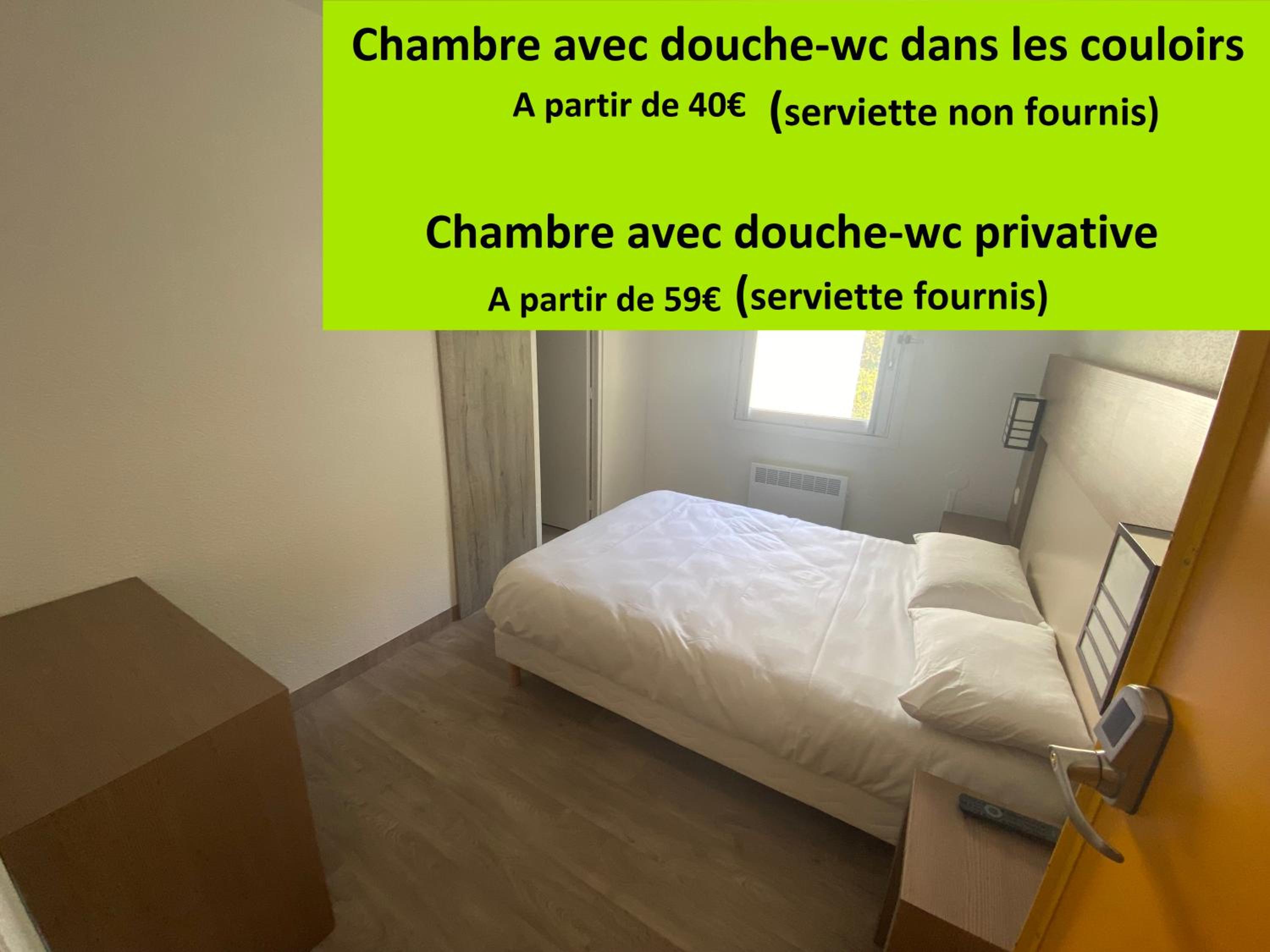 Chambre pas de serviette de douche, pas de savon dans les douches, eau pas très chaude et en trombe. Pas de papier dans les wc. Pas d'internet dans la chambre !! Laisse à désirer, cela fait plus de 20 ans que je le connais aucune amélioration de pire en pire.