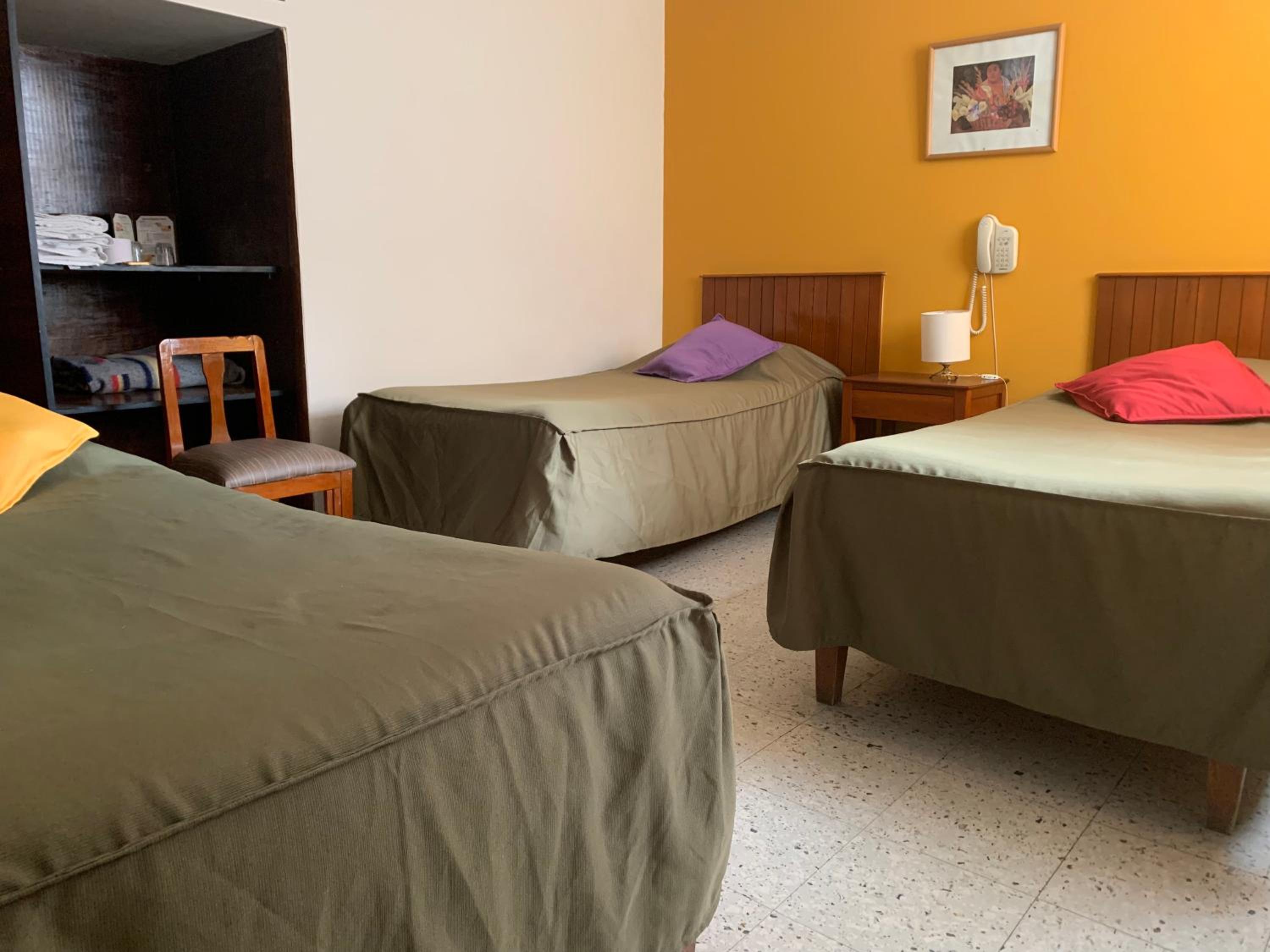 It was in the center of this tiny rural town just up the street from the central plaza and a few blocks from the bus station. Clean and charming great hot water in the shower for a modest hotel. The room was modest and nice. All we expected.
