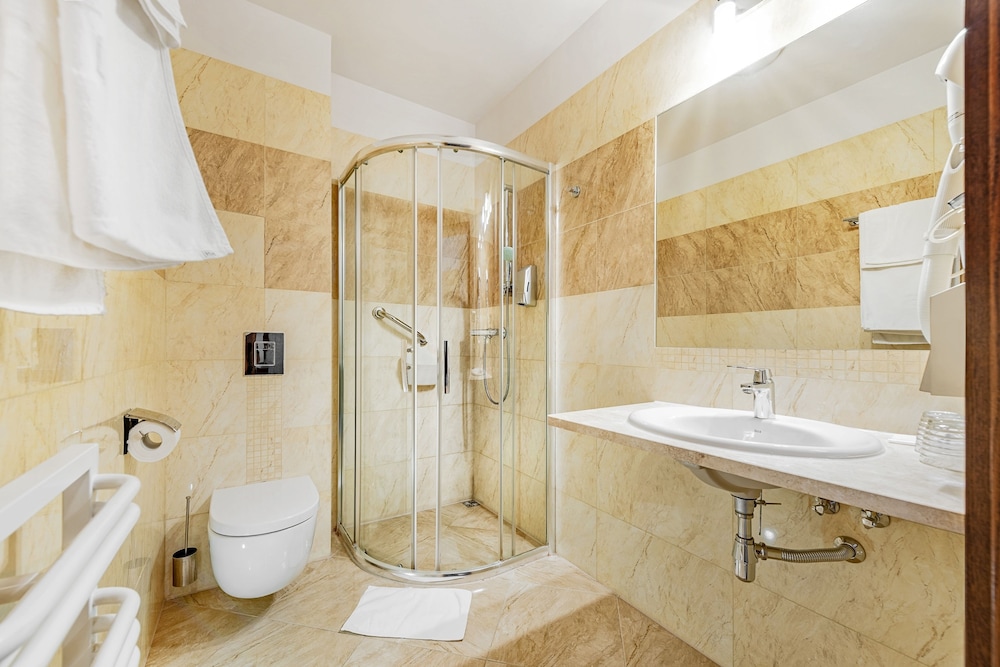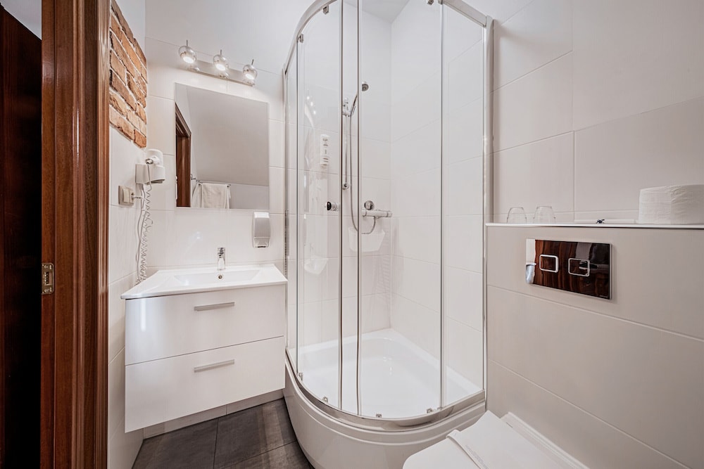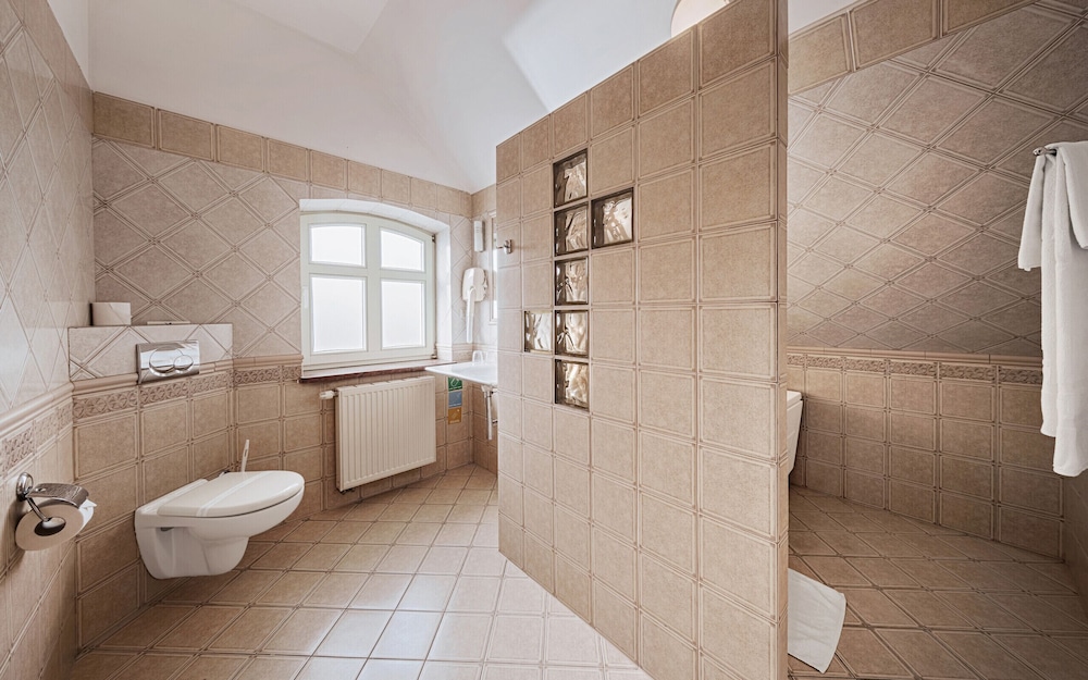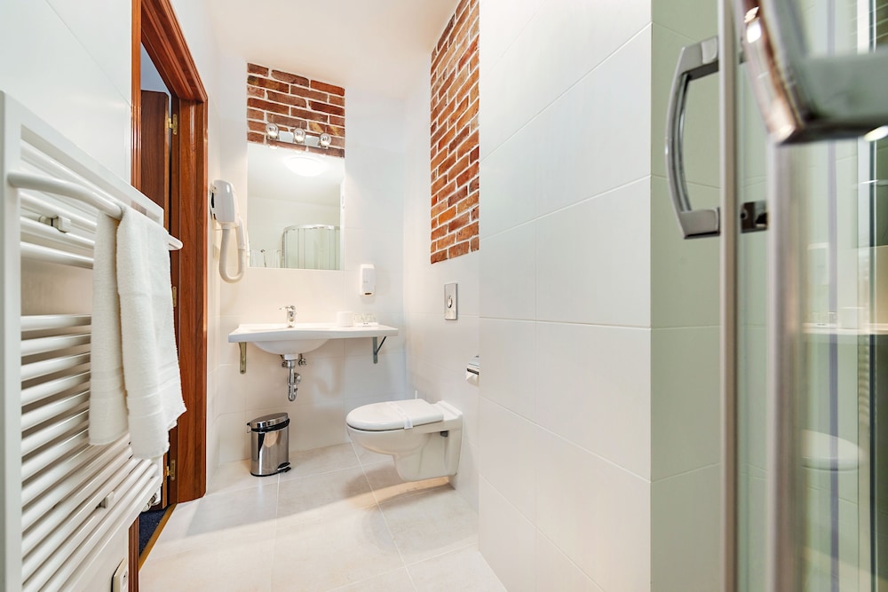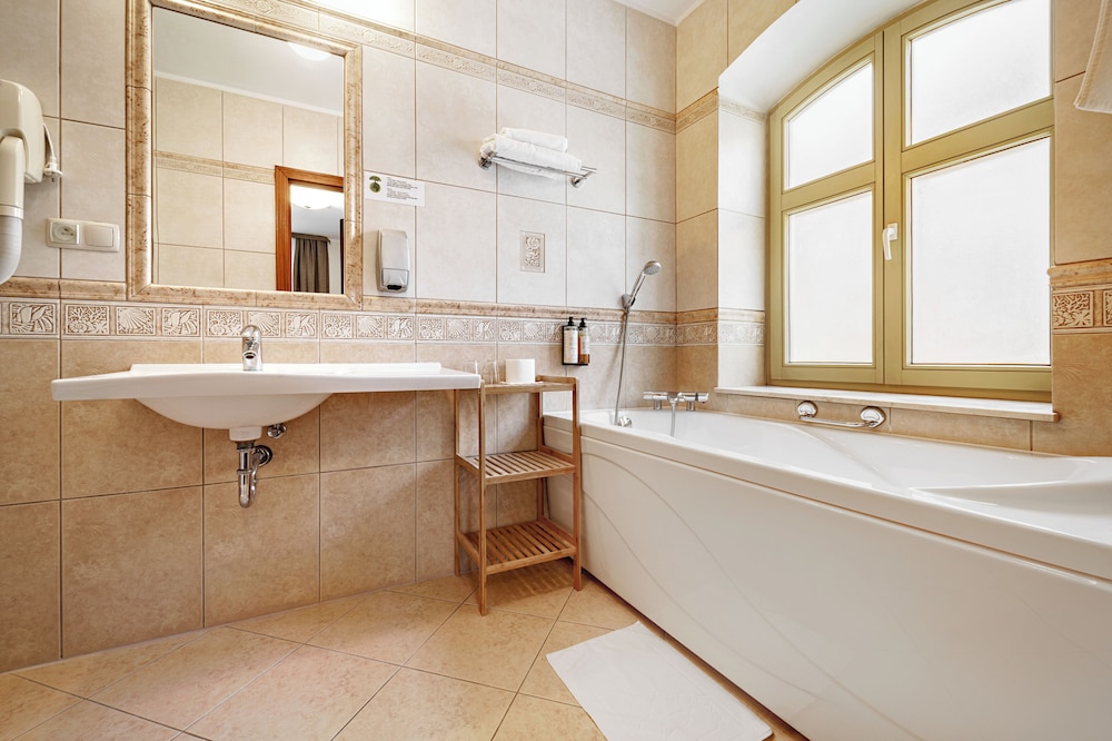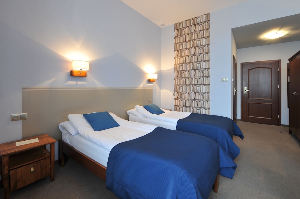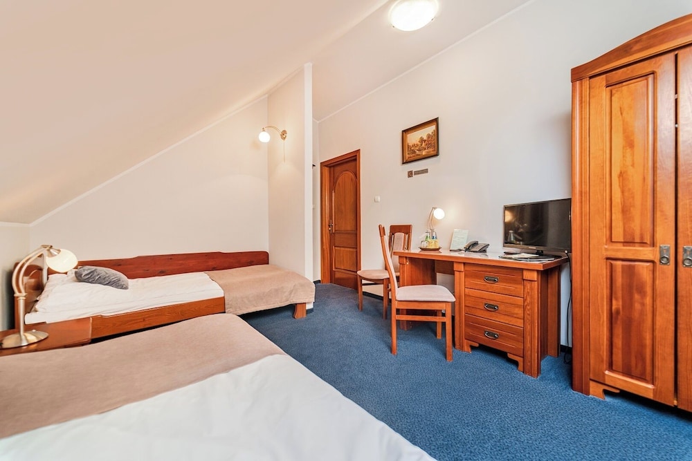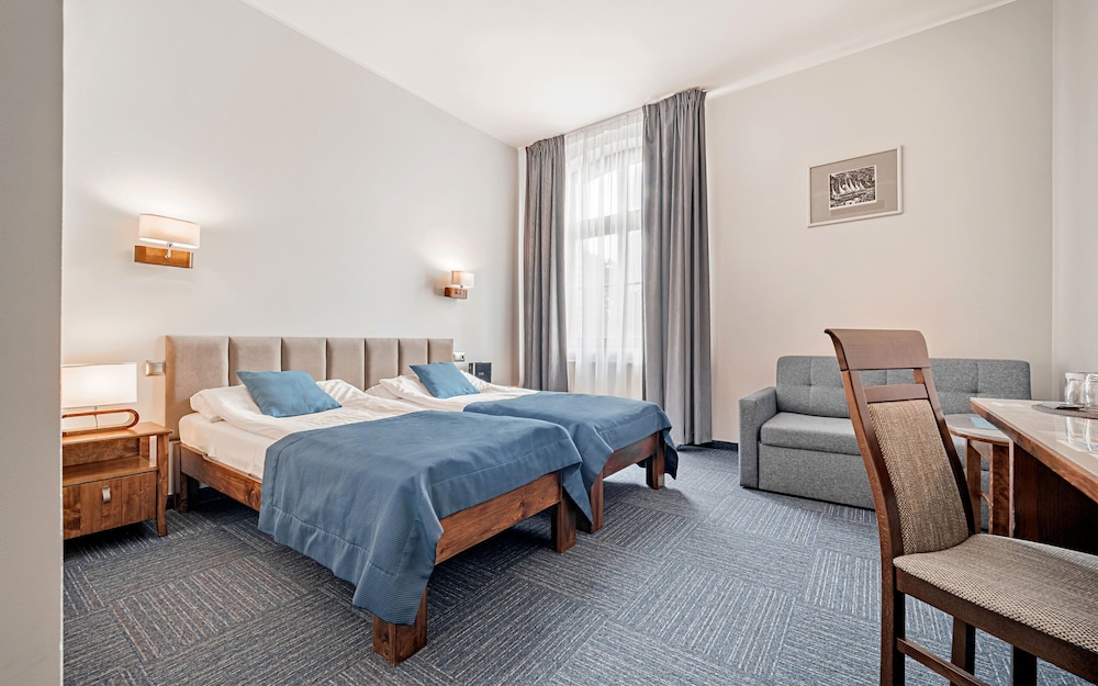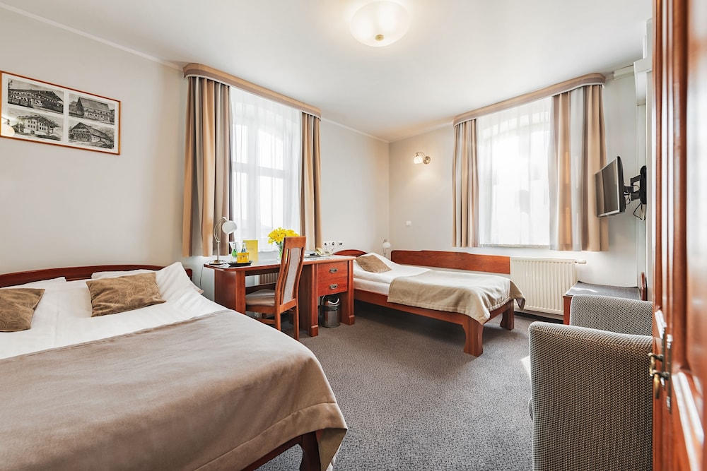 Klimat starych murów, bliskość terenów zielonych, bardzo miła obsługa, czystość i porzadek w całym hotelu. W pokoju duża, wygodna łazienka i w pełni zaciemniające zasłony. Pokój bardzo ciepły (przyjemnie, nawet dla zmarzlaka)