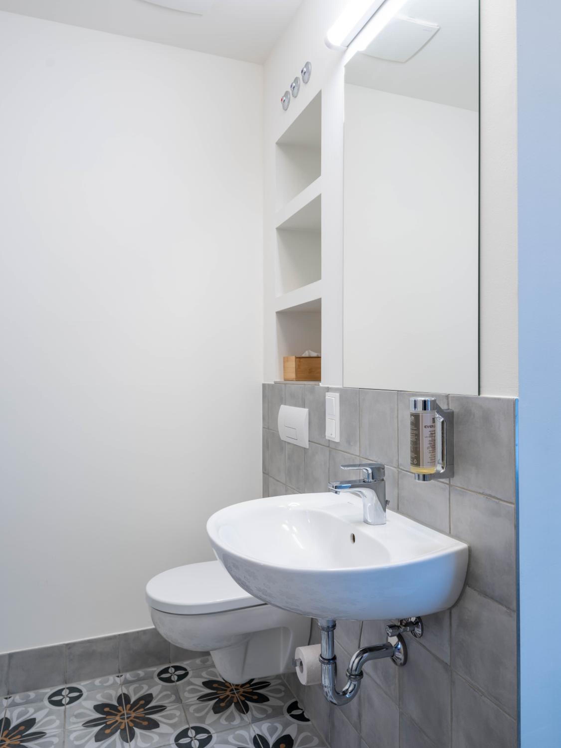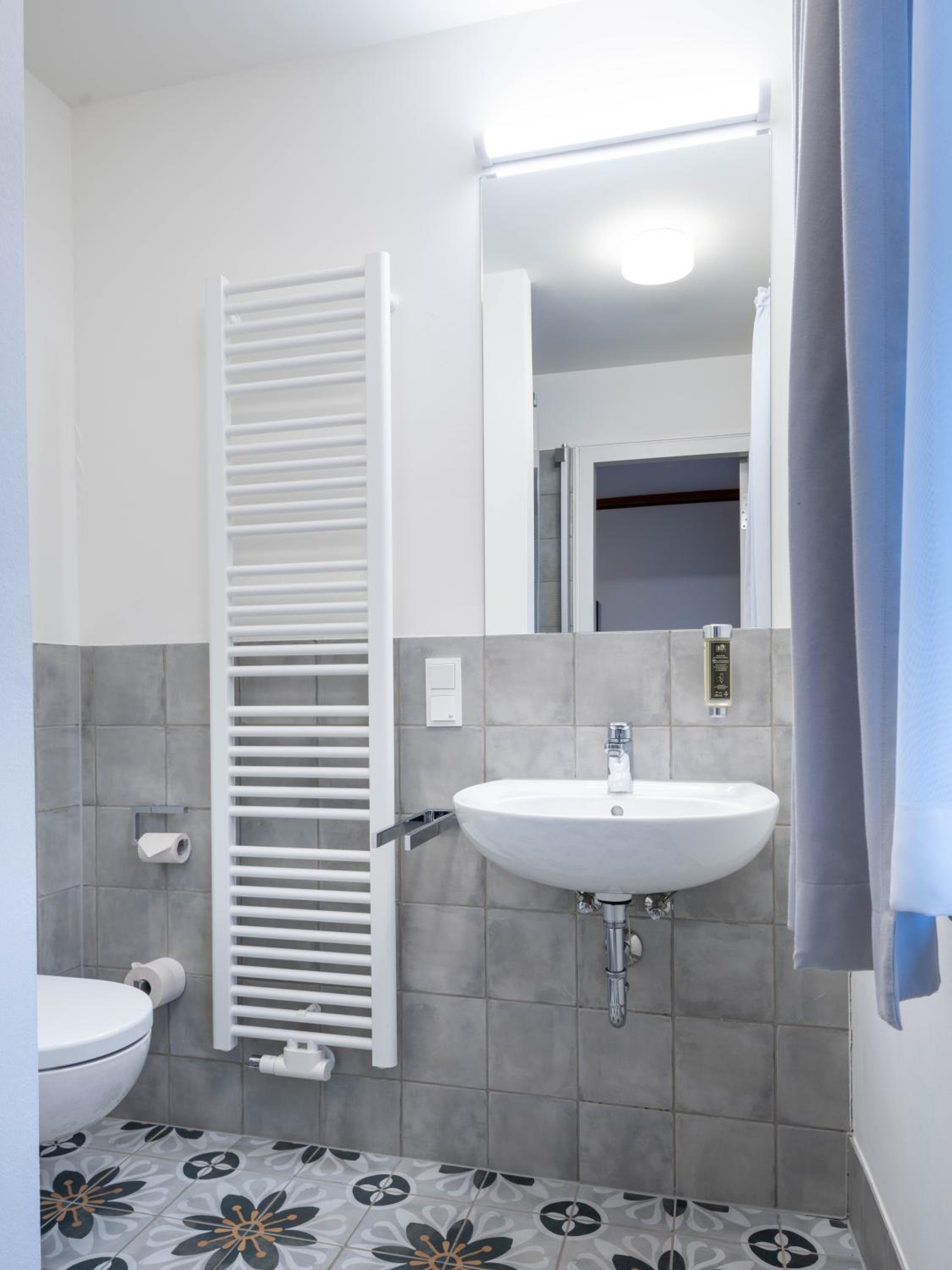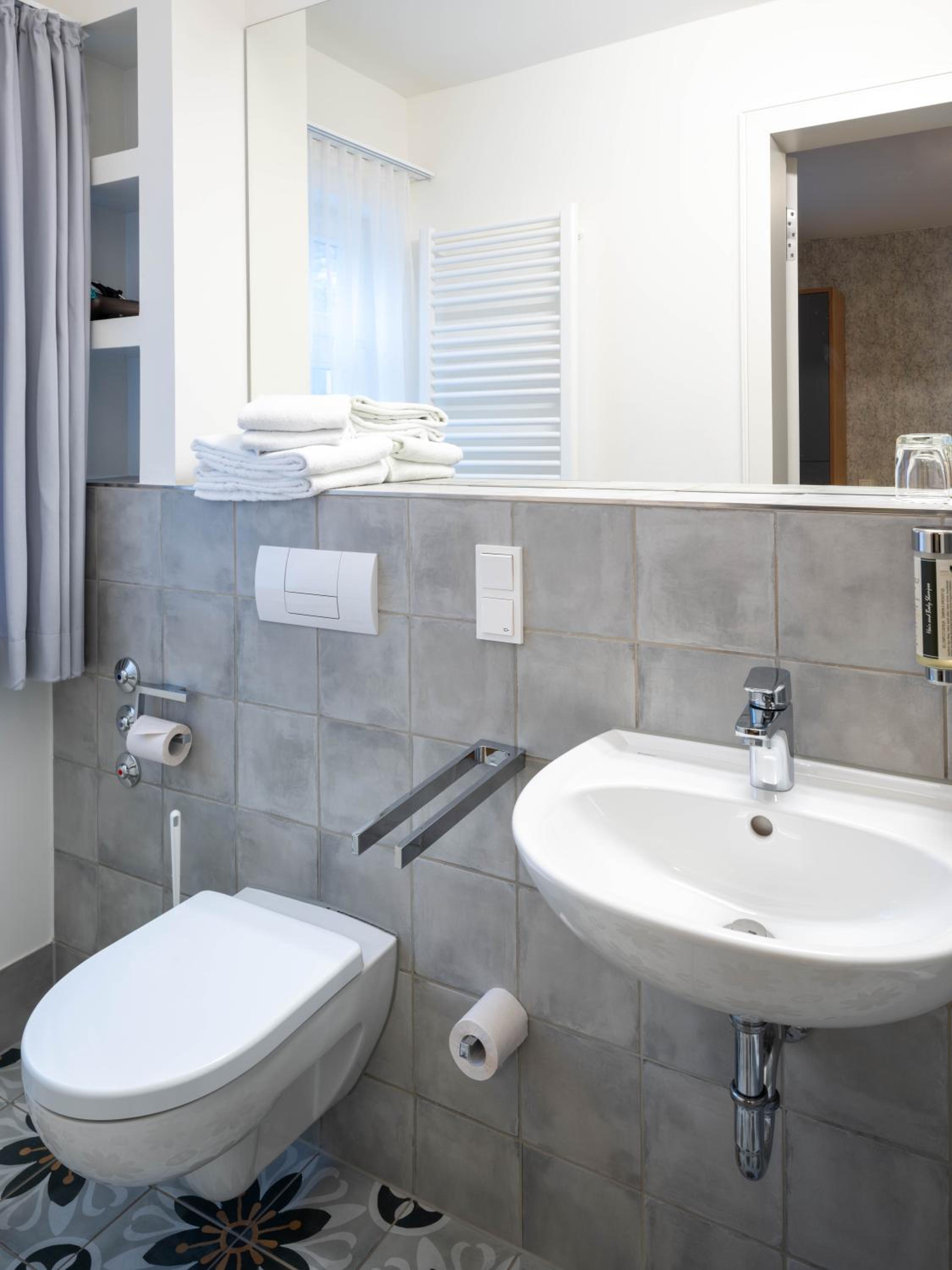 Lage, unkomplizierter Check-In, praktisch funktional eingerichtetes Zimmer mit gesondert gut ausgestattetem Dusche/WC-Raum.
