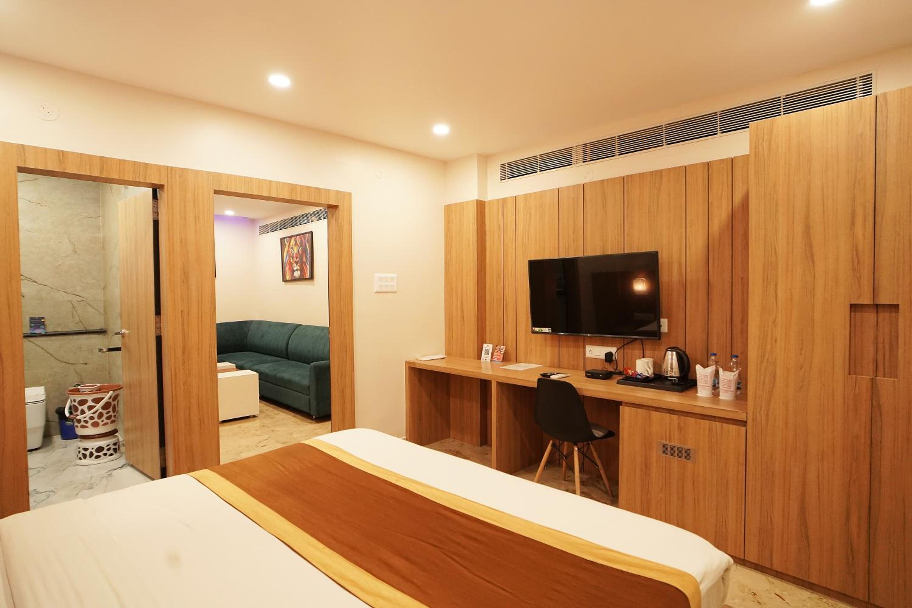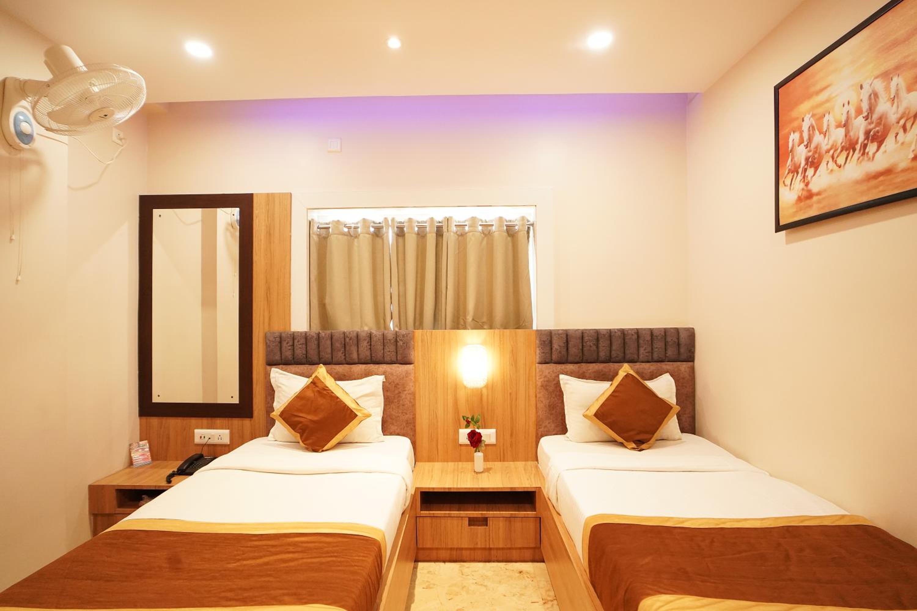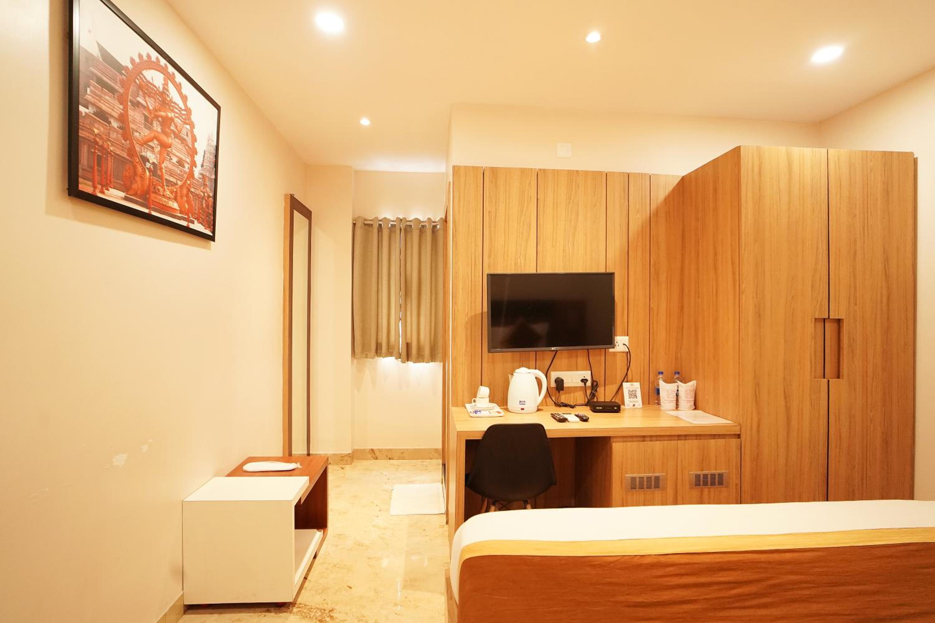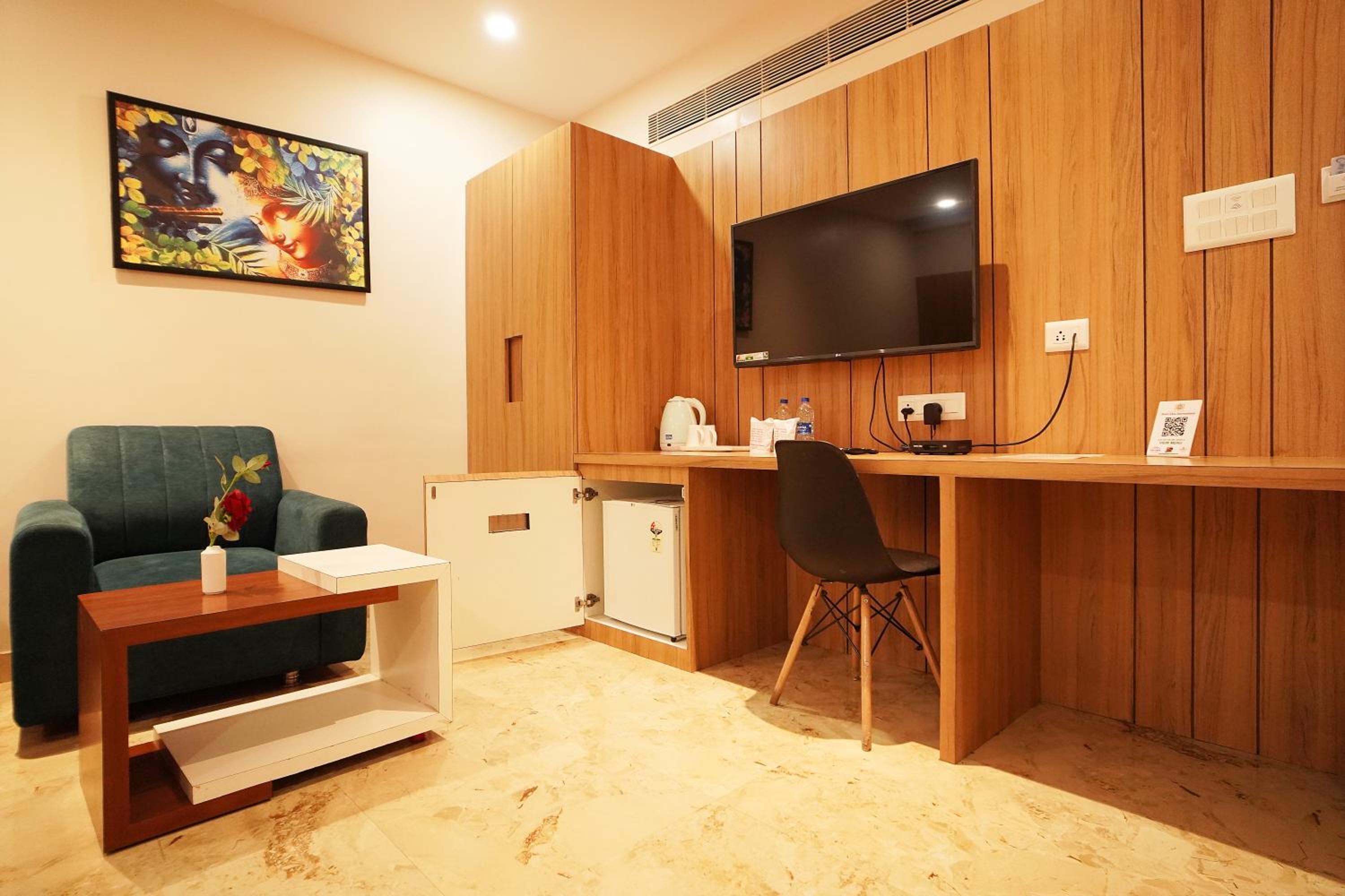 Hotel Ekta International in Deoghar offers 3-star air-conditioned rooms with modern amenities and a private bathroom. Each room features a flat-screen TV, kettle, and free toiletries for a comfortable stay.