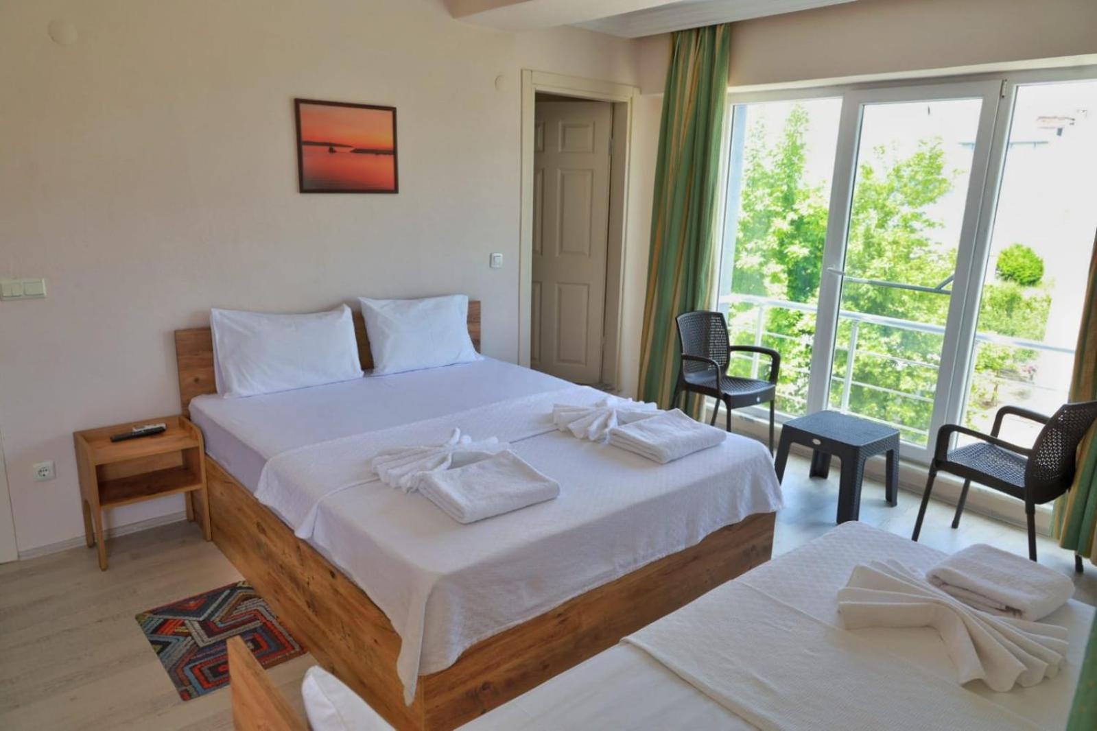 Luxurious Rooms with Spectacular Views - Each room at Eceabat Doğa Pansiyon-Hotel is equipped with modern amenities including air conditioning, a flat-screen TV, and a private bathroom. Guests can unwind on their patio or balcony while enjoying breathtaking sea views.