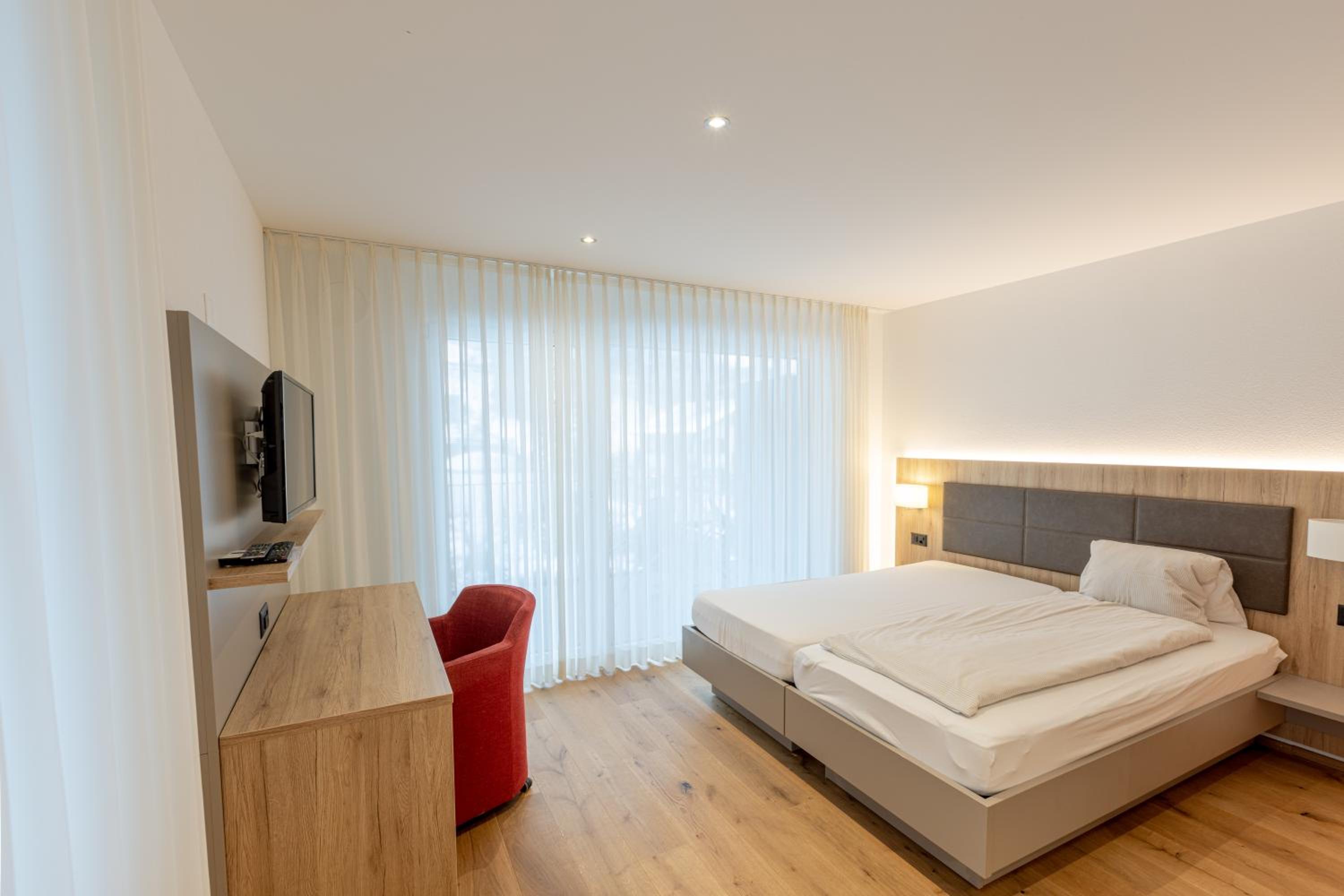 Indulge in comfort at Hotel Flamatt's modern and spacious rooms, equipped with a cozy seating area, TV, and a private bathroom for your relaxation.