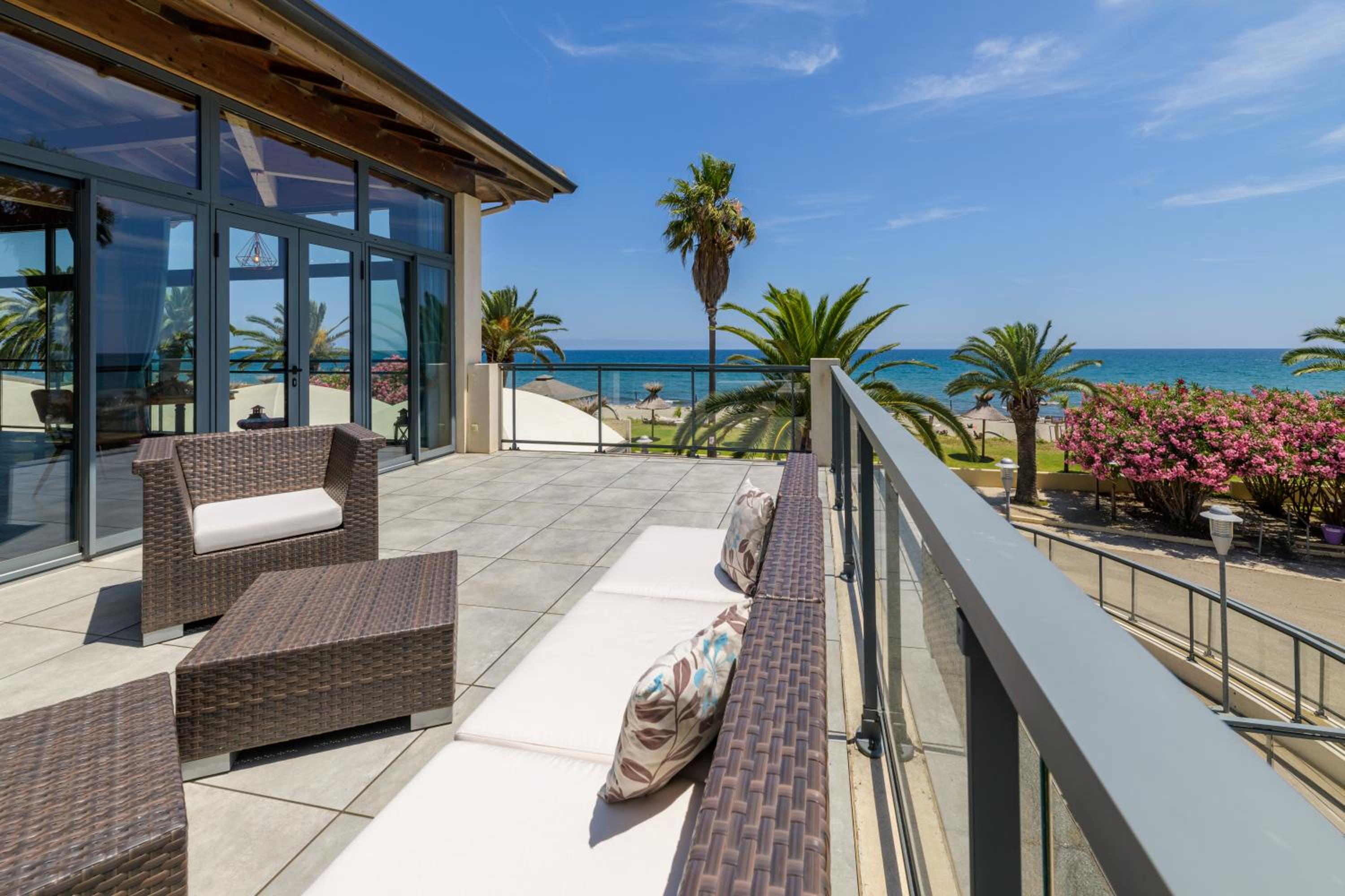 Please note that a deckchair, Beach umbrellas and beach towels are available for extra fees.