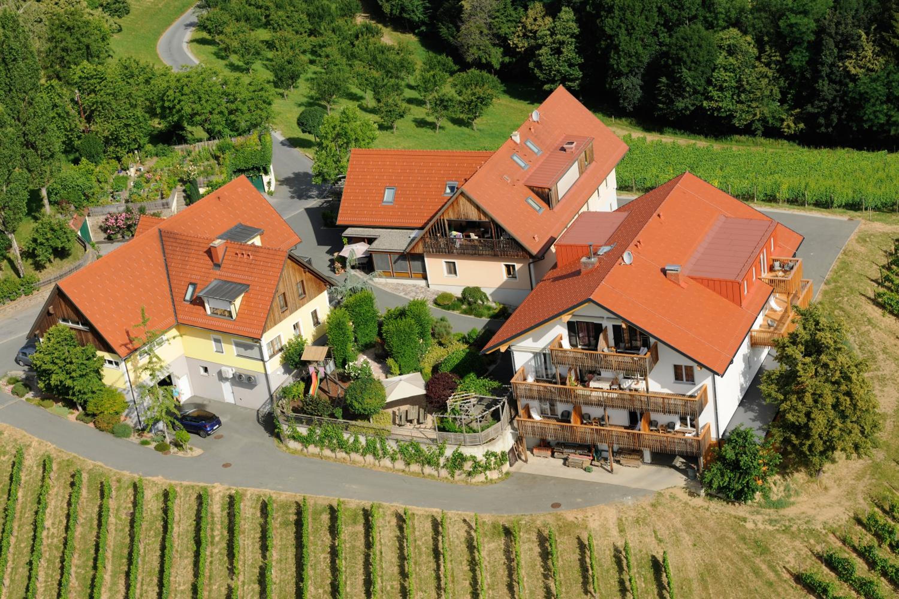 Weingut Dreisiebner Stammhaus offers air-conditioned rooms with modern amenities such as a flat-screen TV, balcony, and private bathroom. Enjoy a comfortable stay with family rooms available and a children's playground on-site.