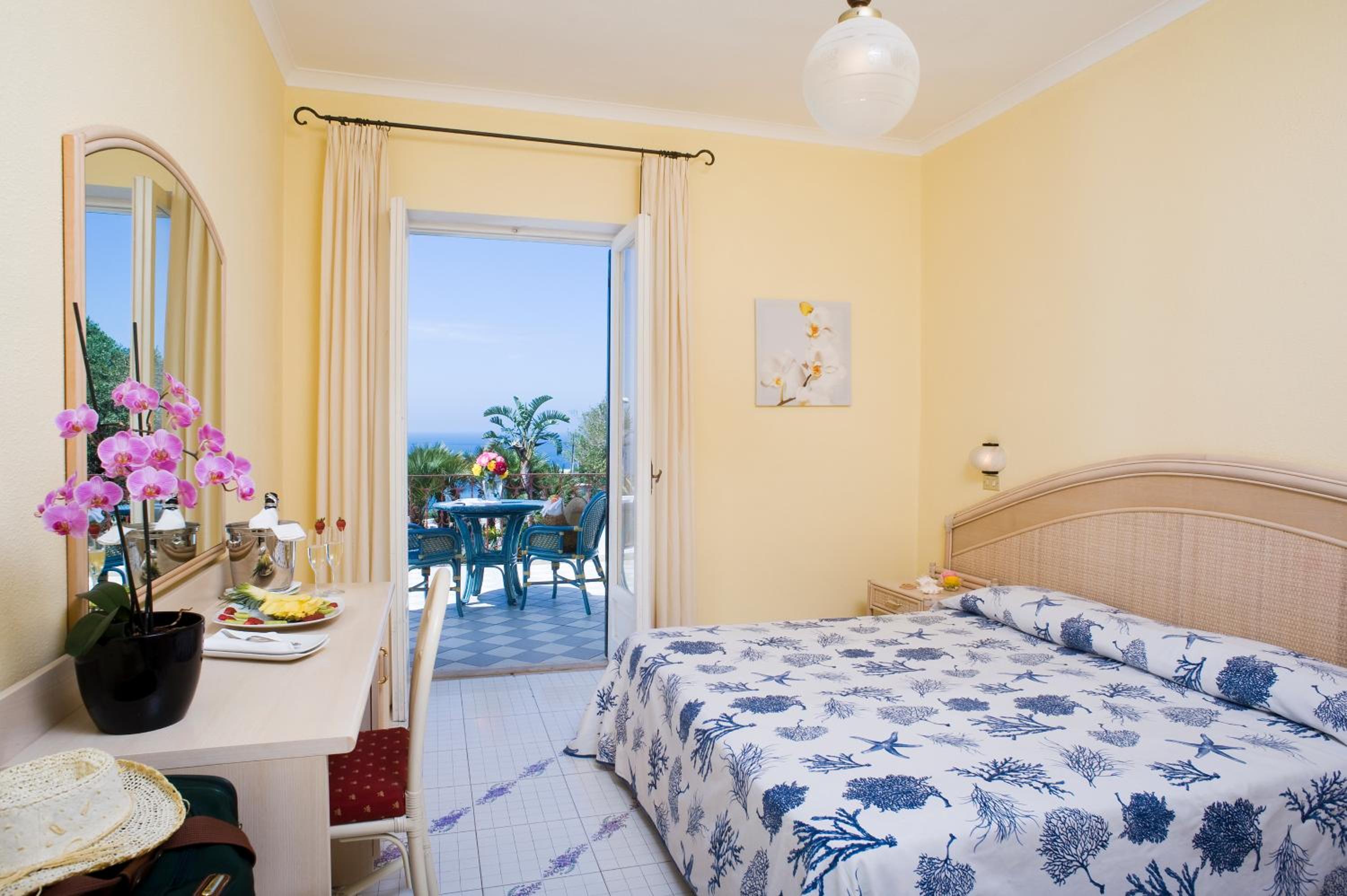 A very pleasant hotel with its own swimming pool. Close to the town of Forio as well as to the Neptune Gardens. The hotel has a beautiful garden and a terrace with a view. Breakfast was excellent; we didn’t have dinner there.