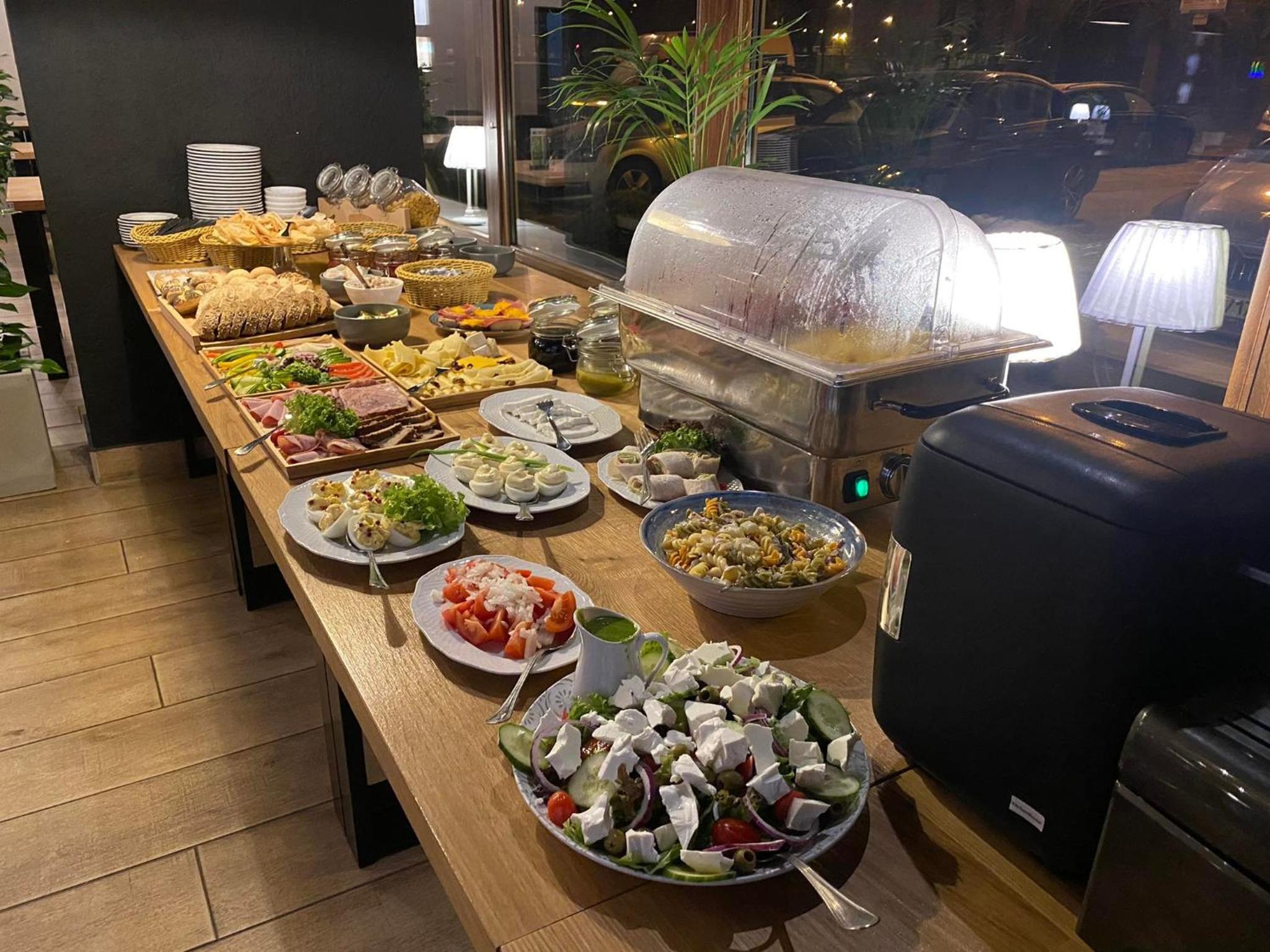 Bạn có thể ăn ở nhà hàng của khách sạn với giá 40 zloty, hoặc ra ngoài các cửa hàng tiện lợi ở gần đó mua đồ ăn sáng cũng được