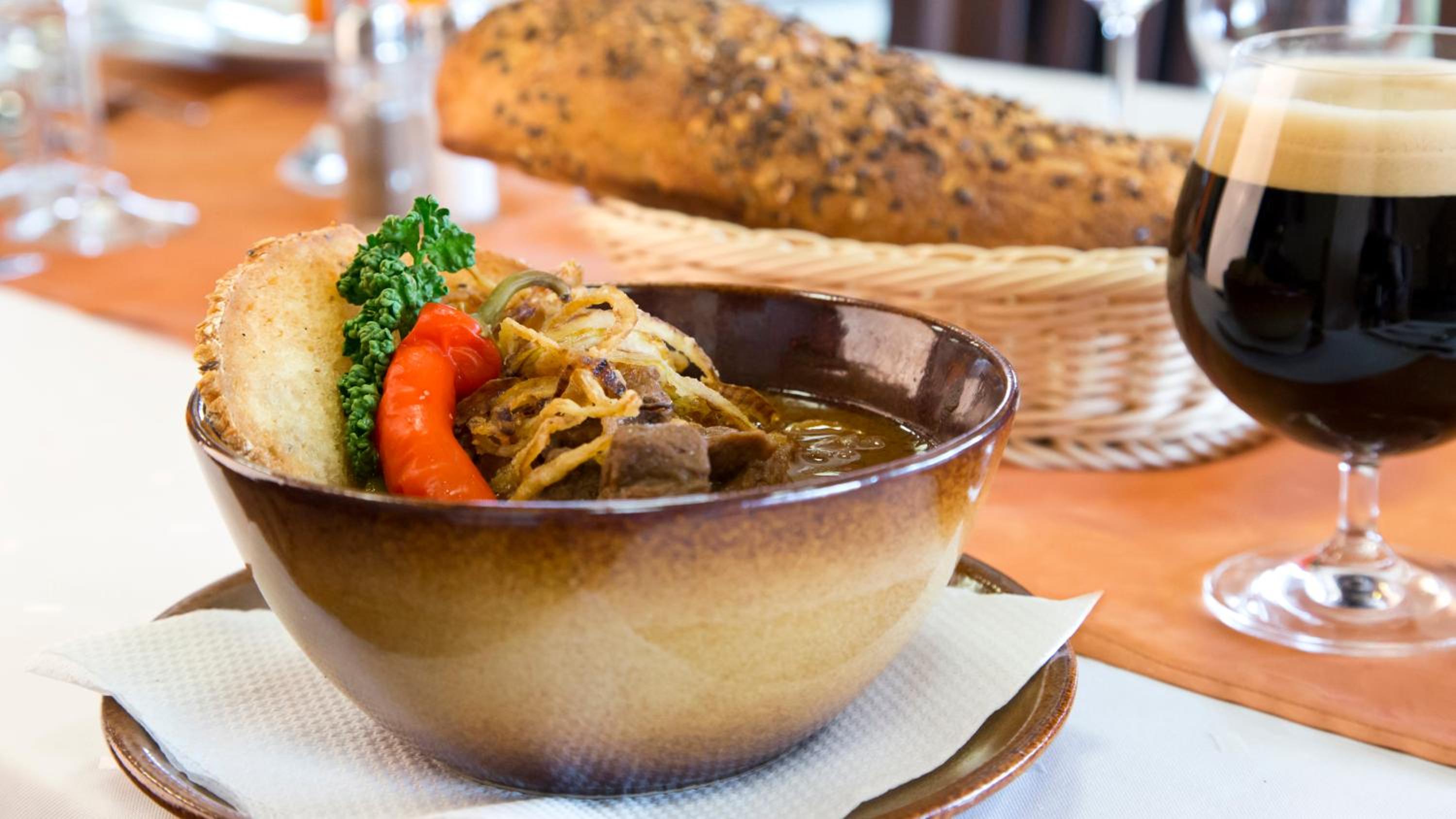 Indulge in homemade specialties at the onsite restaurant, featuring farmyard-fresh dishes. Guests can also enjoy beer baths and a unique culinary experience at the brewery.