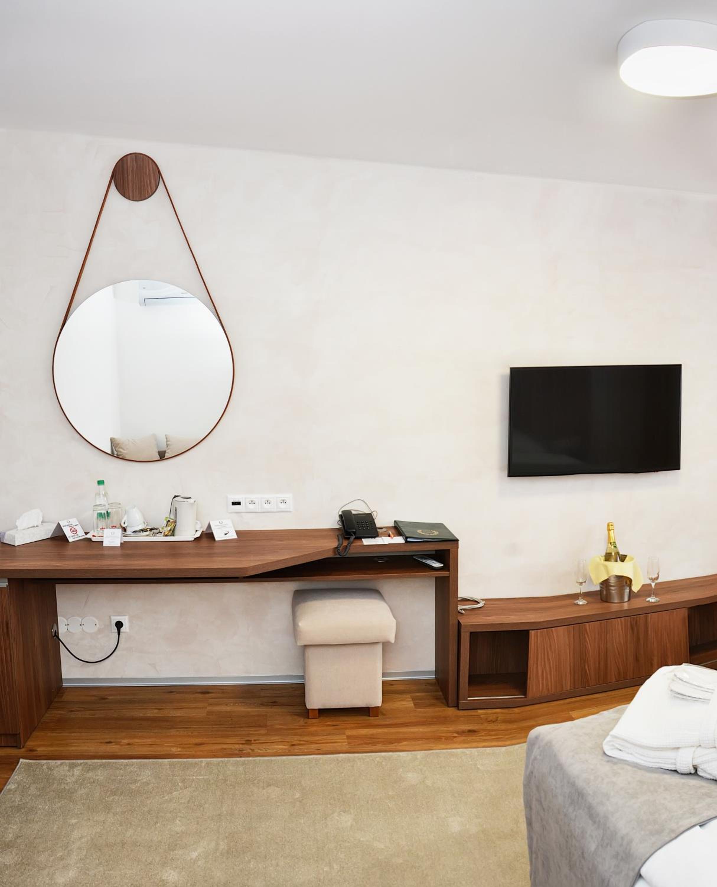 Hotel Victoria offers comfortable rooms equipped with modern amenities such as TV, minibar, and private bathroom. Suites come with additional living space and a balcony for stunning views of the surrounding mountains.