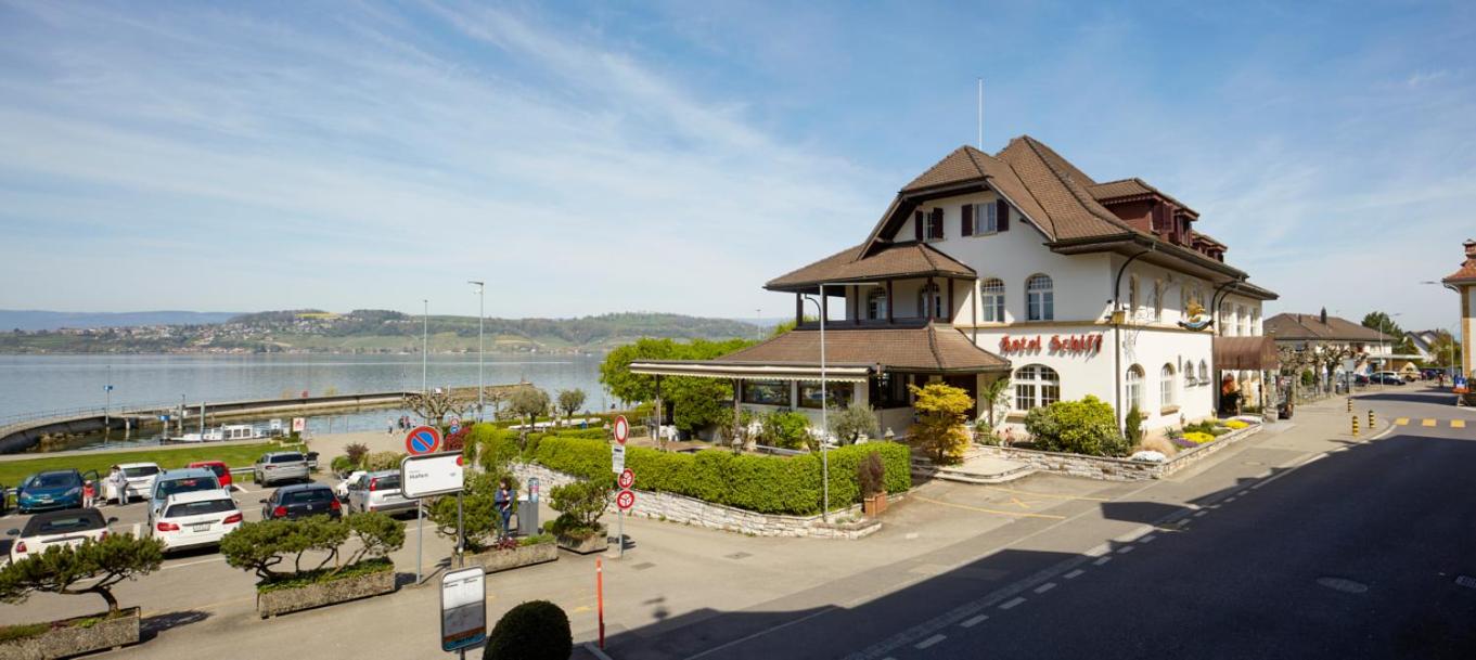 Enjoy breathtaking views from our terrace on the shores of Lake Murten and savor delicious meals at our garden restaurant.