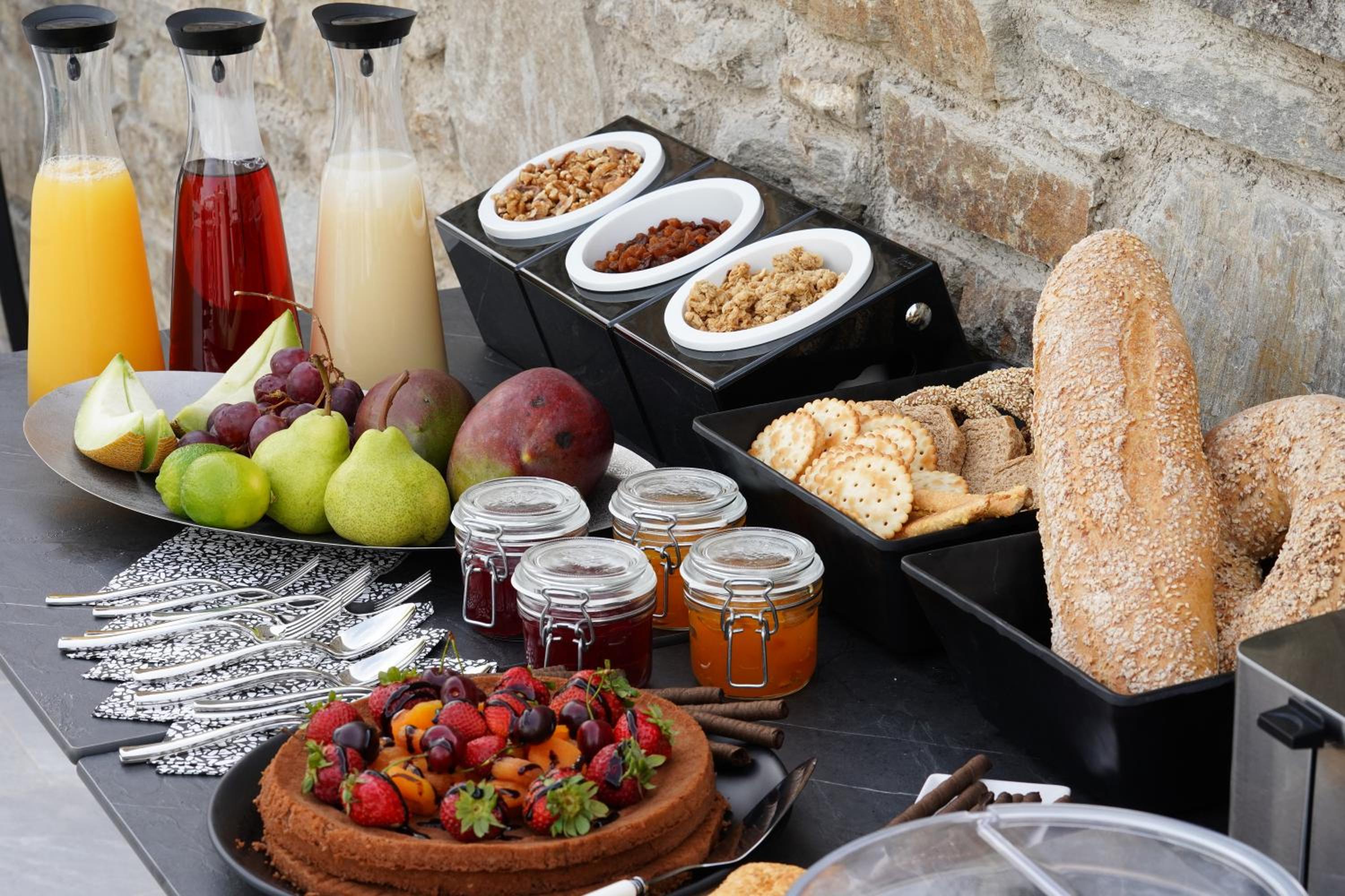 Breakfast around the pool was simple but excellent and the pool area is nice if the wind is up .