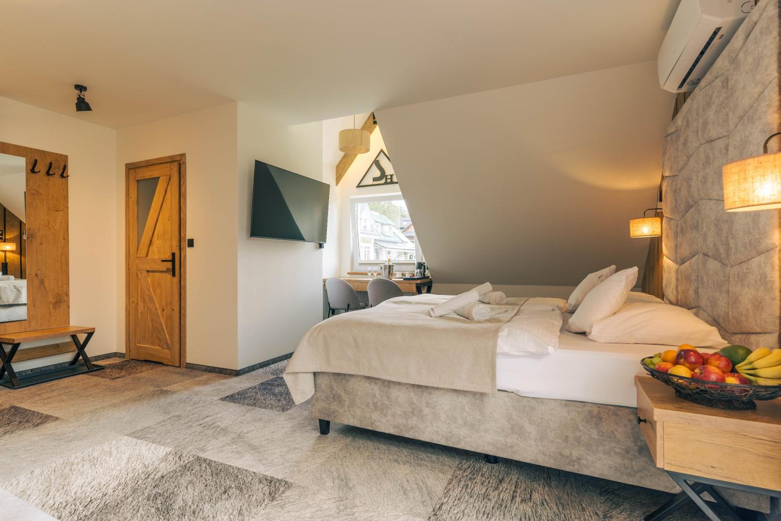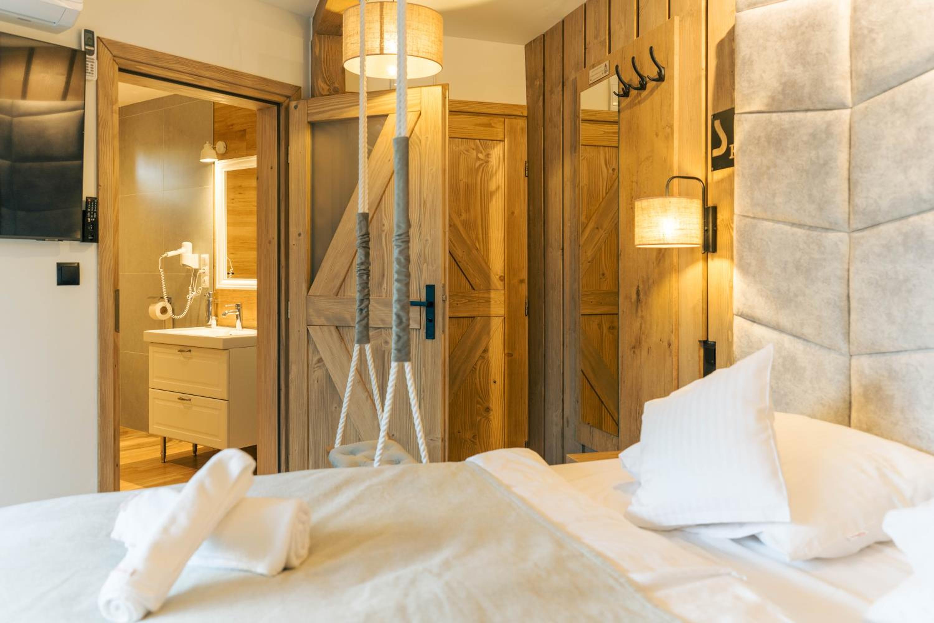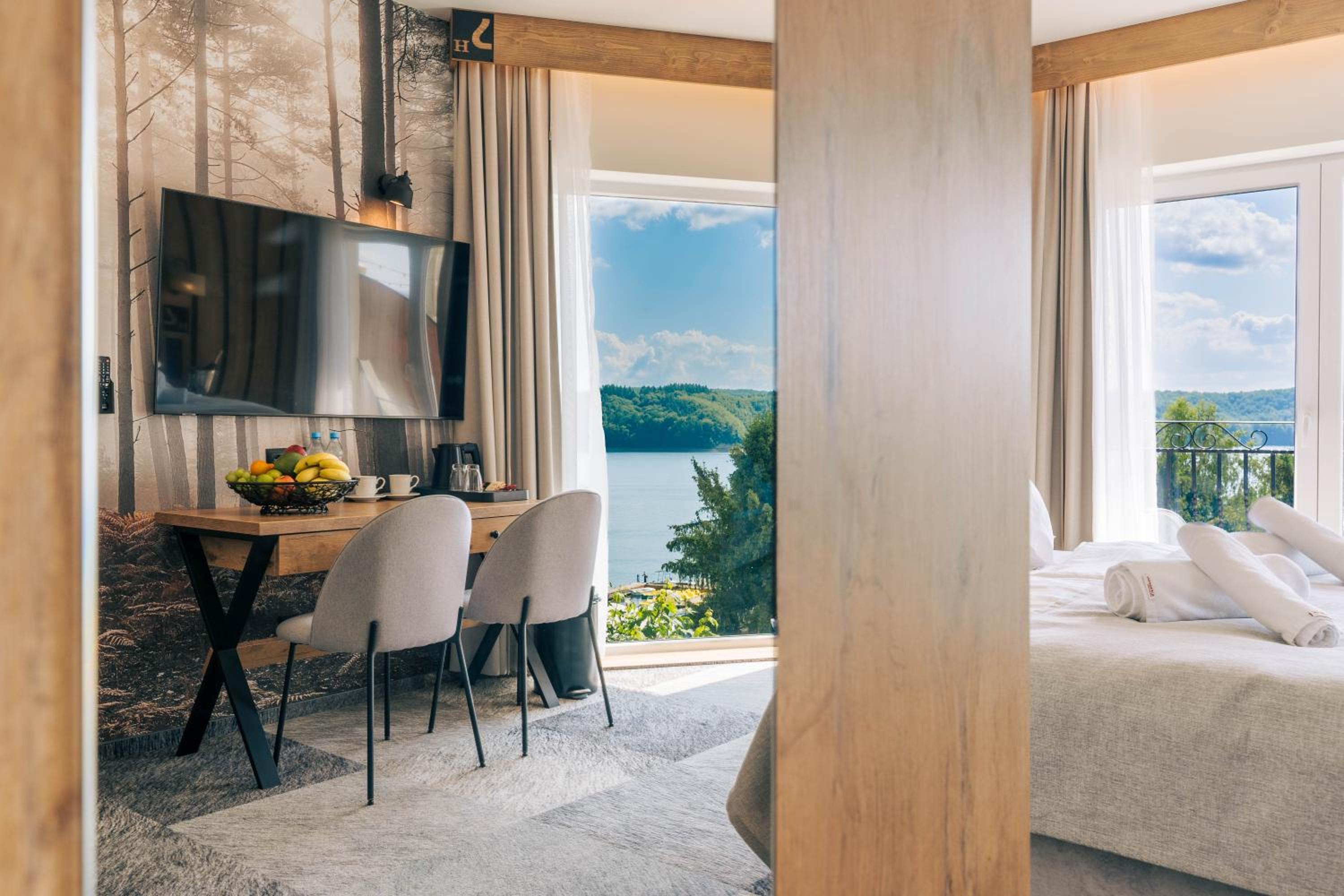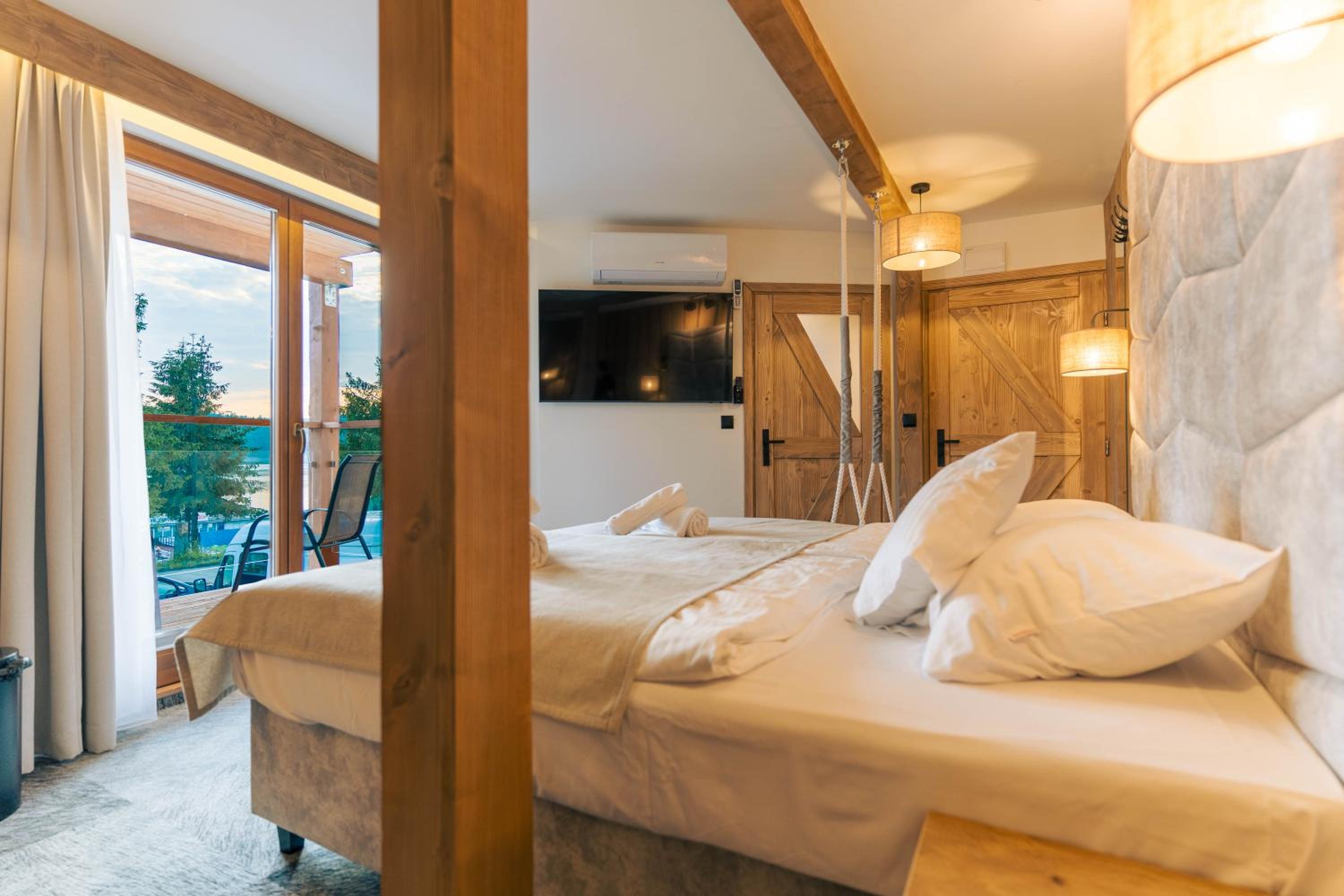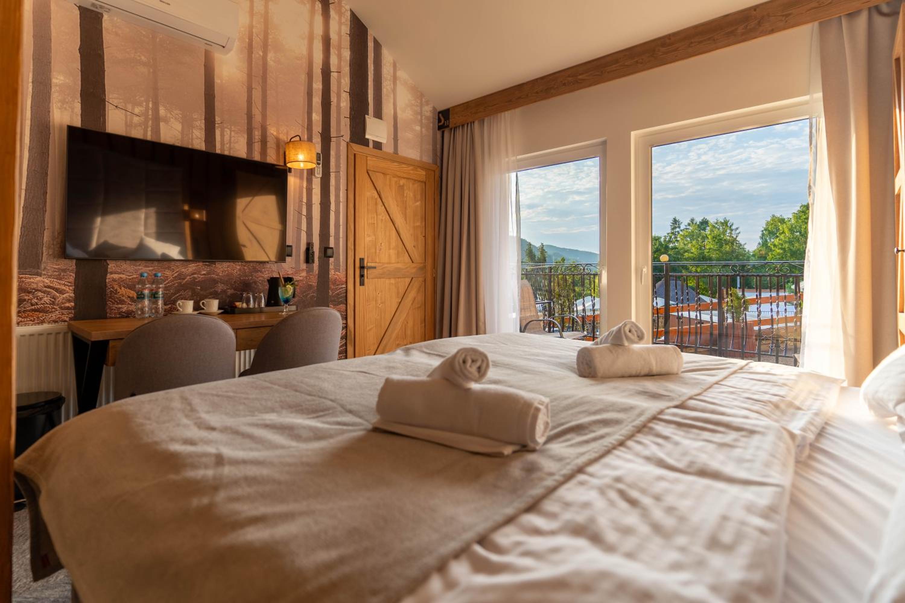 Sztygarka Hetmańska Resort Solina offers elegant rooms with modern amenities like flat-screen TVs, air conditioning, and private bathrooms. Some rooms even feature a balcony for stunning views of the surroundings.