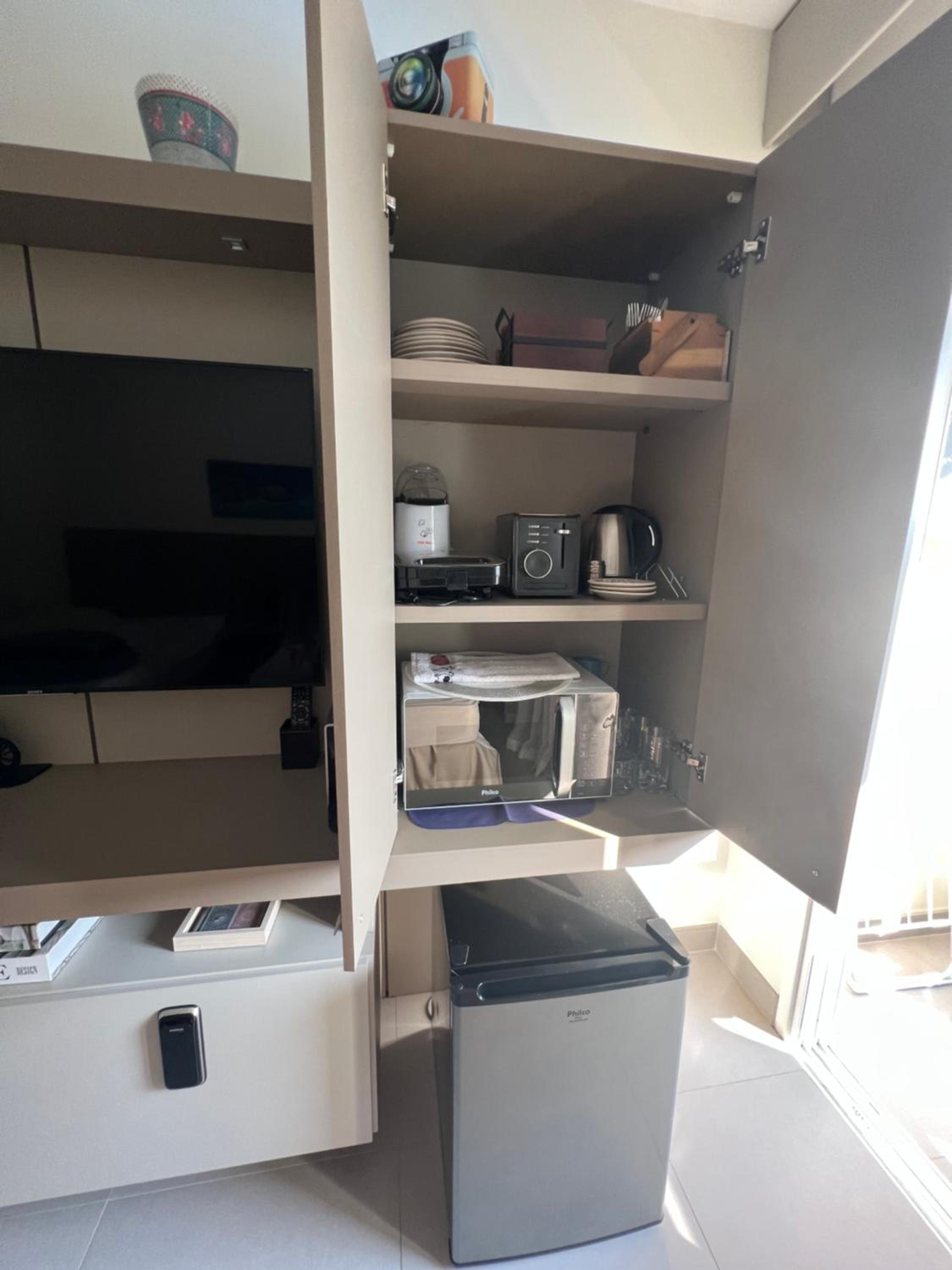 O apartamento é completo. Máquina de lavar, de secar, microondas, Airfryer… é muito confortável, tem uma vista muito bonita. E todas as dúvidas sempre respondidas rapidamente pela Andreia.