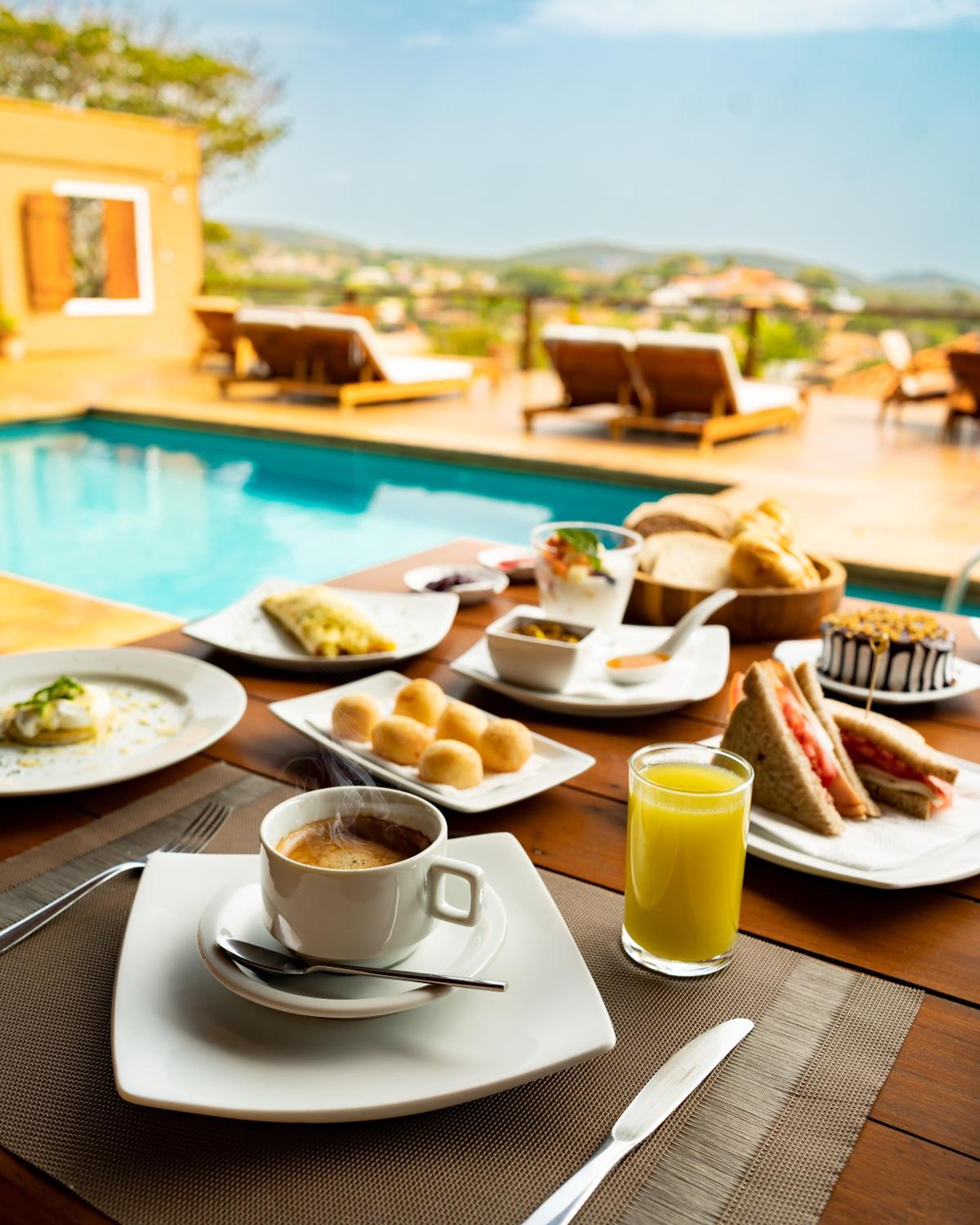 O café da manhã é excelente e farto.