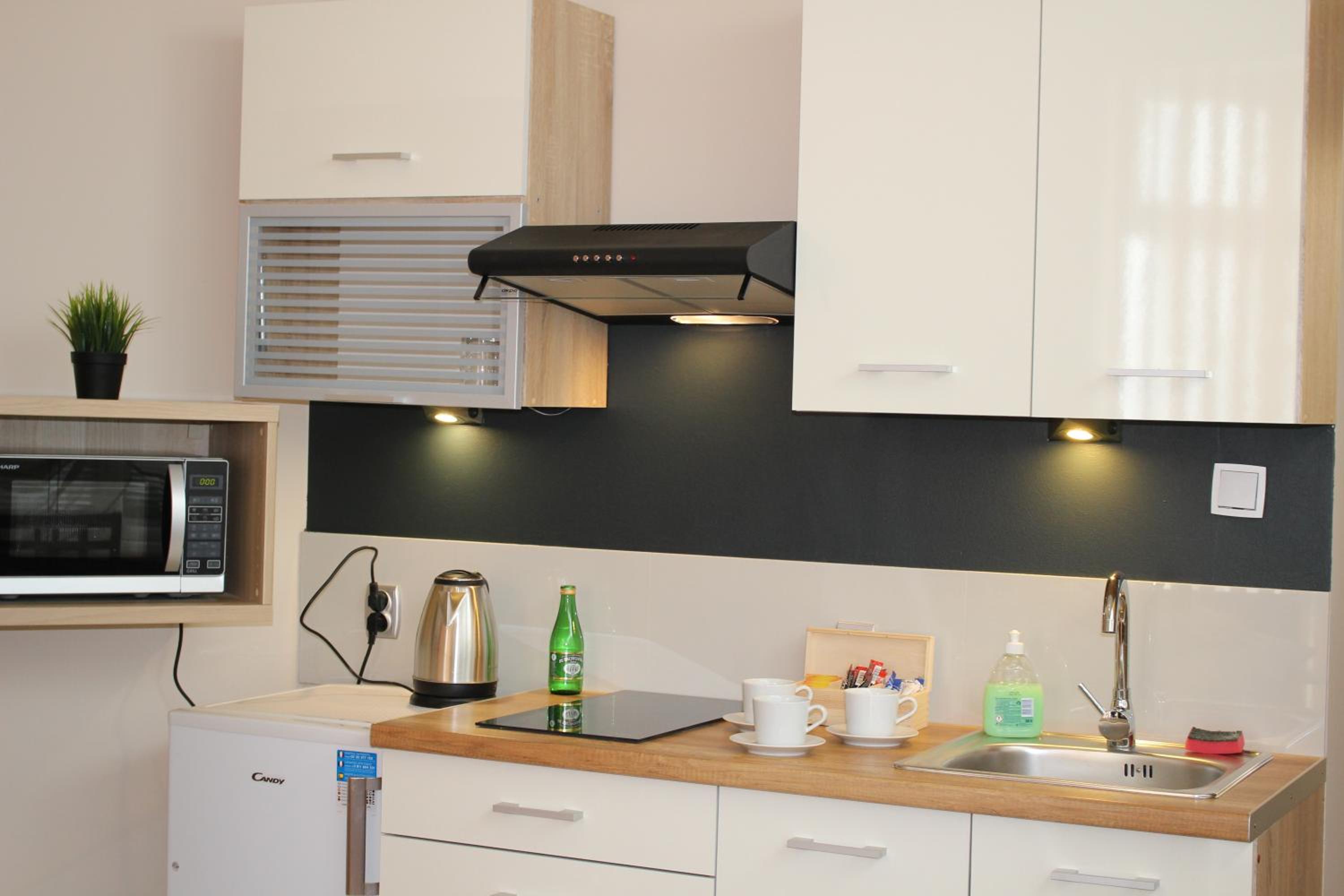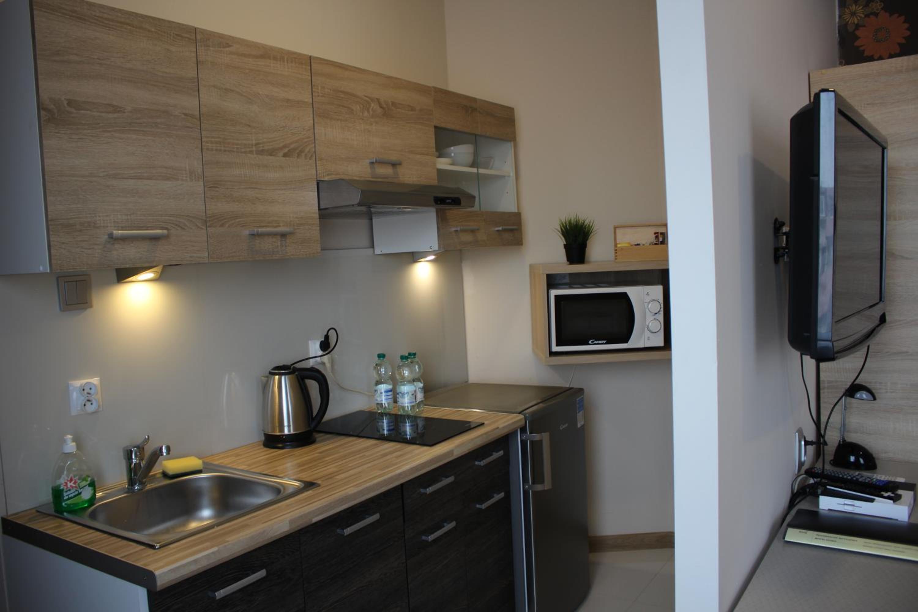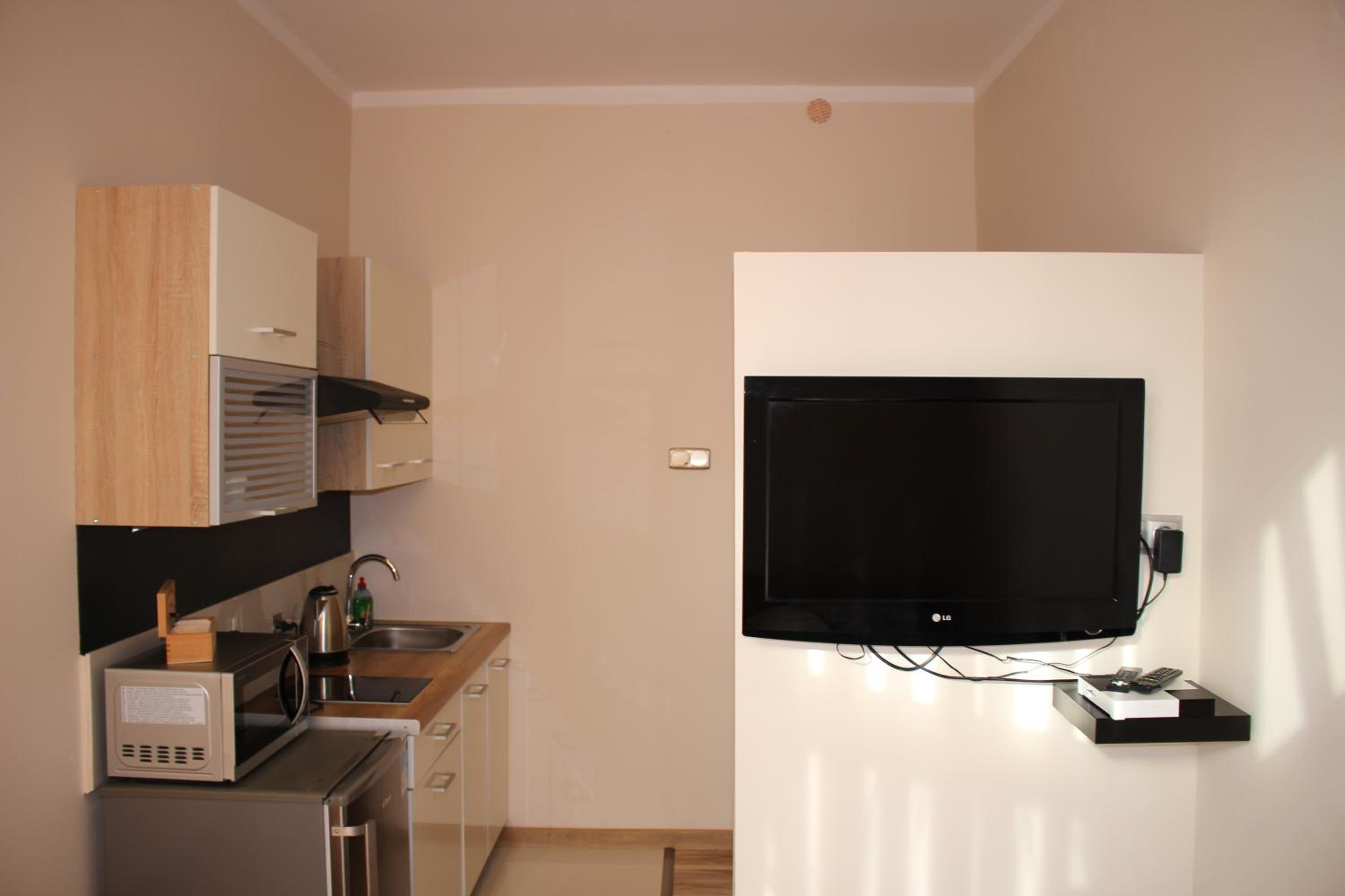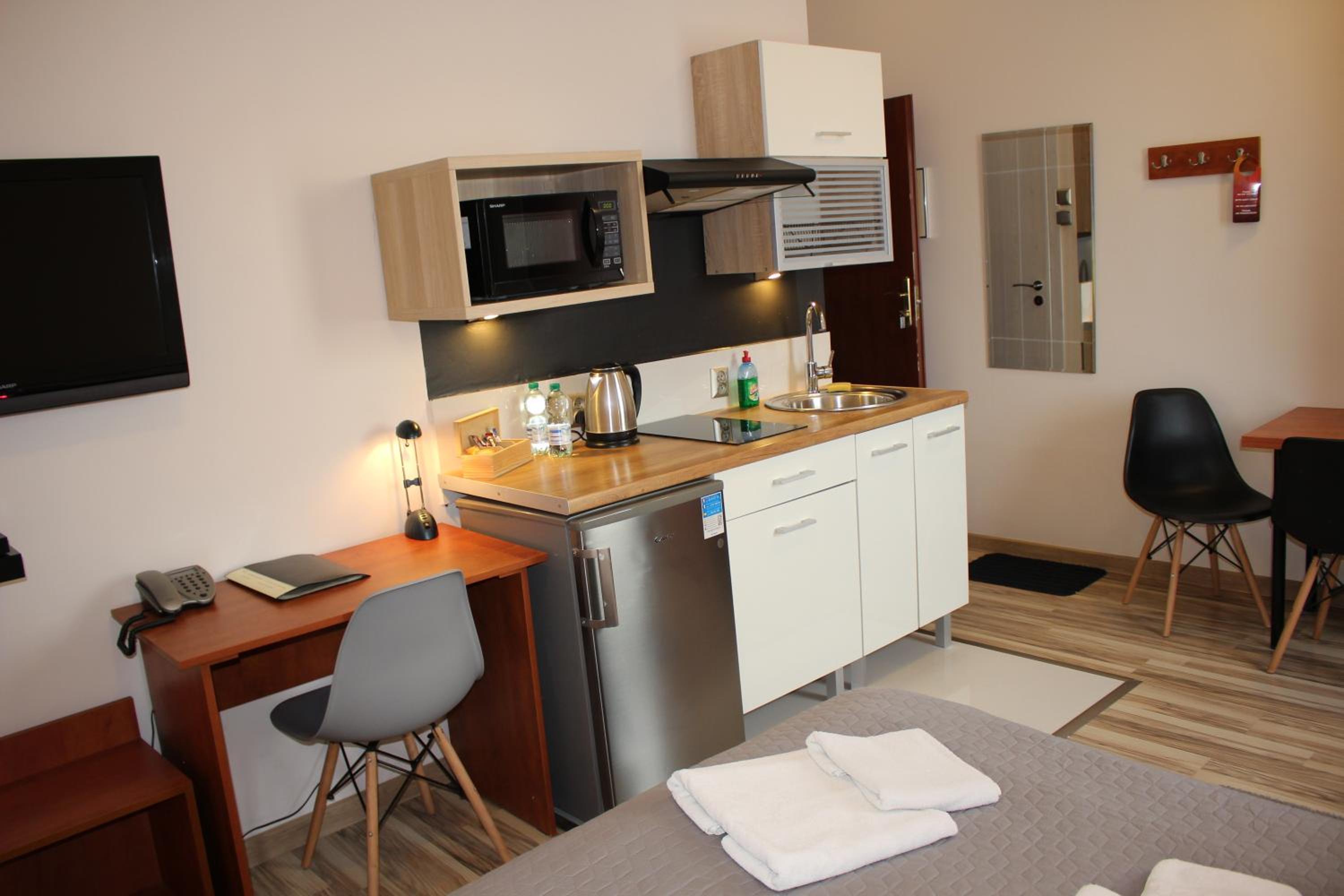 Experience the cozy micro-apartments at Hotel 1, equipped with free Wi-Fi, a 32” LCD TV, and a fully equipped kitchenette for a relaxing stay.