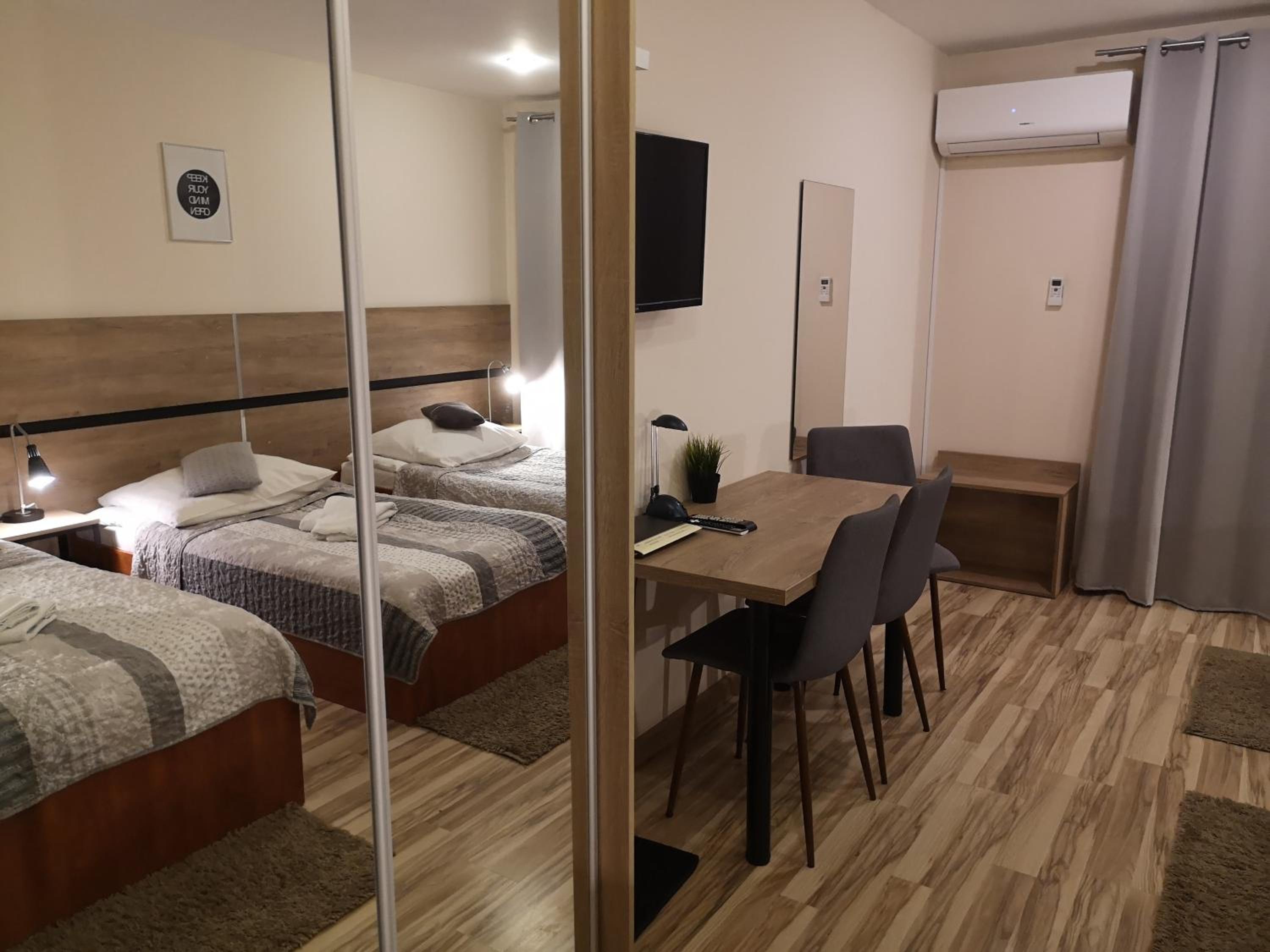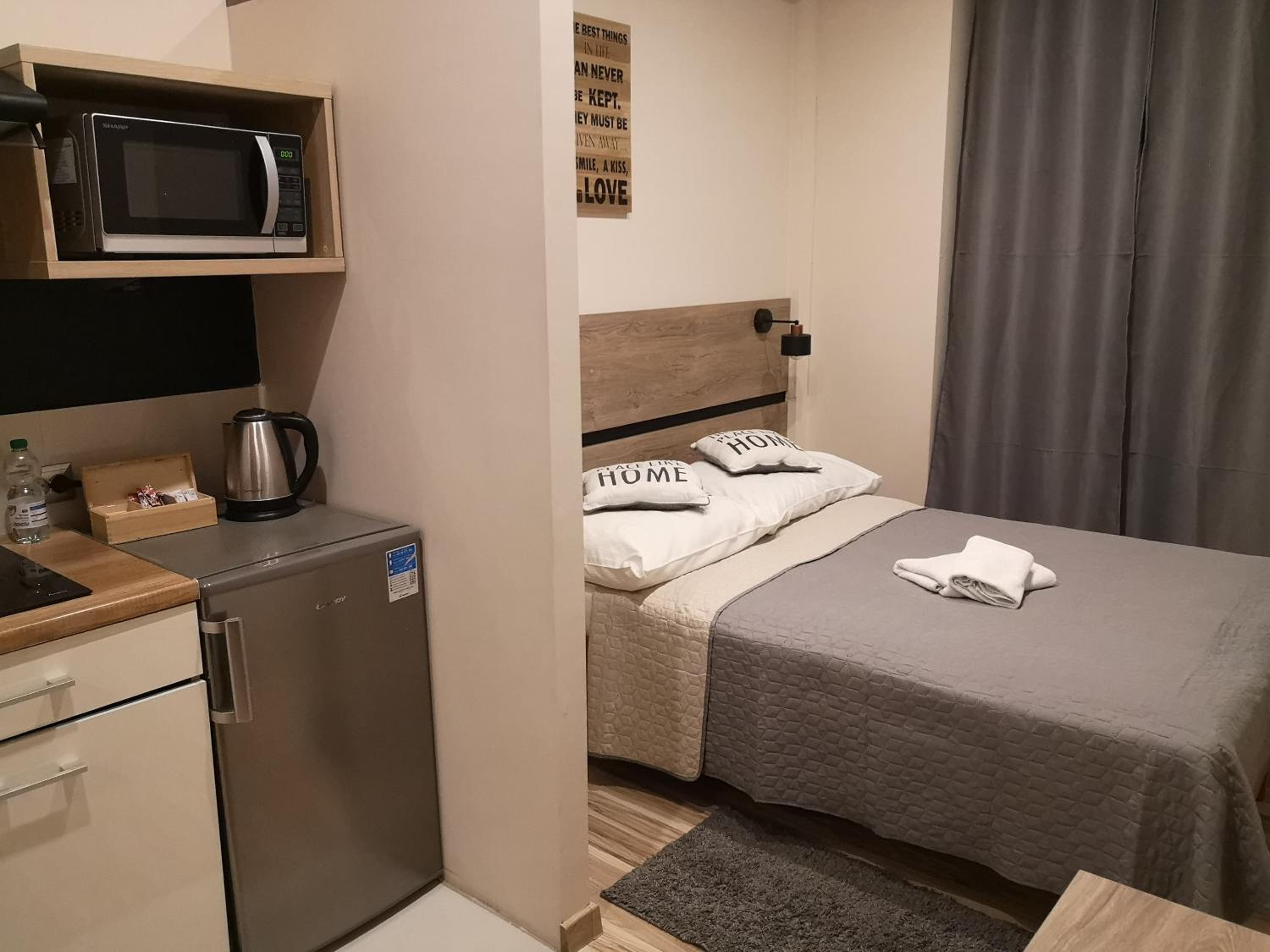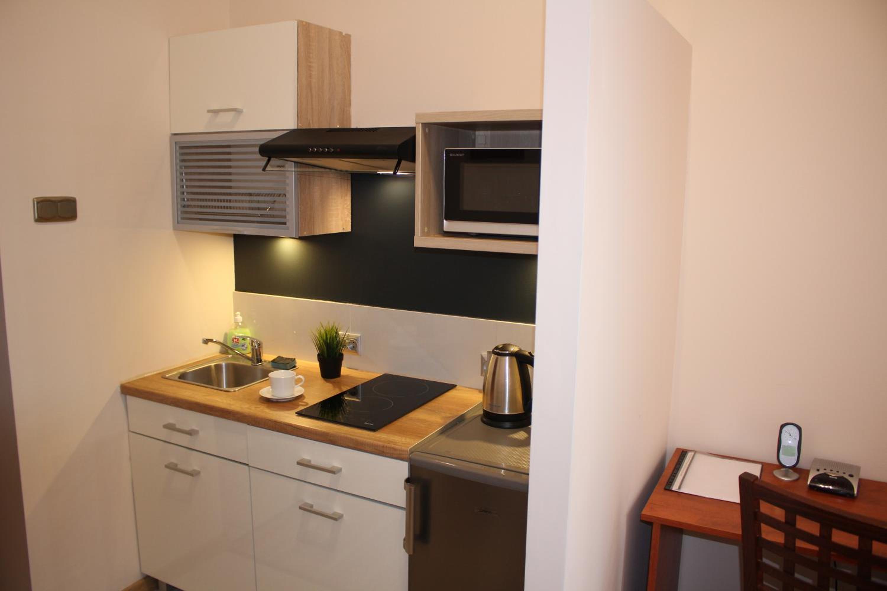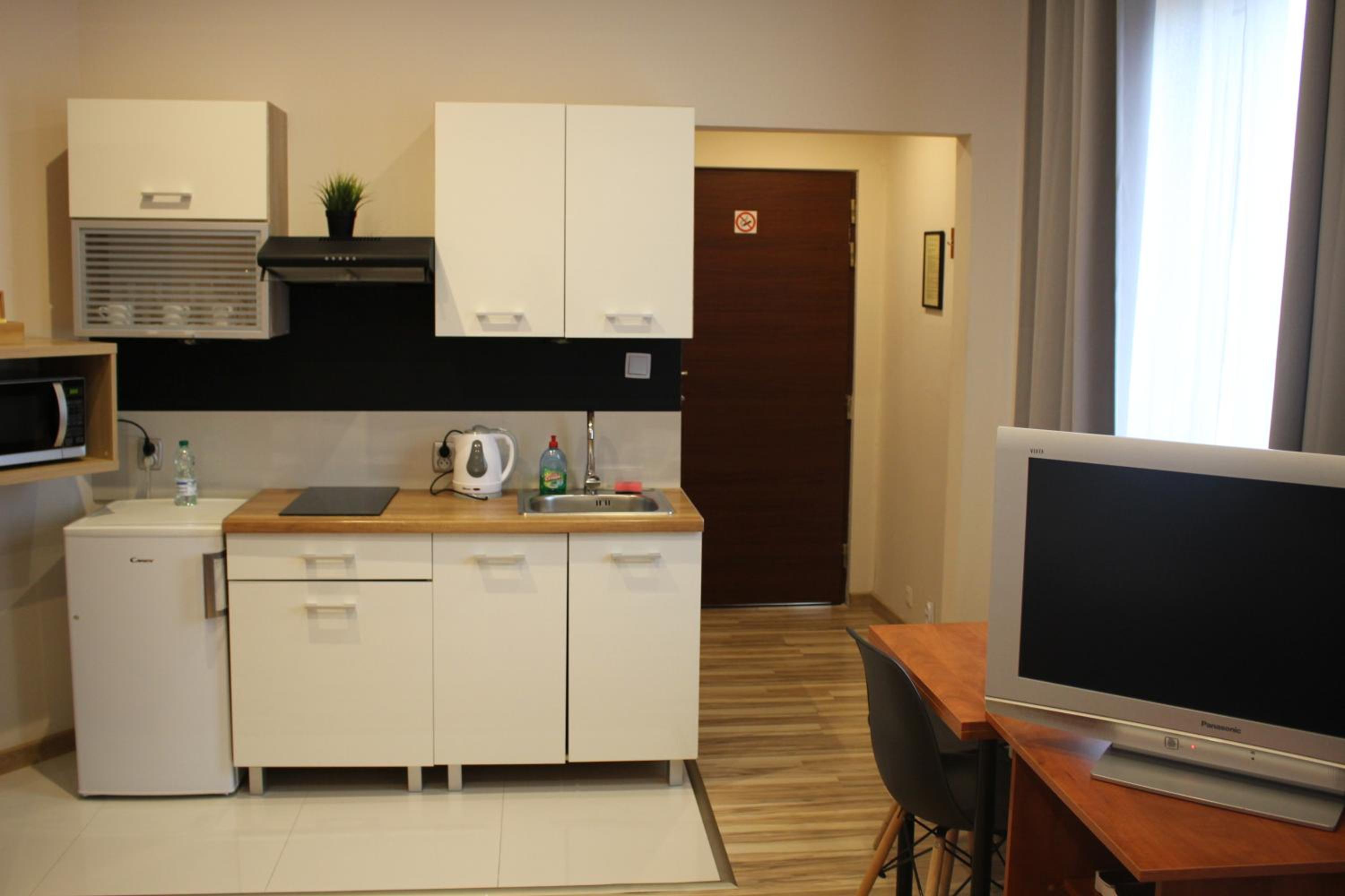 Experience the cozy micro-apartments at Hotel 1, equipped with free Wi-Fi, a 32” LCD TV, and a fully equipped kitchenette for a relaxing stay.