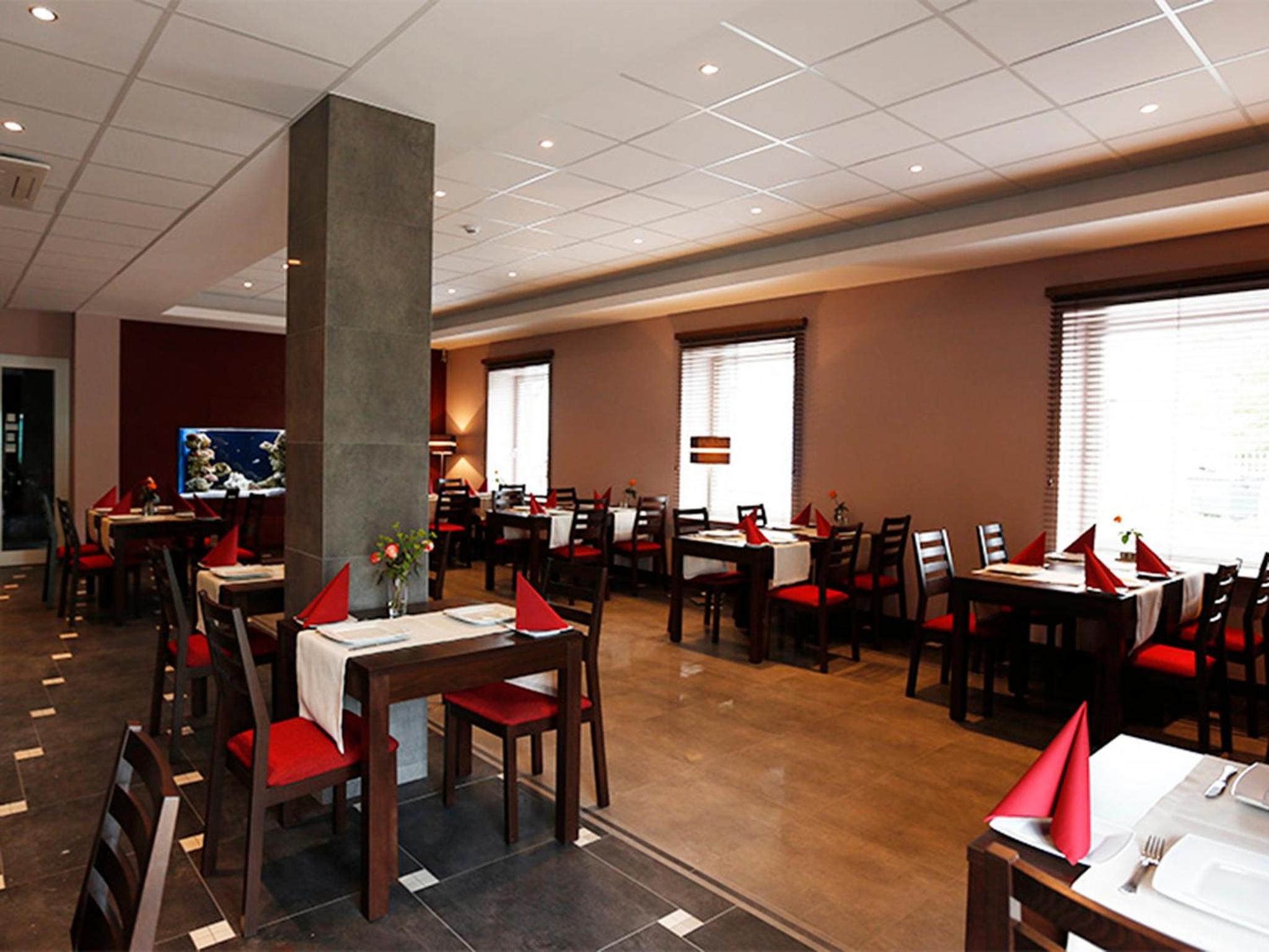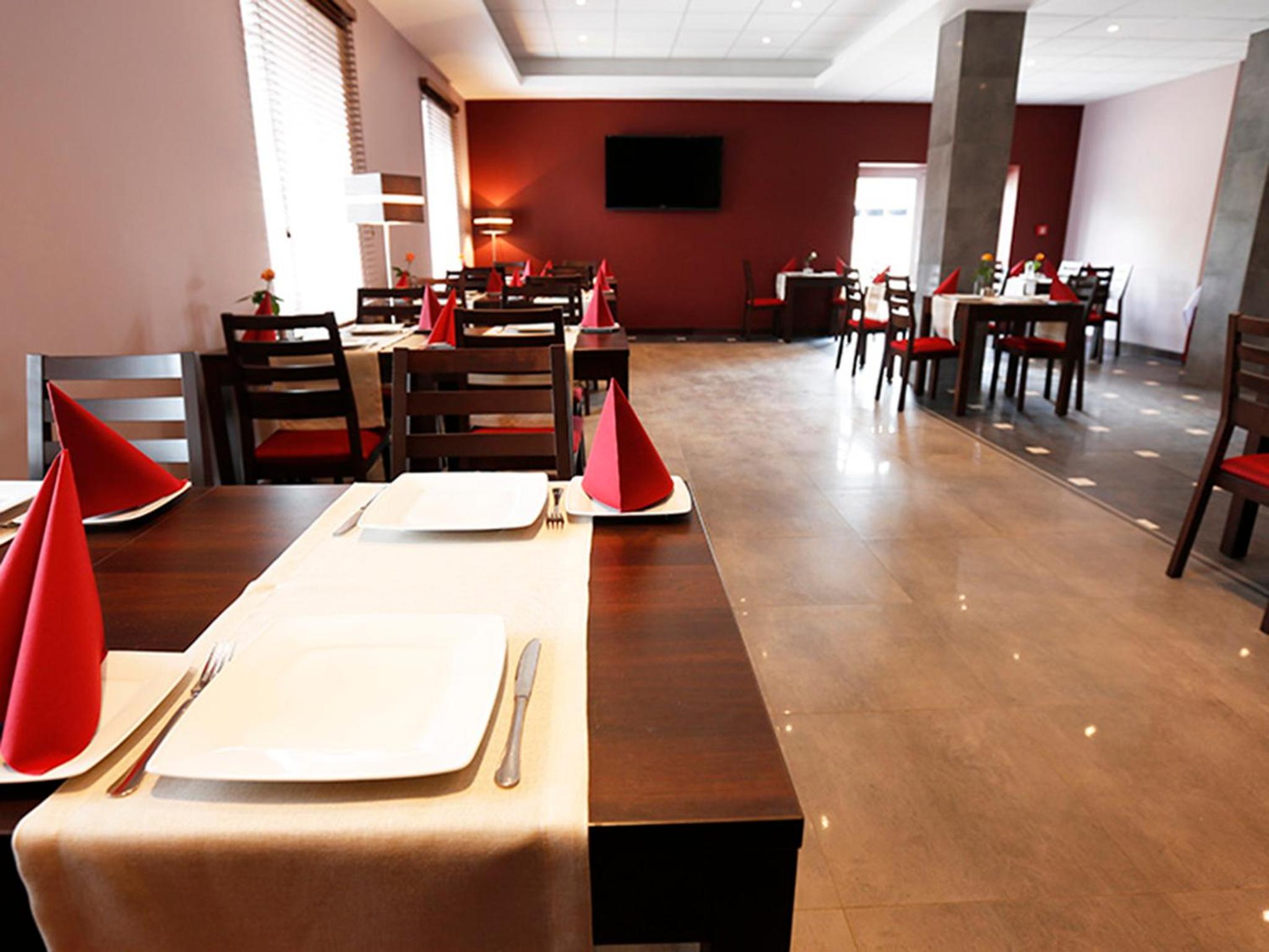 Bardzo dobre śniadanie, choć skromny wybór, tylko zwykły chleb, brak twarożku:-) Można zjeść obiad, w bardzo atrakcyjnych cenach, pyszny placek po węgiersku. Bardzo miła i kompetentna obsługa i w restauracji i w recepcji.