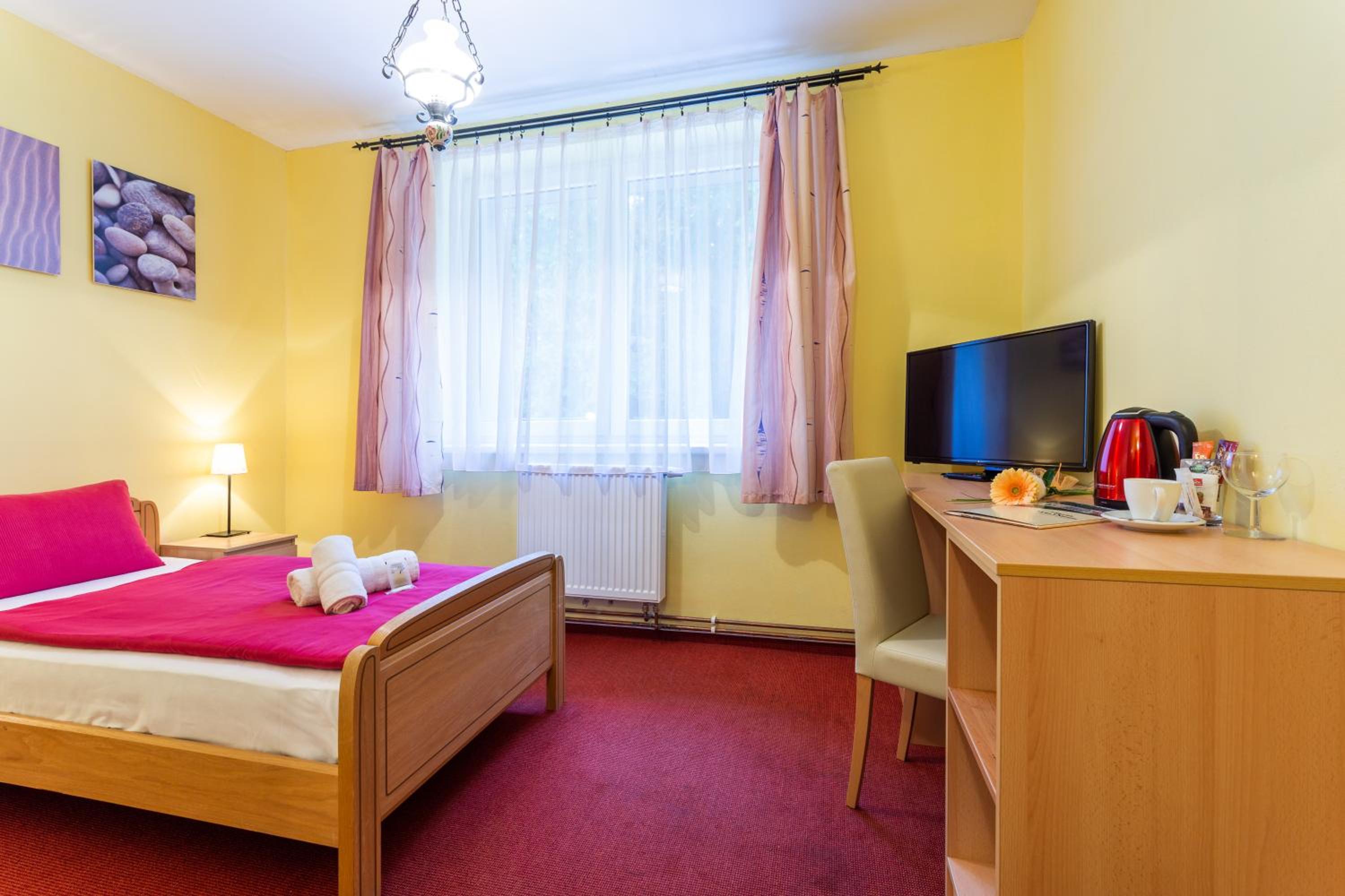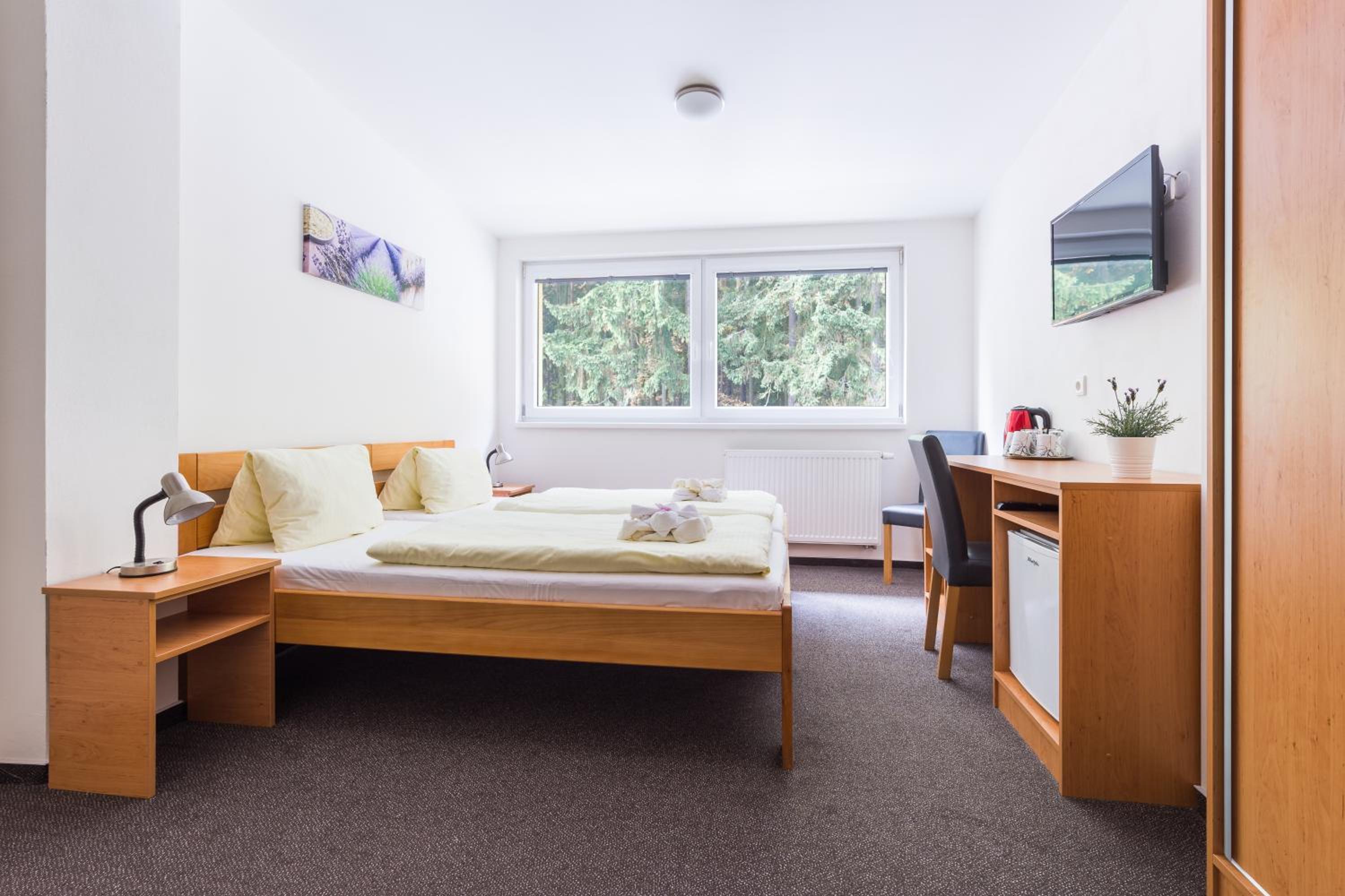 Vybavení pokoje je poměrně obyčejné a neodpovídá ceně. V porovnání s jinými ubytováními, které jsem měla v Česku v podobném termínu, je poměr cena/výkon nižší. A to jsem přešla celé Česko ze severu na jih.
