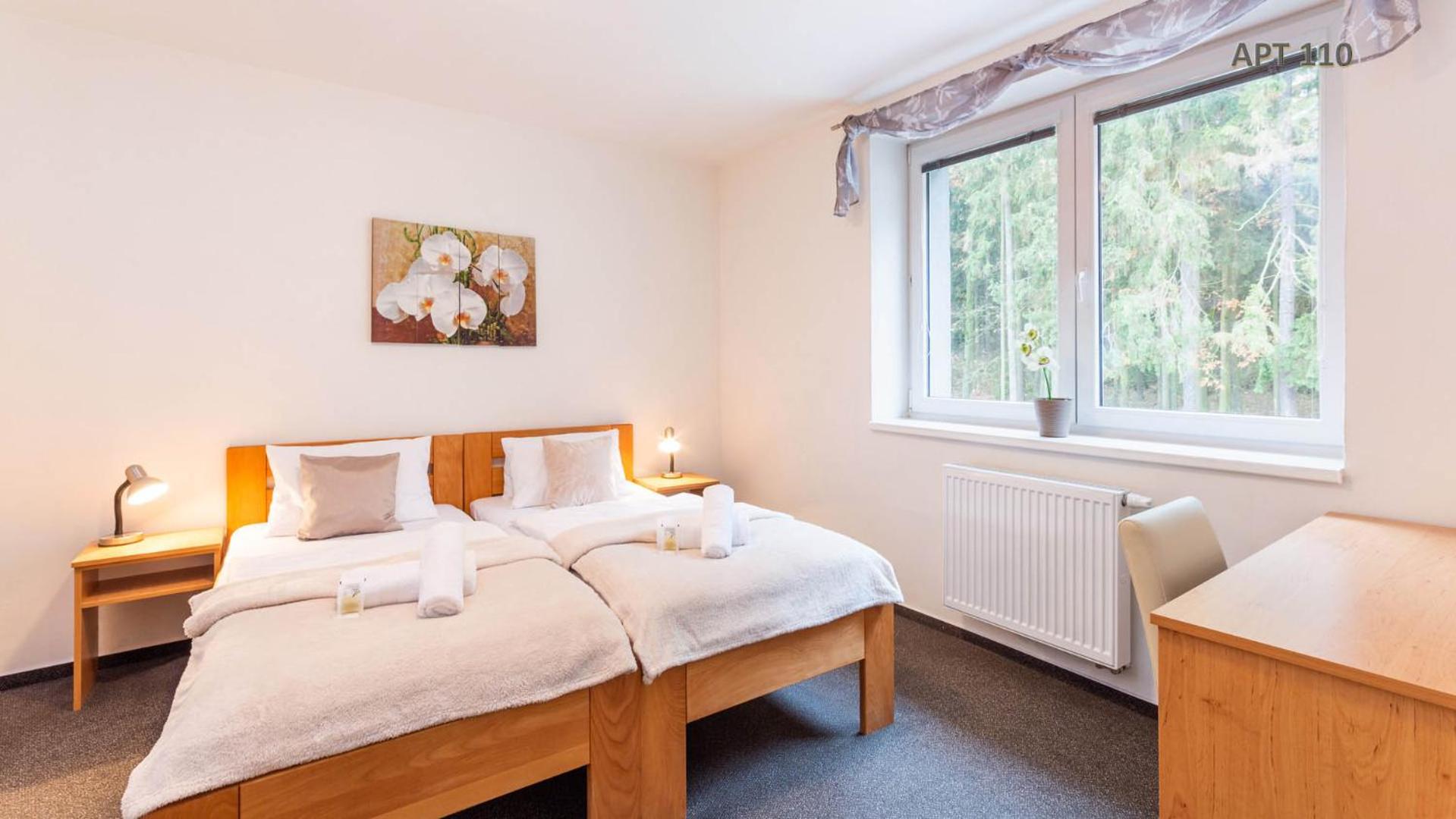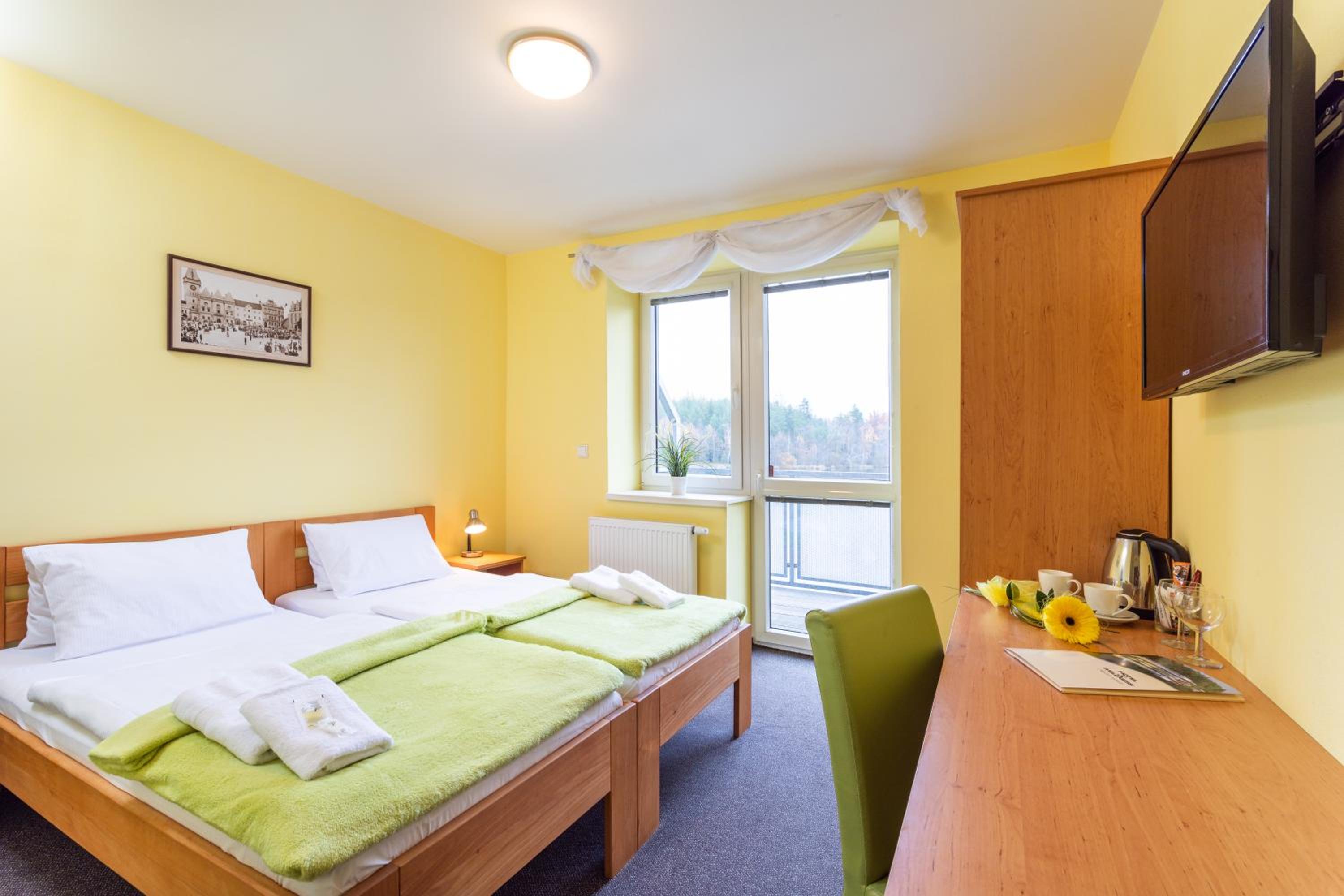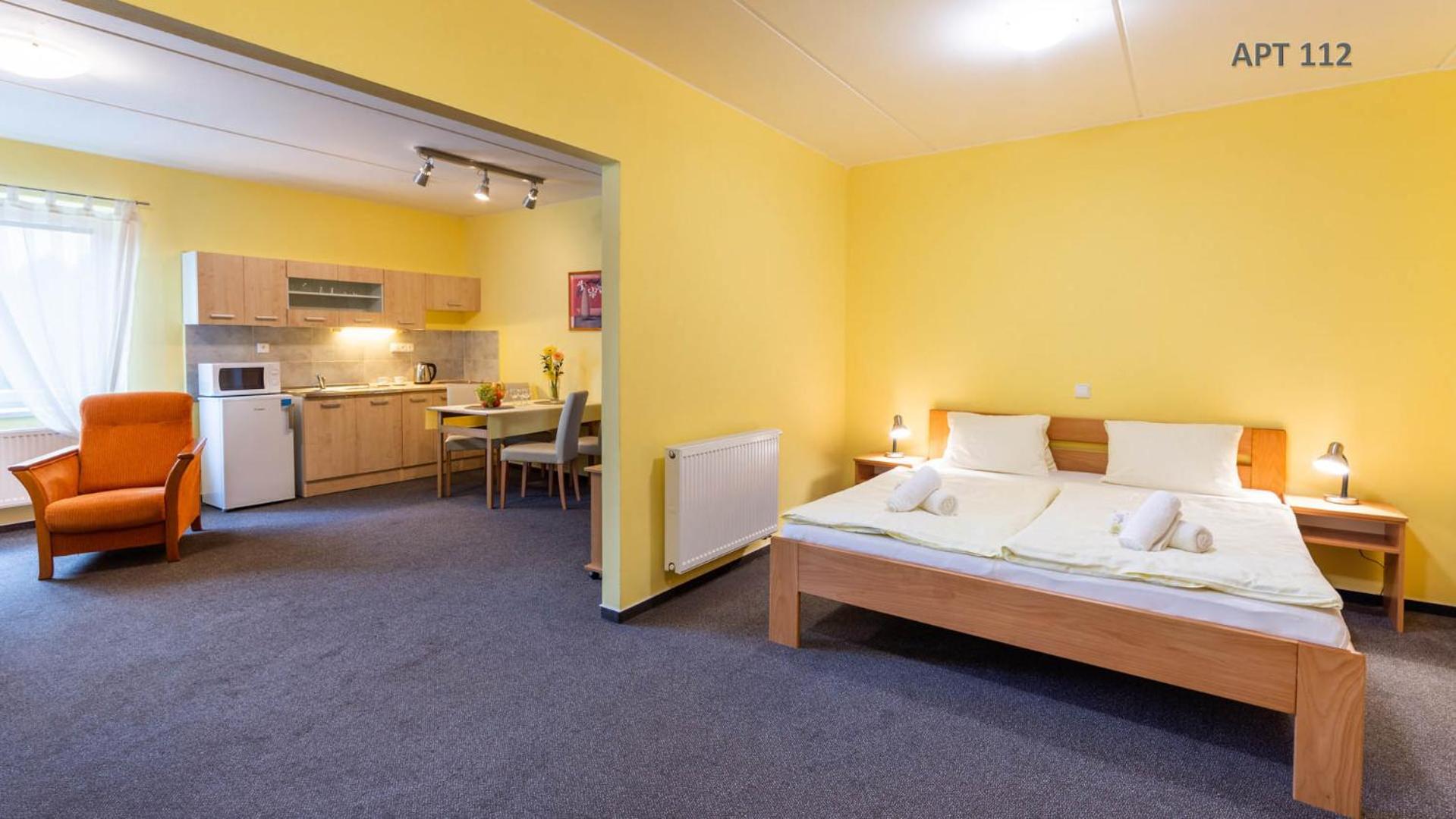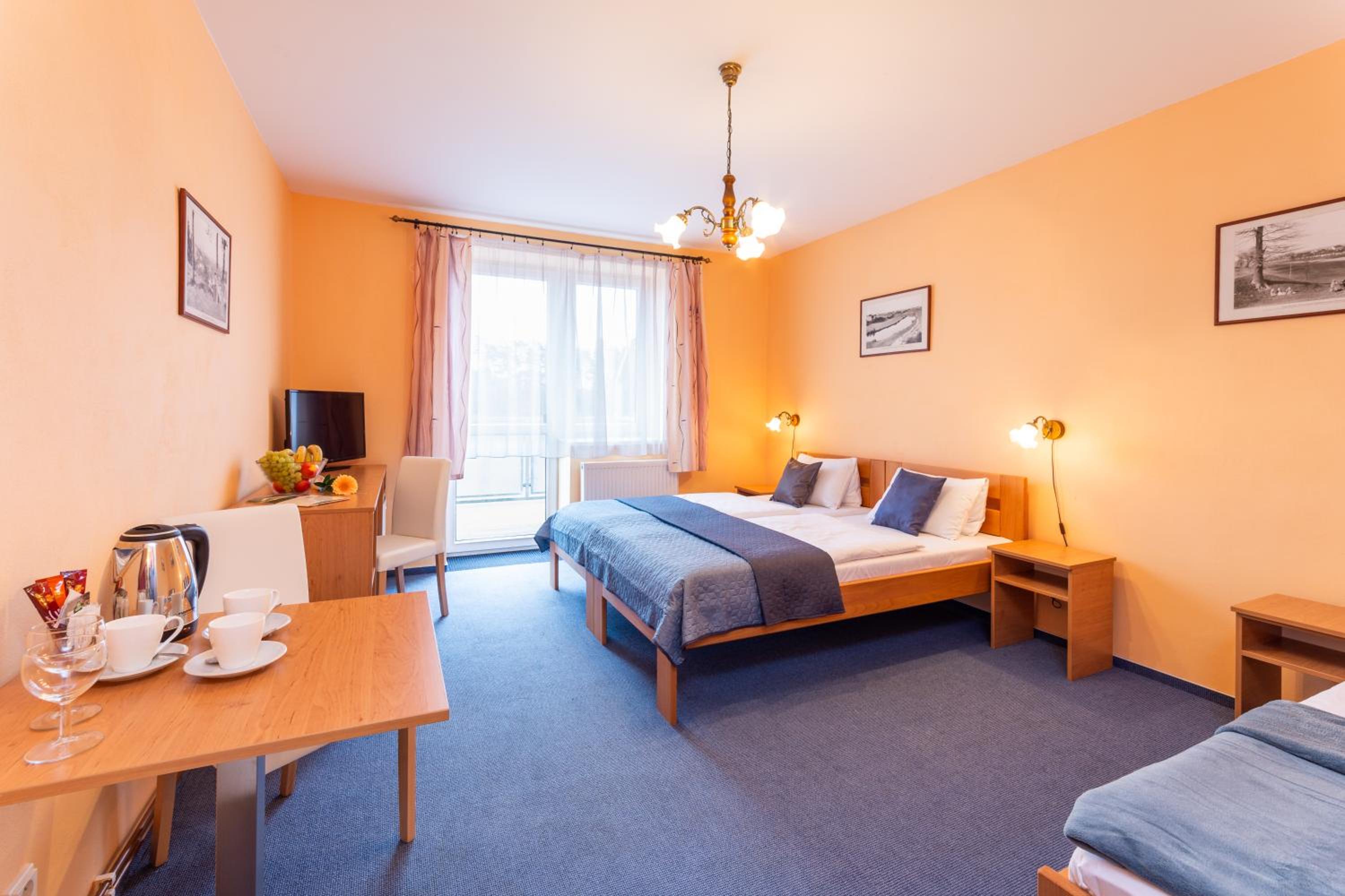 Hotel&Wellness Knížecí rybník offers elegantly furnished guest rooms with modern amenities. Family apartments feature fully equipped kitchens, perfect for longer stays. Enjoy the convenience of a fridge in every room and complimentary coffee and tea for a cozy stay.