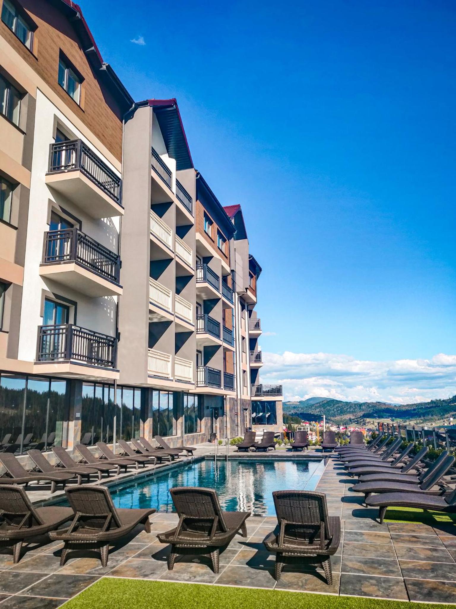 Чудовий готель з гарними краєвидами з номерів. Є басейн з підігрівом на вулиці і джакузі. Басейн з джакузі у приміщені, сауна. Басейн на даху, ігрова дитяча. Смачна кухня.