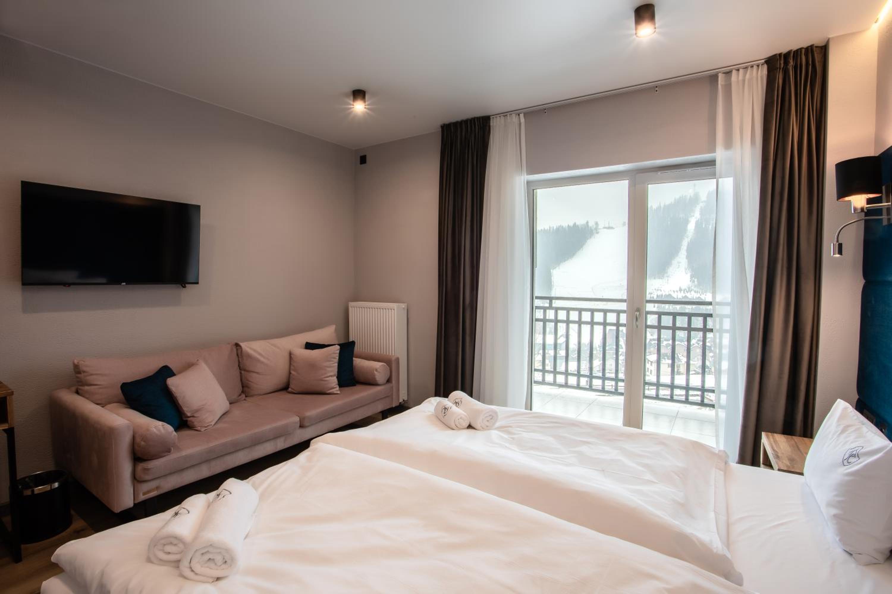 Unwind with a game of table tennis or relax in the sauna after a day of exploring Bukovel. The hotel offers a range of activities for guests to enjoy during their stay.