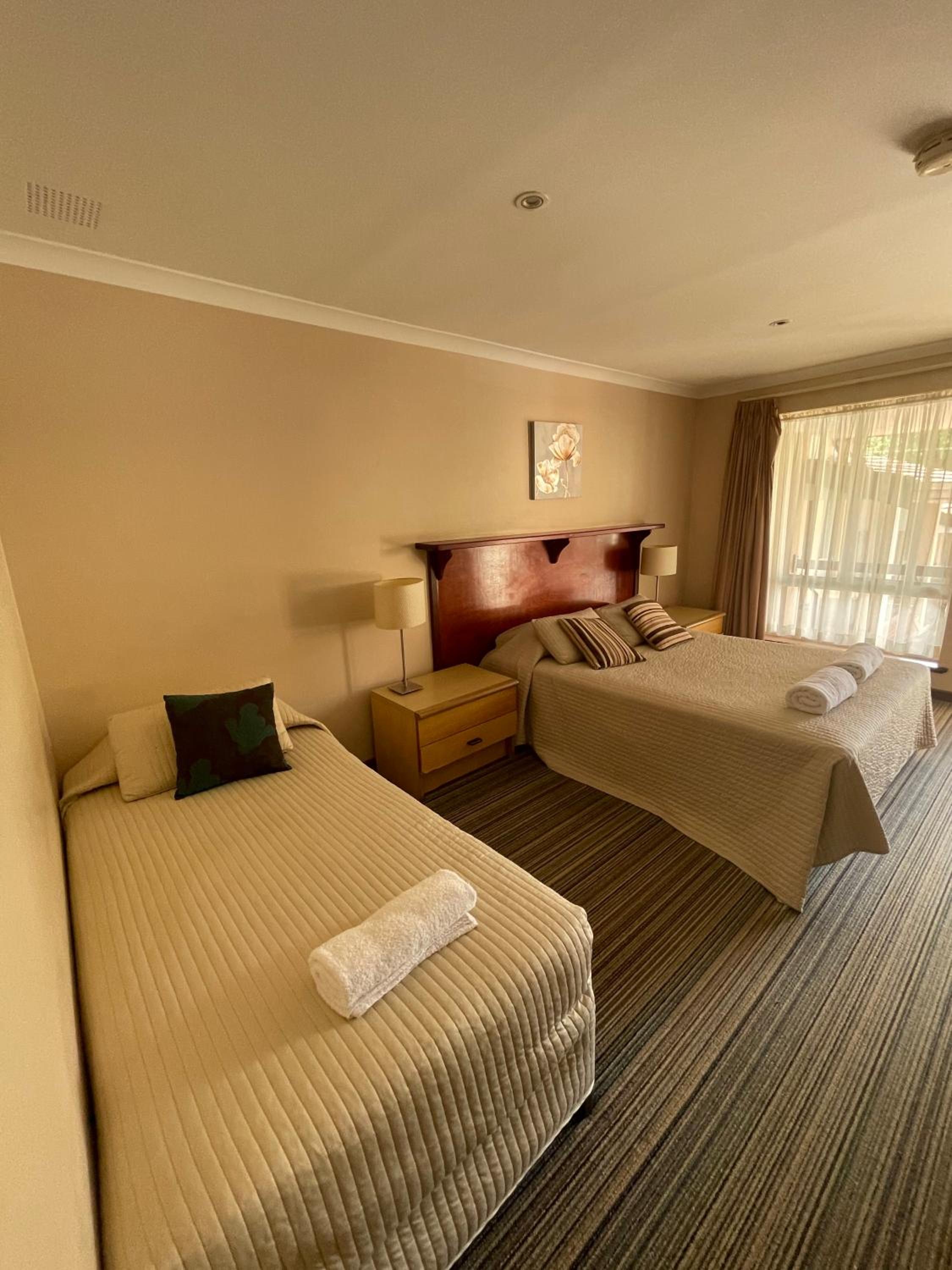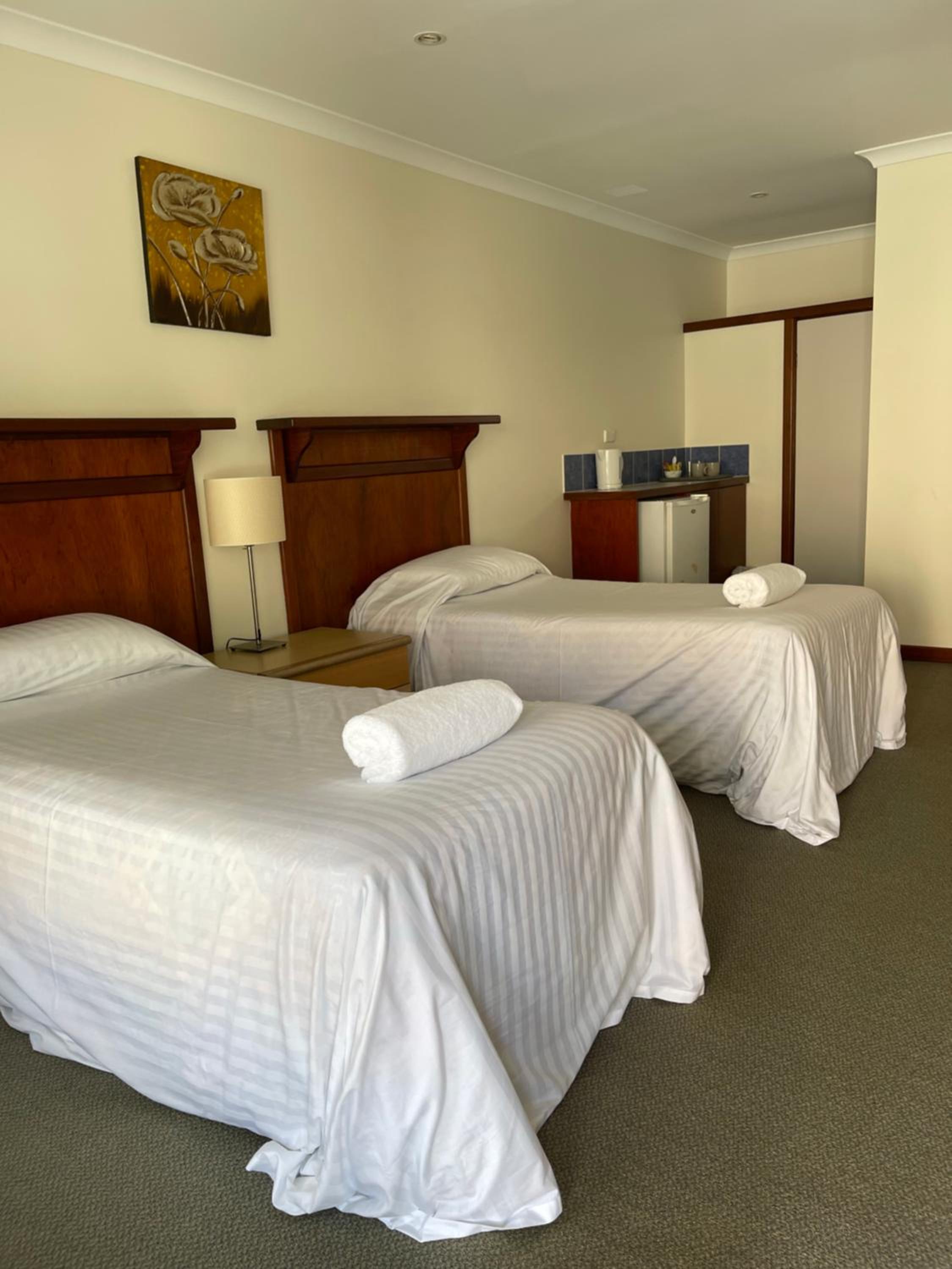 Denmark Hotel offers a luxurious stay in Denmark with spacious family rooms. Each room is equipped with modern amenities including a flat-screen TV, a private bathroom, and a fridge for your convenience.