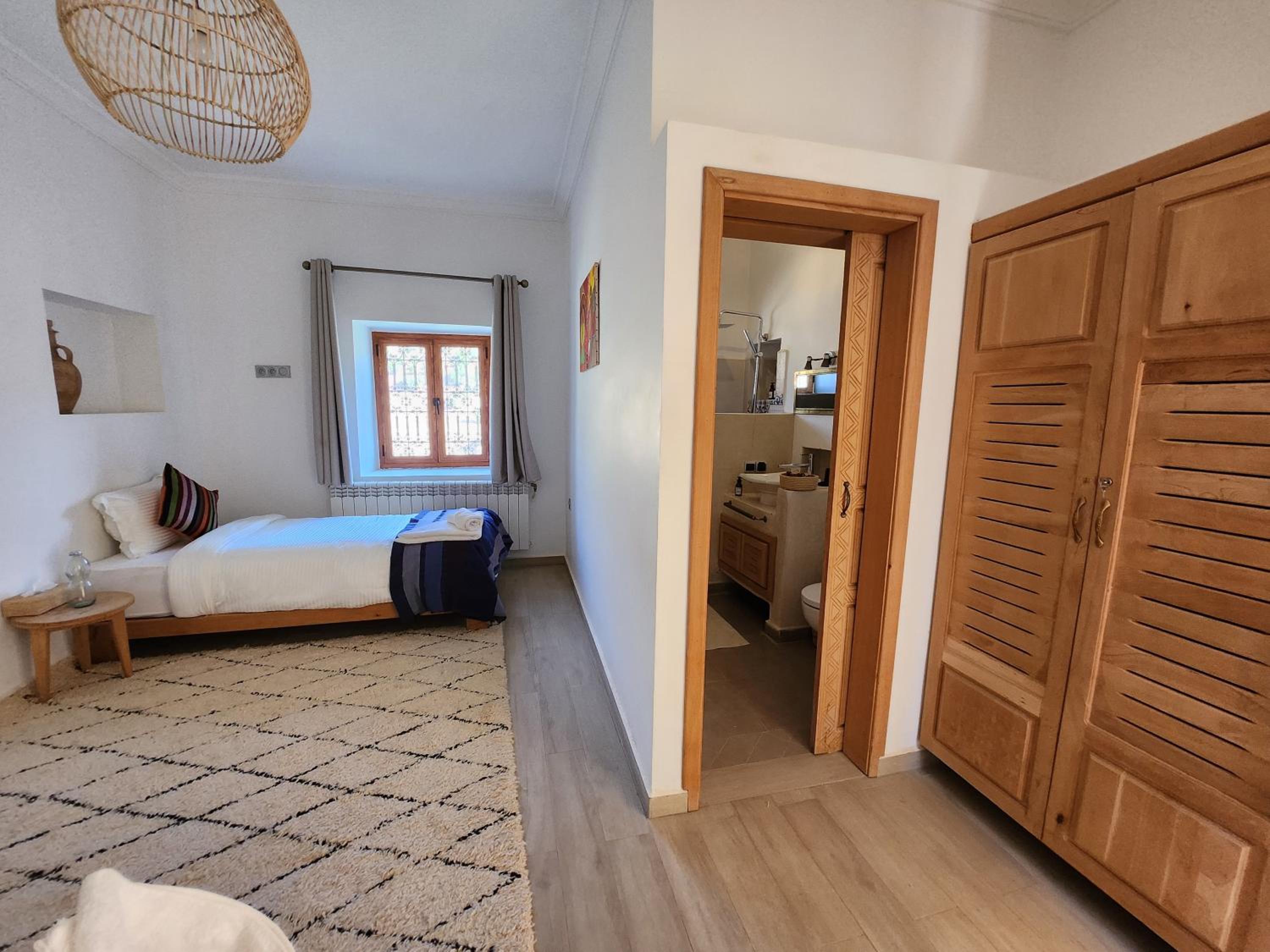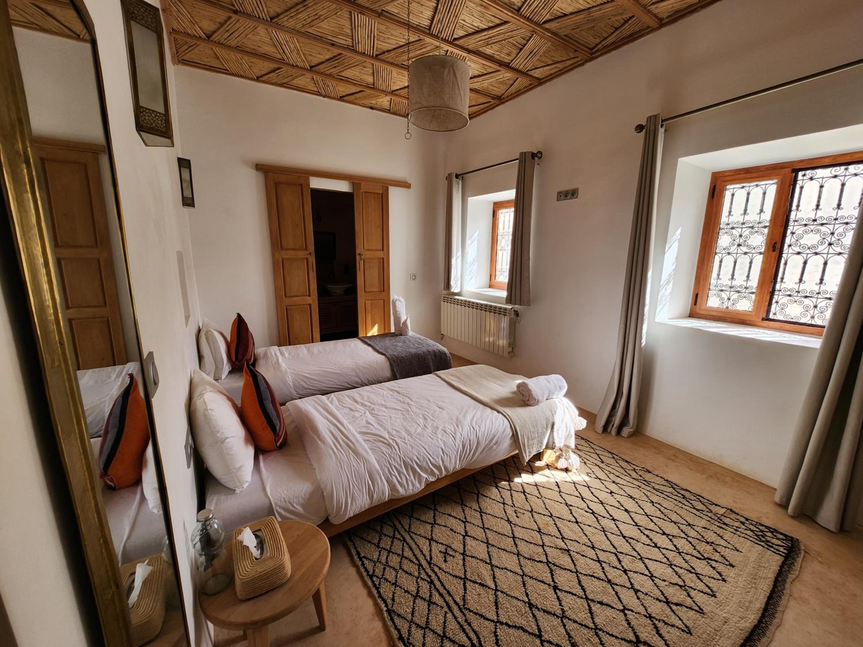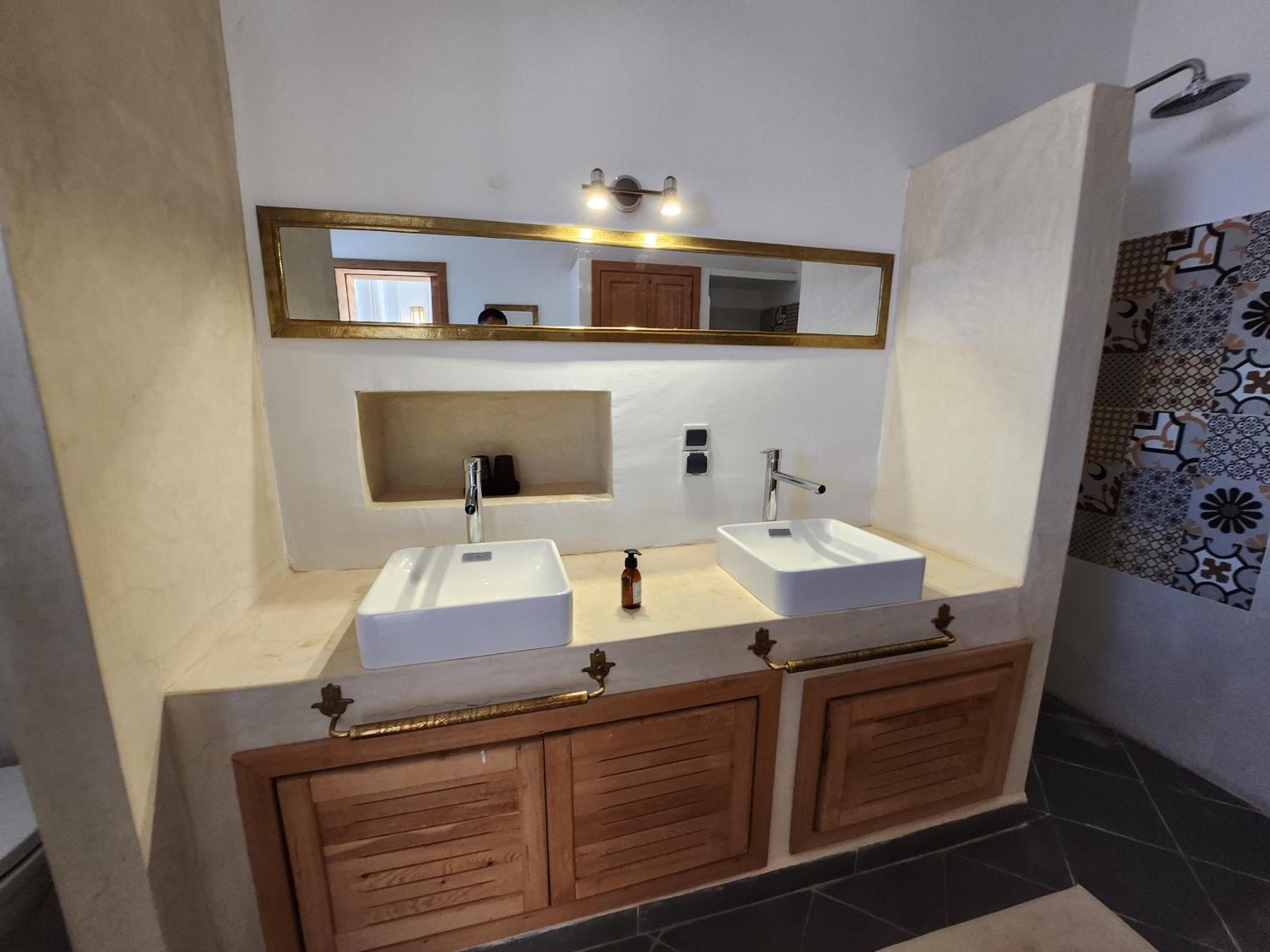 The place is just one big surprise. It looks like just another mud wall - go through the gate and you have style, space and luxury. Our hosts were incredible. Attending to our requests with a smile and a professional "no problem" attitude. This place embodies our experience in Morocco. When you are convinced that this cannot not be the place, press on because the surprise that awaits you will blow your mind.