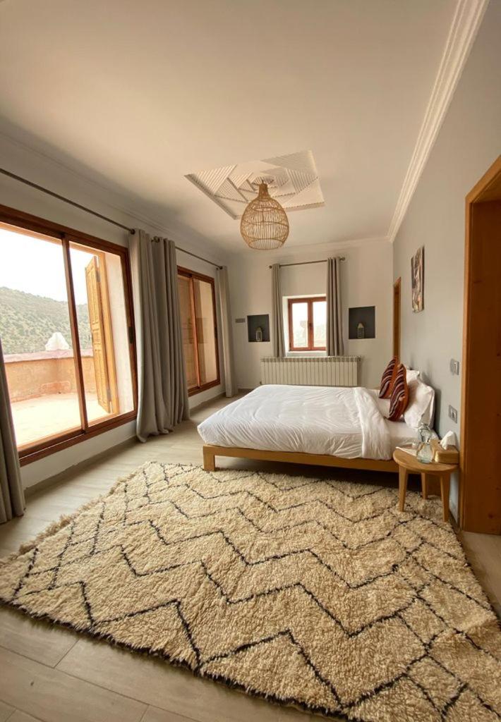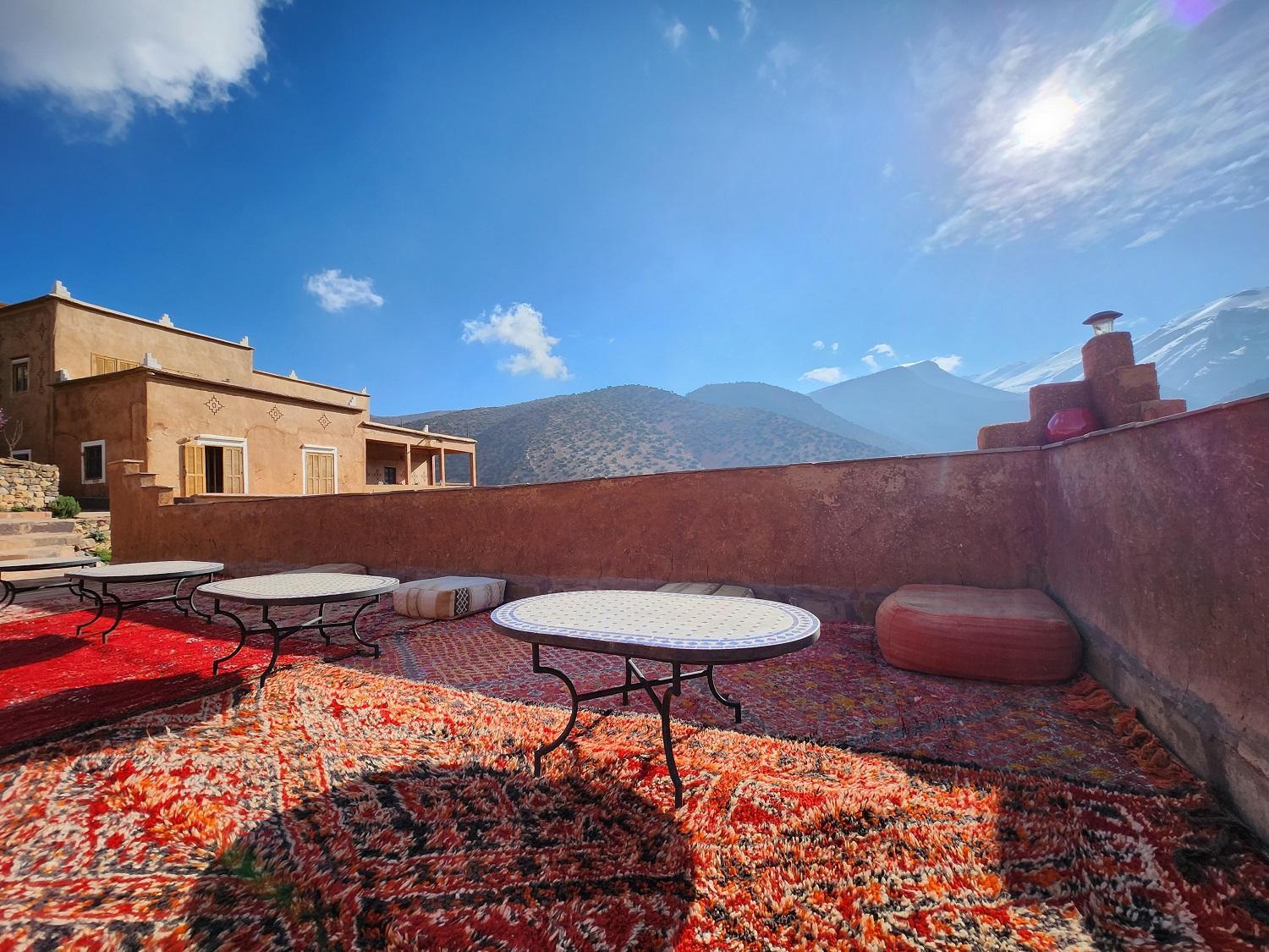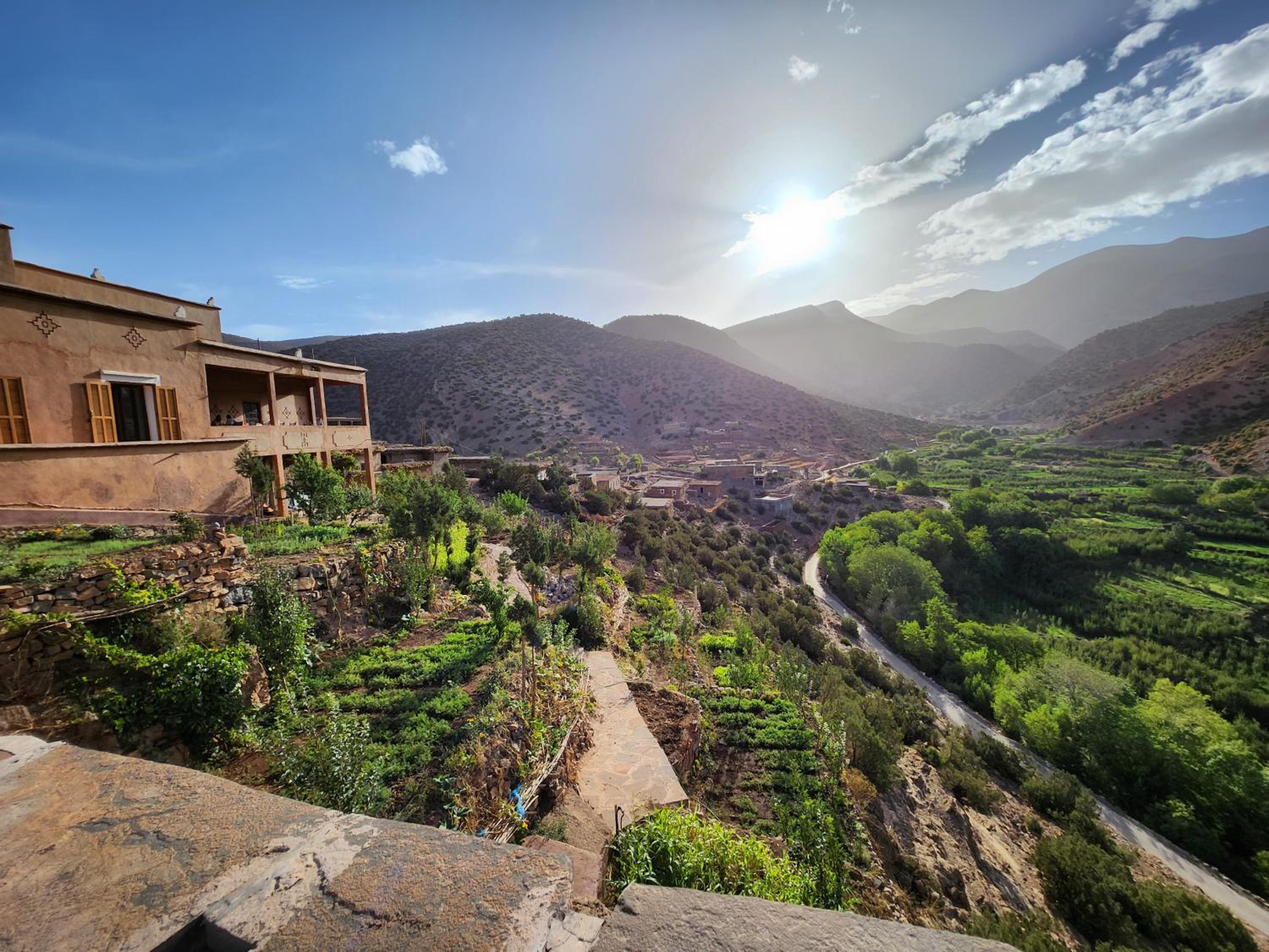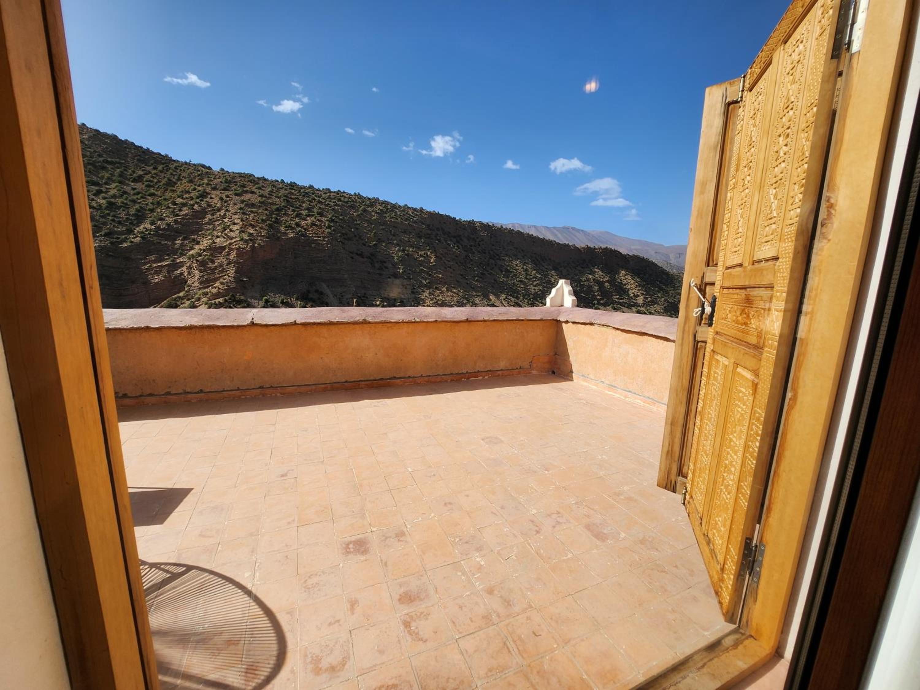 La situation tout en haut du village. Joli village dont les murs sont construits en terre (pisé) avec une vue splendide sur la vallée. la gentillesse extrême du personnel particulièrement Mr AZIZ qui en plus de sa gentillesse de sa présence et de ses conseils nous a beaucoup aidé à explorer la région. Je lève le chapeau pour ce monsieur. il y a aussi Mohammed qui est le cuisinier de l'hôtel, un vrai chef qui prépare de délicieux plats. quand il a un peu de temps il nous aide avec ses conseils car il accompagne les groupes lors des randonnées.