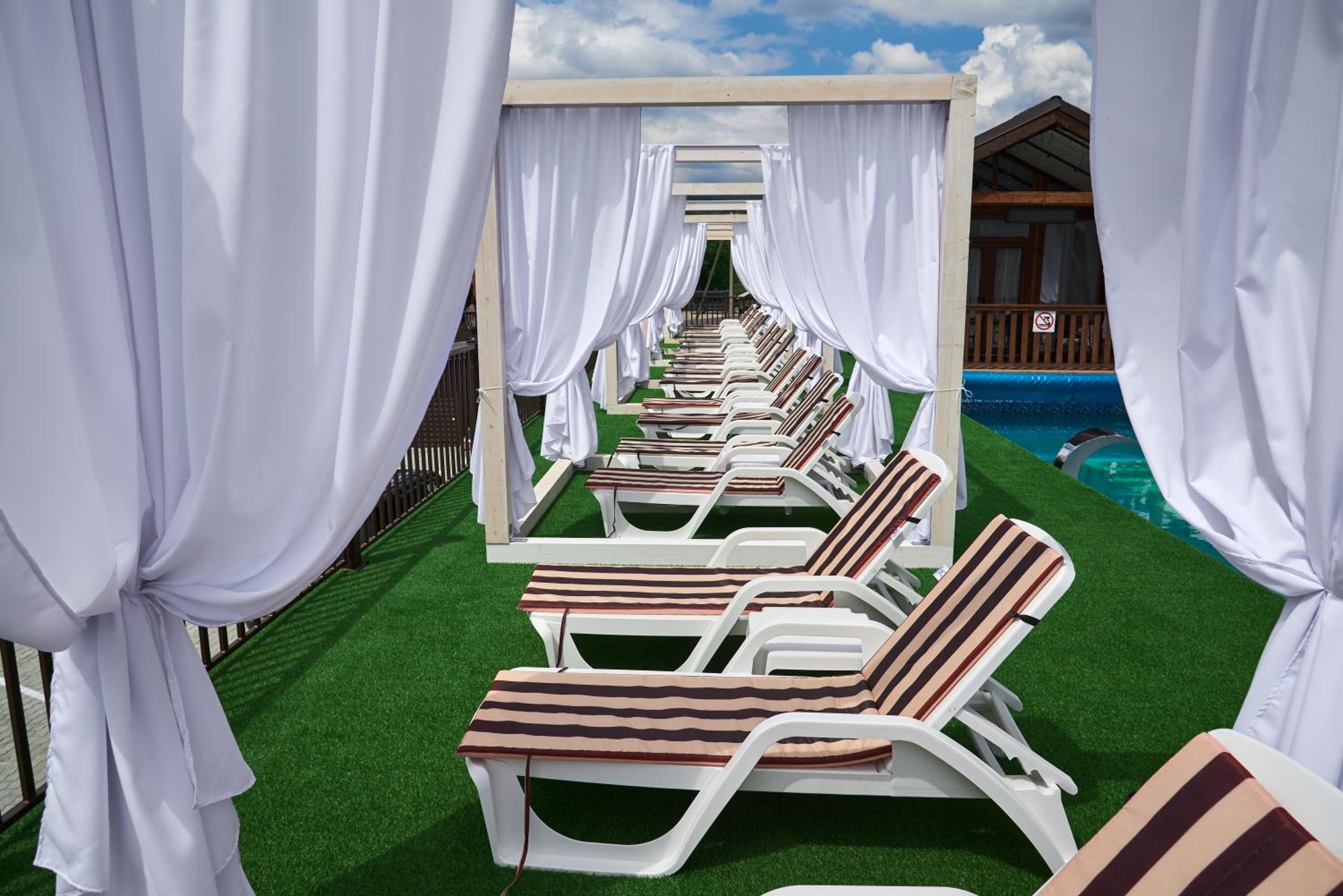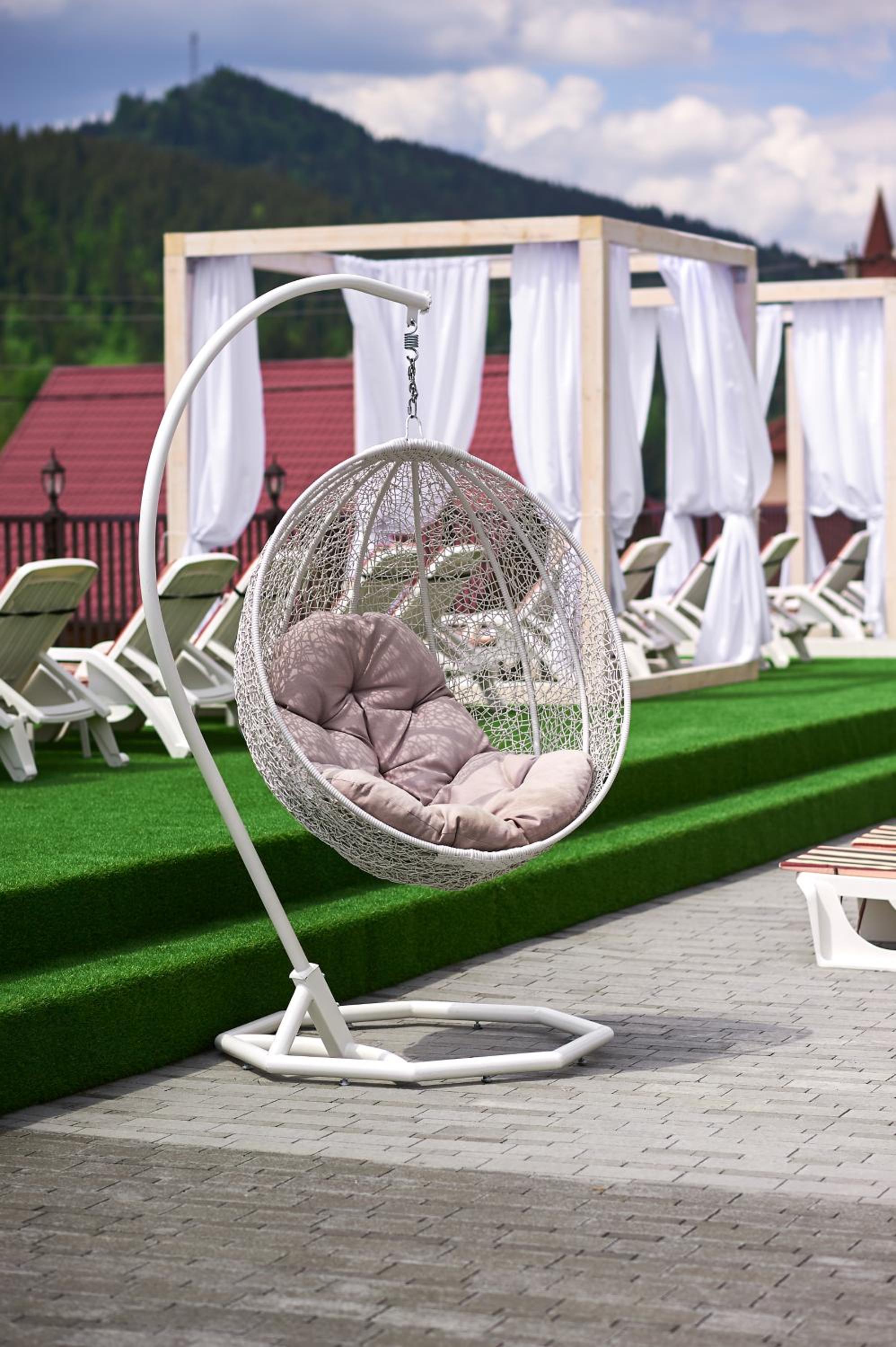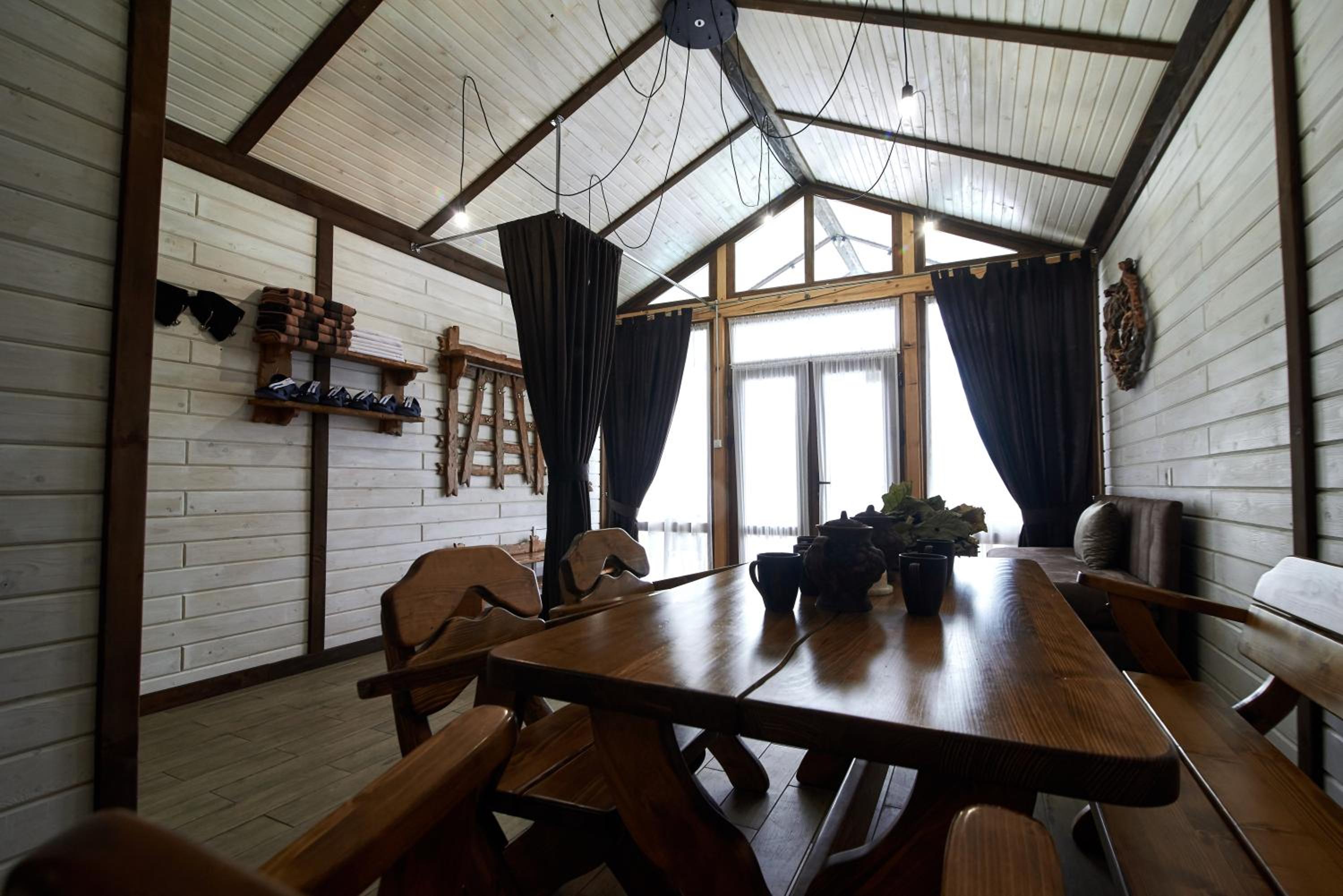 розташування дуже вдале, вид з вікна просто казковий, басейн теплий під відкритим небом, сауна, кухня