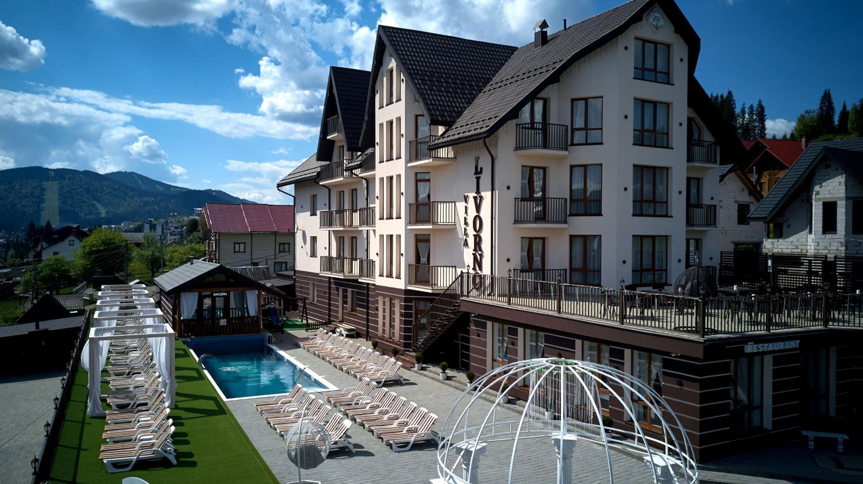 Nestled in the heart of Bukovel, Villa Livorno is a haven for travelers seeking comfort and convenience. Indulge in the outdoor swimming pool, relax in the sauna, and savor delicious meals at the on-site restaurant. With free WiFi and a paid airport shuttle, your stay is bound to be seamless.