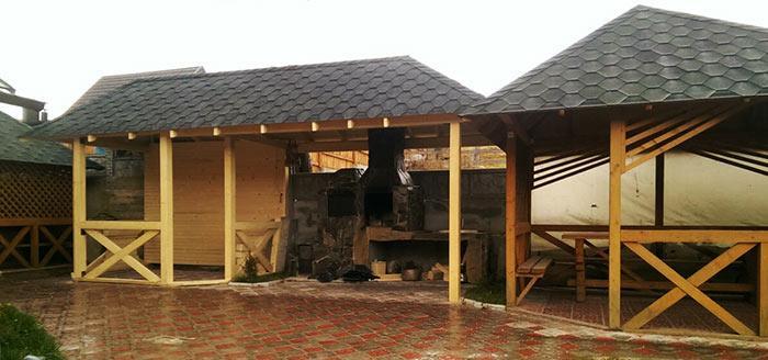 Есть мангал,кухня...приветливый персонал 👍,хорошее расположение, относительно тихо.