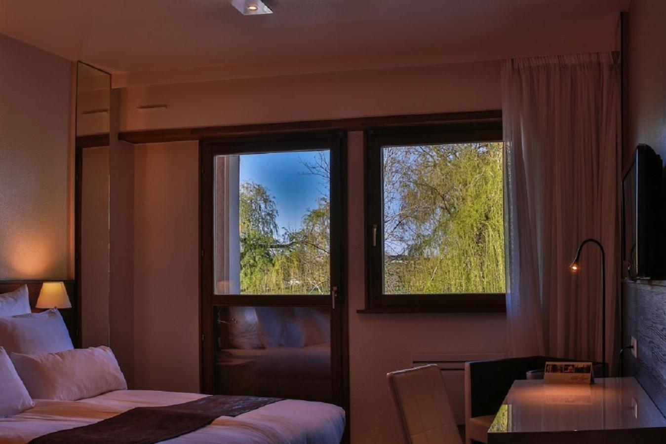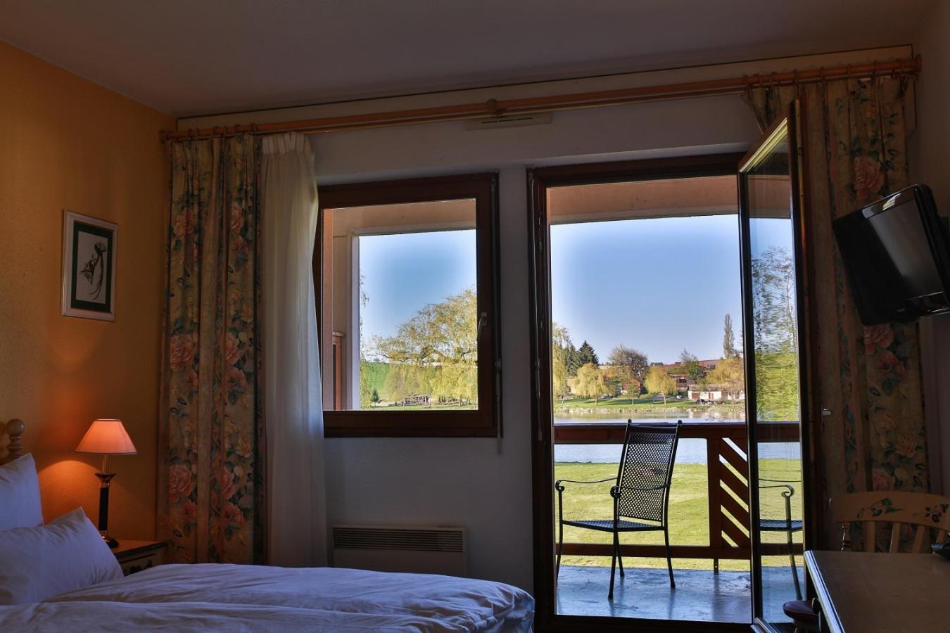 Chambre au calme avec une jolie vue sur l'étang. Personnel à l'accueil souriant.