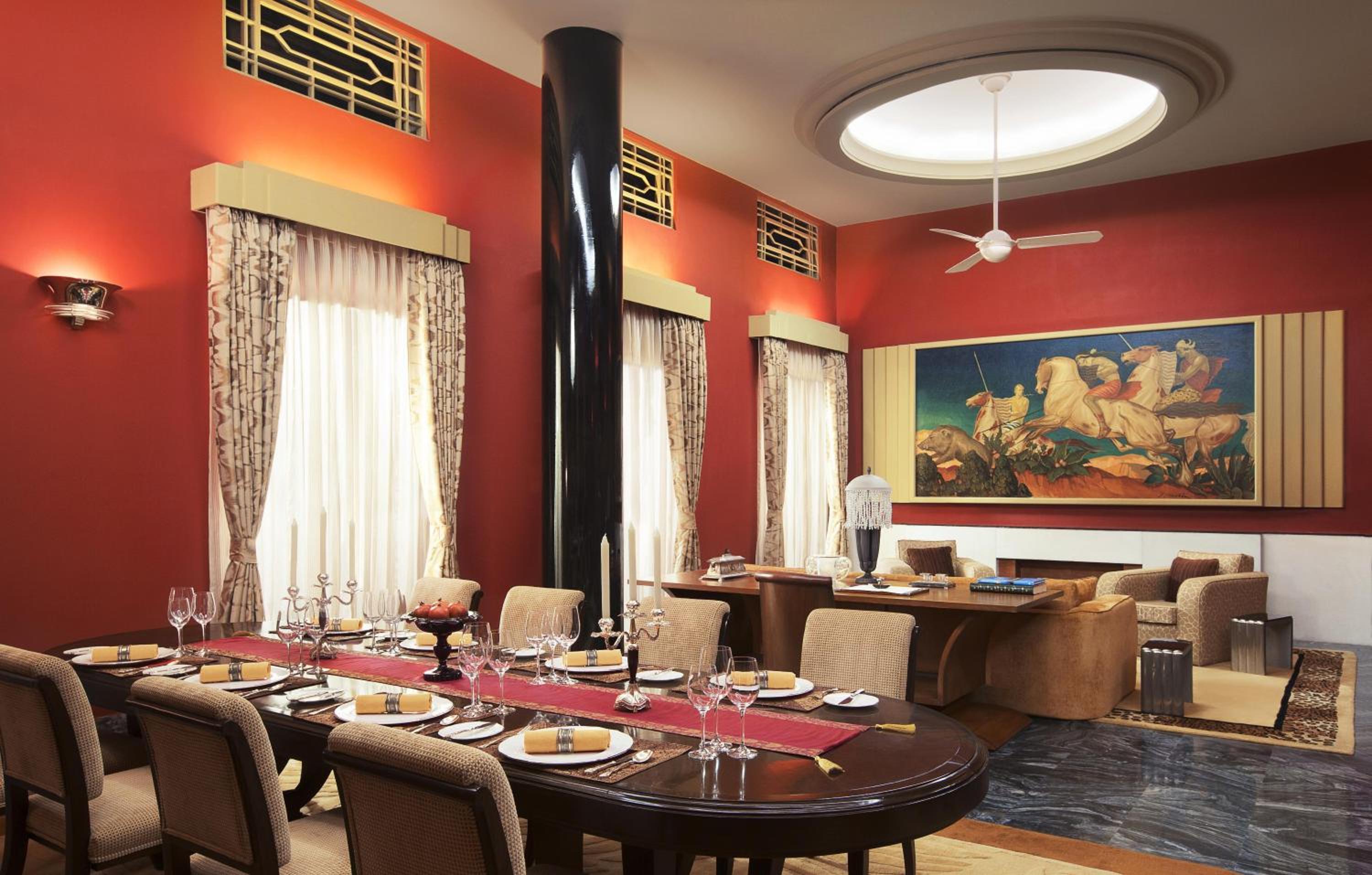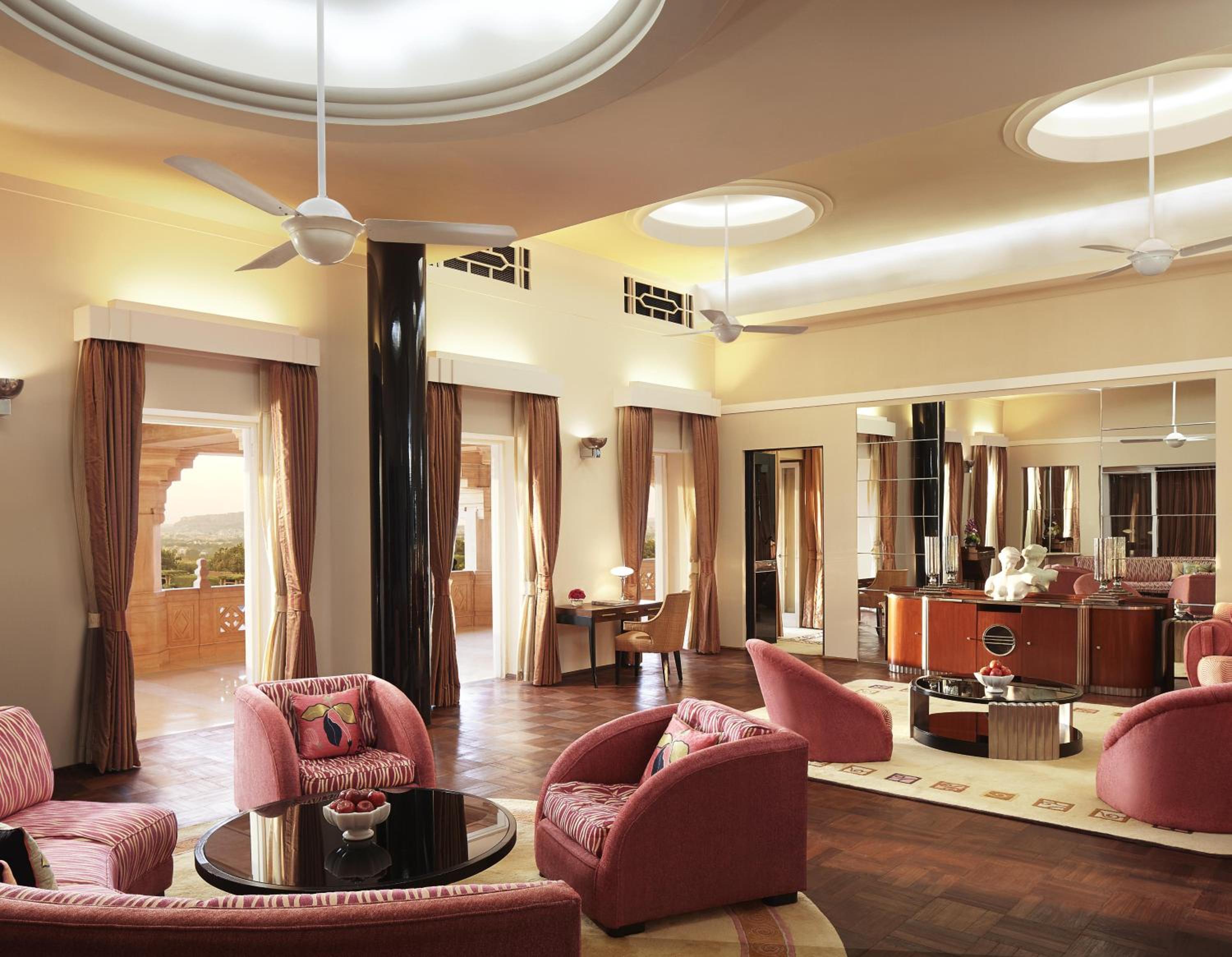 With 2 swimming pools, the pampering Jiva Grande Spa, a yoga studio, gym, and tennis courts, guests can rejuvenate and relax in style. Indulge in a culinary journey at Risala for Continental and Indian fusion cuisine, or savor authentic Rajasthani meals at Pillars. End your day with a drink at The Trophy Bar, completing your luxurious experience at Umaid Bhawan Palace.